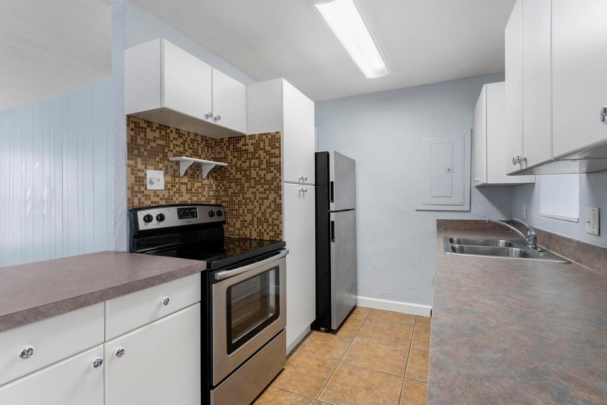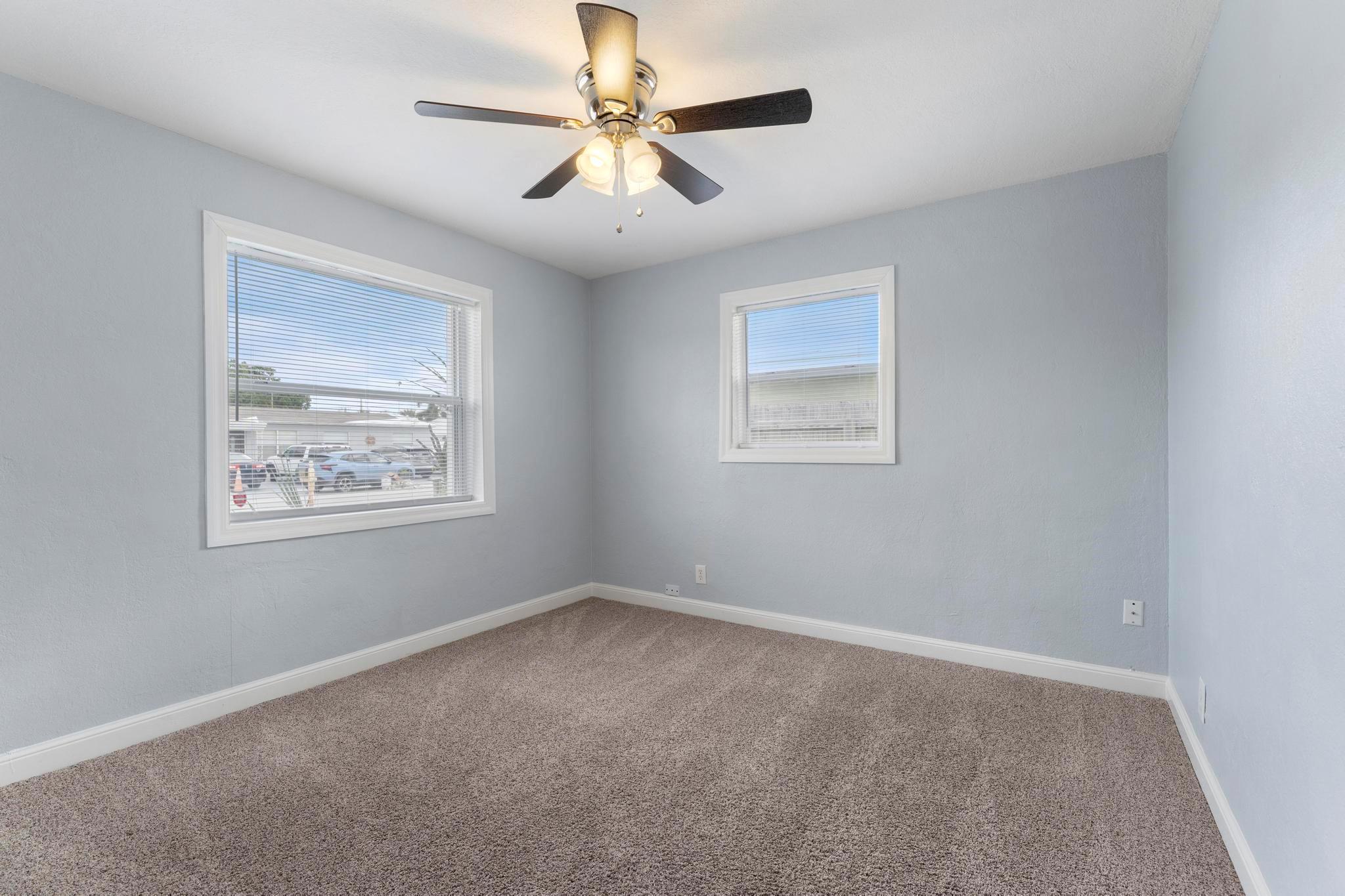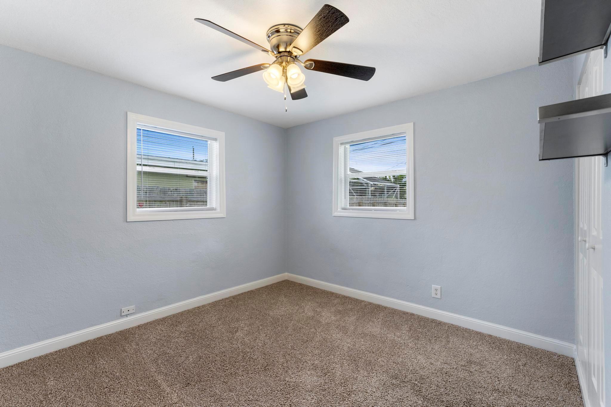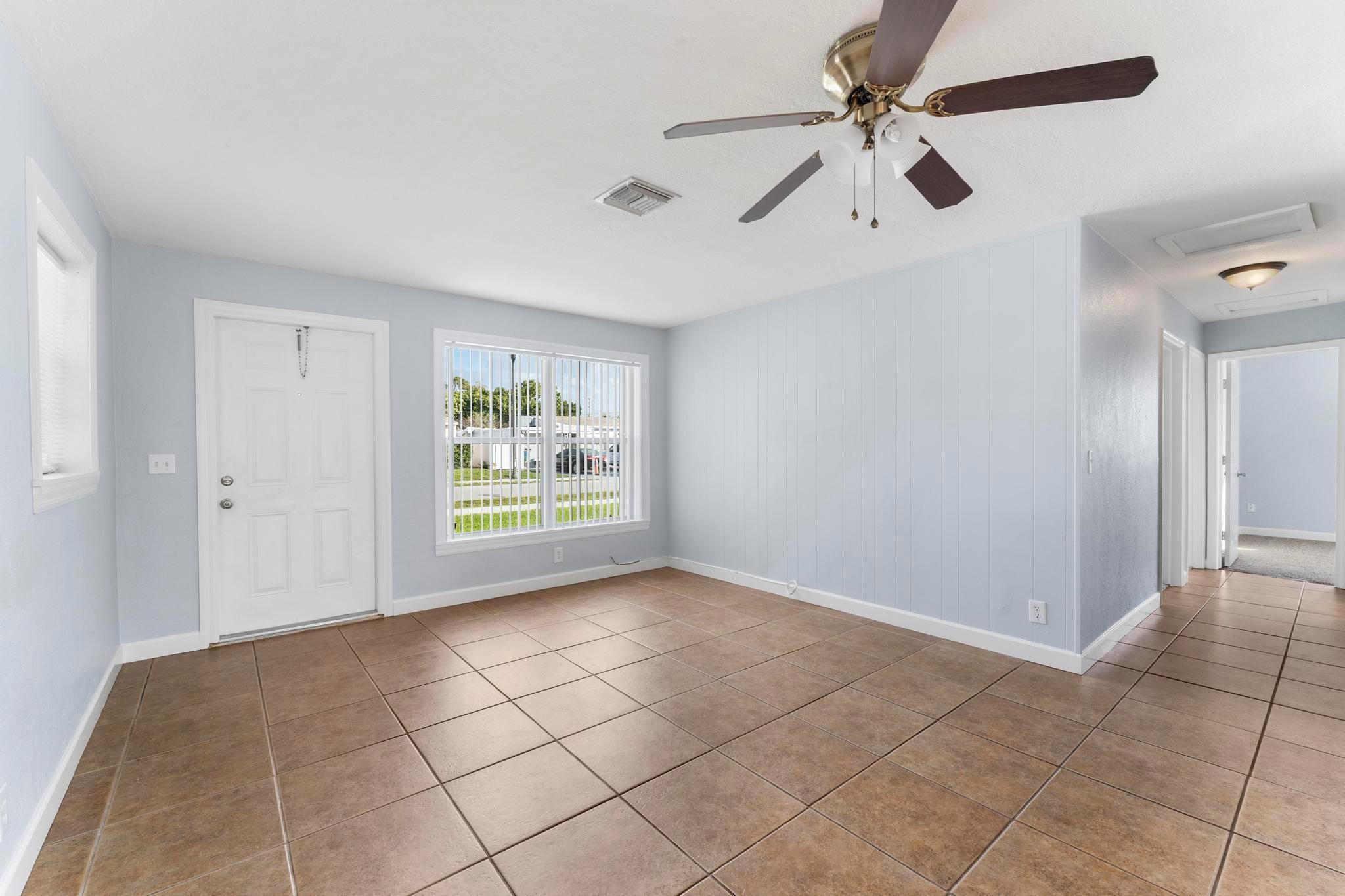 Step into this spacious 4-bedroom, 2-bathroom single-family home in the heart of West Palm Beach. The pavered driveway welcomes you to a move-in-ready haven. The split-bedroom floorplan ensures privacy, while two living areas offer versatility. Freshly painted interiors create a bright ambiance, and the kitchen, with a generous pantry, is both stylish and functional. The master bathroom is roomy, and the in-unit washer and dryer add convenience. Accordion shutters promise storm-ready security. Enjoy tile floors in the main areas and master bedroom, while the three additional bedrooms boast new carpeting. Step outside to the fenced backyard with a shed for extra storage. This home combines aesthetics with functionality, making it a perfect fit for your lifestyle. Schedule a viewing today.