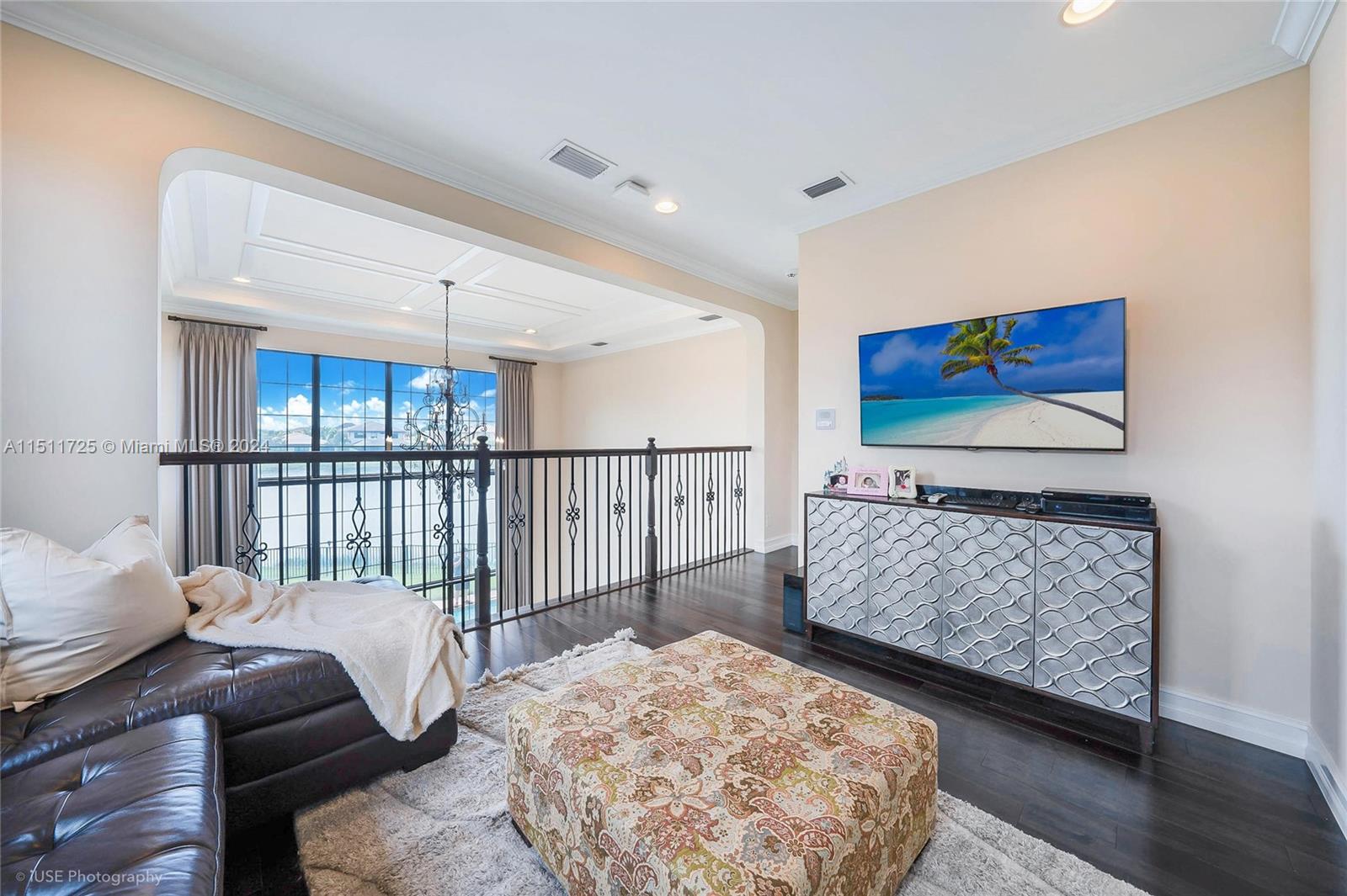 Renovated Luxury home features 5 bedroom each with a full bath, media room, Loft, 6 full bathrooms, 2 half bathroom, huge master, new flooring, fresh paint,large master bathroom, custom cabinetry throughout , large balcony and covered patio, laundry room with 2 washers and 2 dryers, concrete block construction on both first & 2nd floor, oversized 4 car garage which can fit certain 25ft boats, impact windows, iron front door, gas heated pool and spa, huge family room with 20 foot window. Newer kitchen features a huge island, upgraded cabinets to ceiling and upgraded appliances. New refrigerator still under warranty , oversized pantry,48inch gas cooktop, double oven, 2 dishwashers ,security cameras, smart switches, and a large fenced lot. HOA includes lawn and a 24-hour secured community.