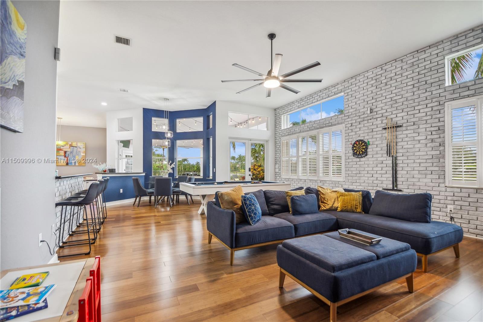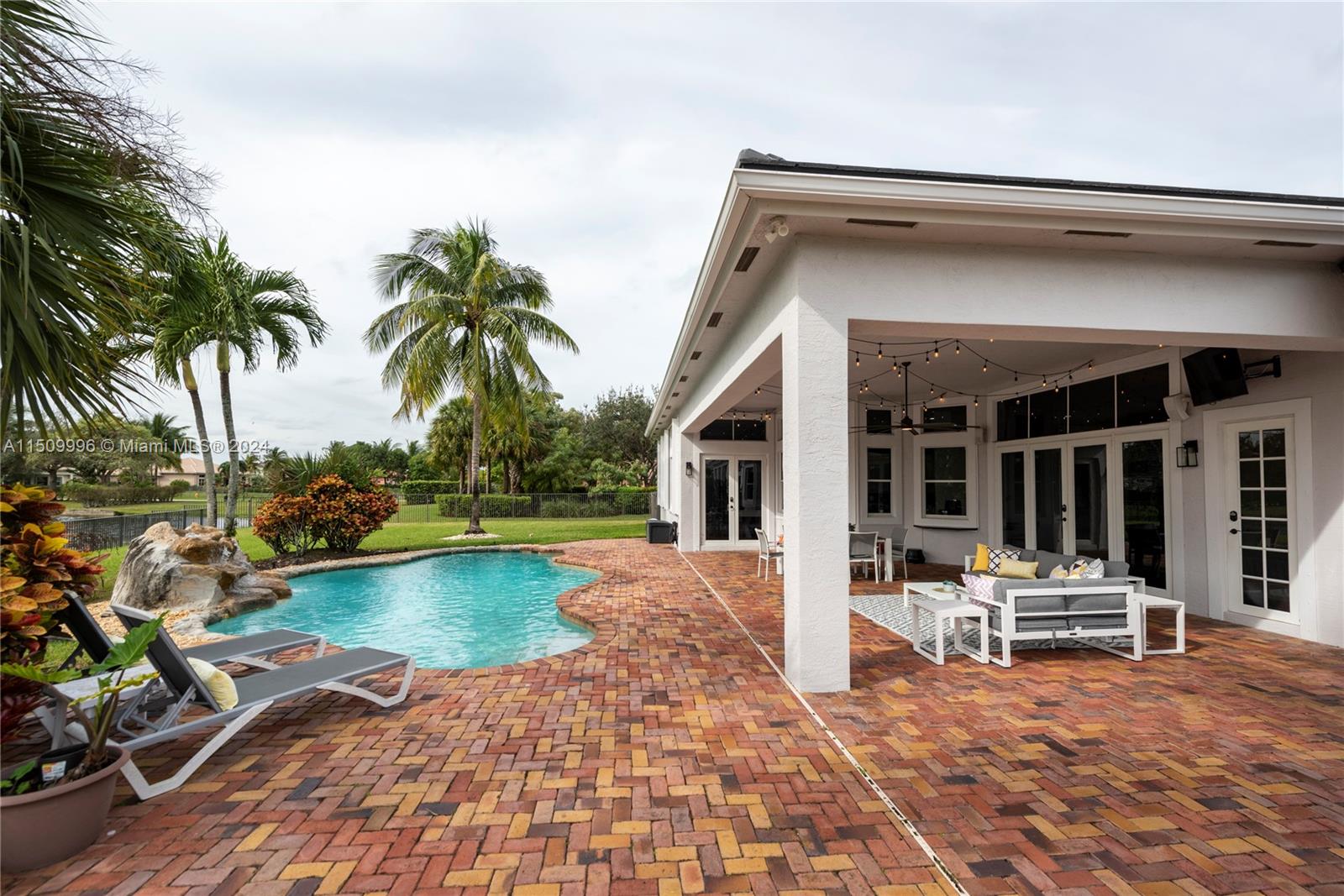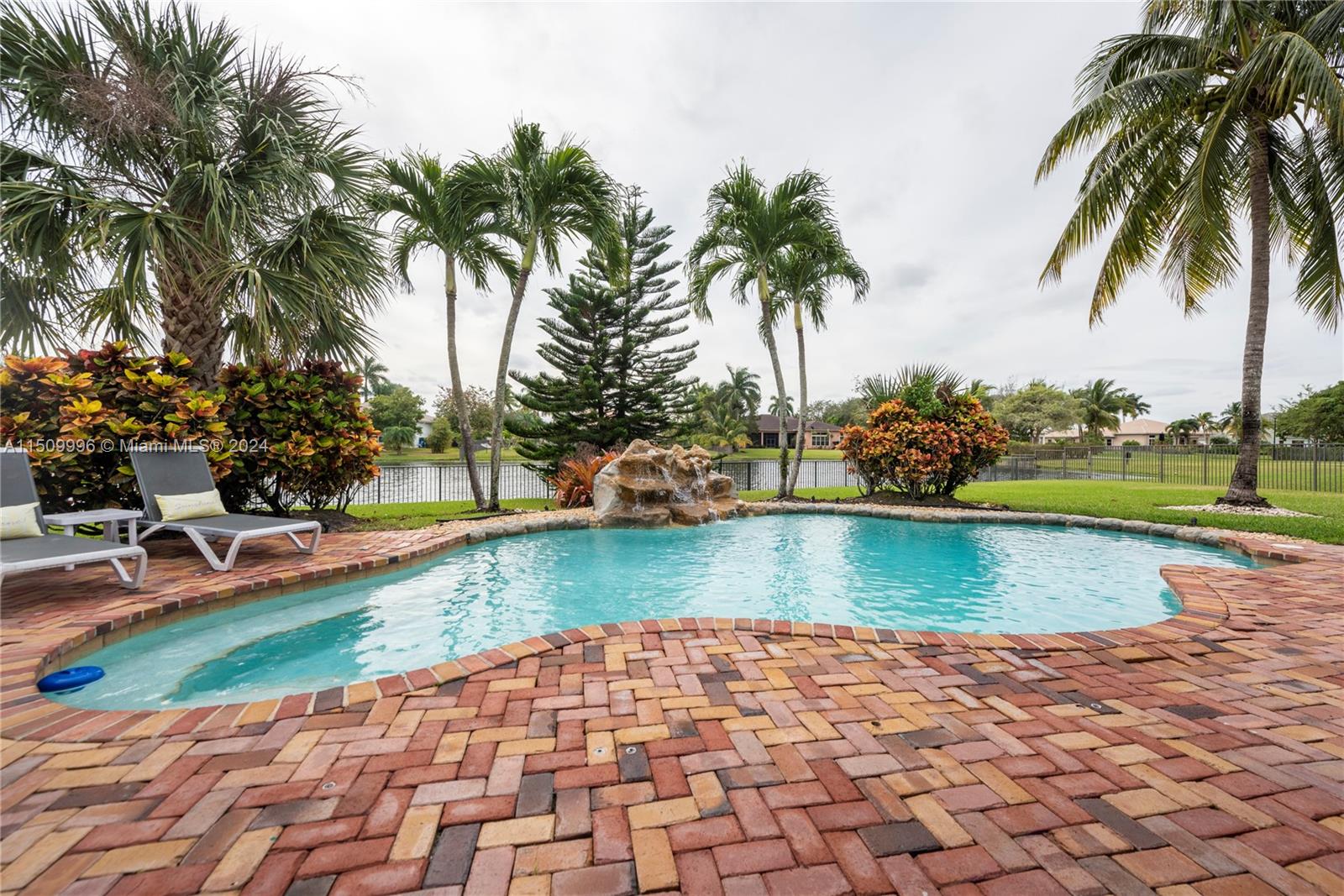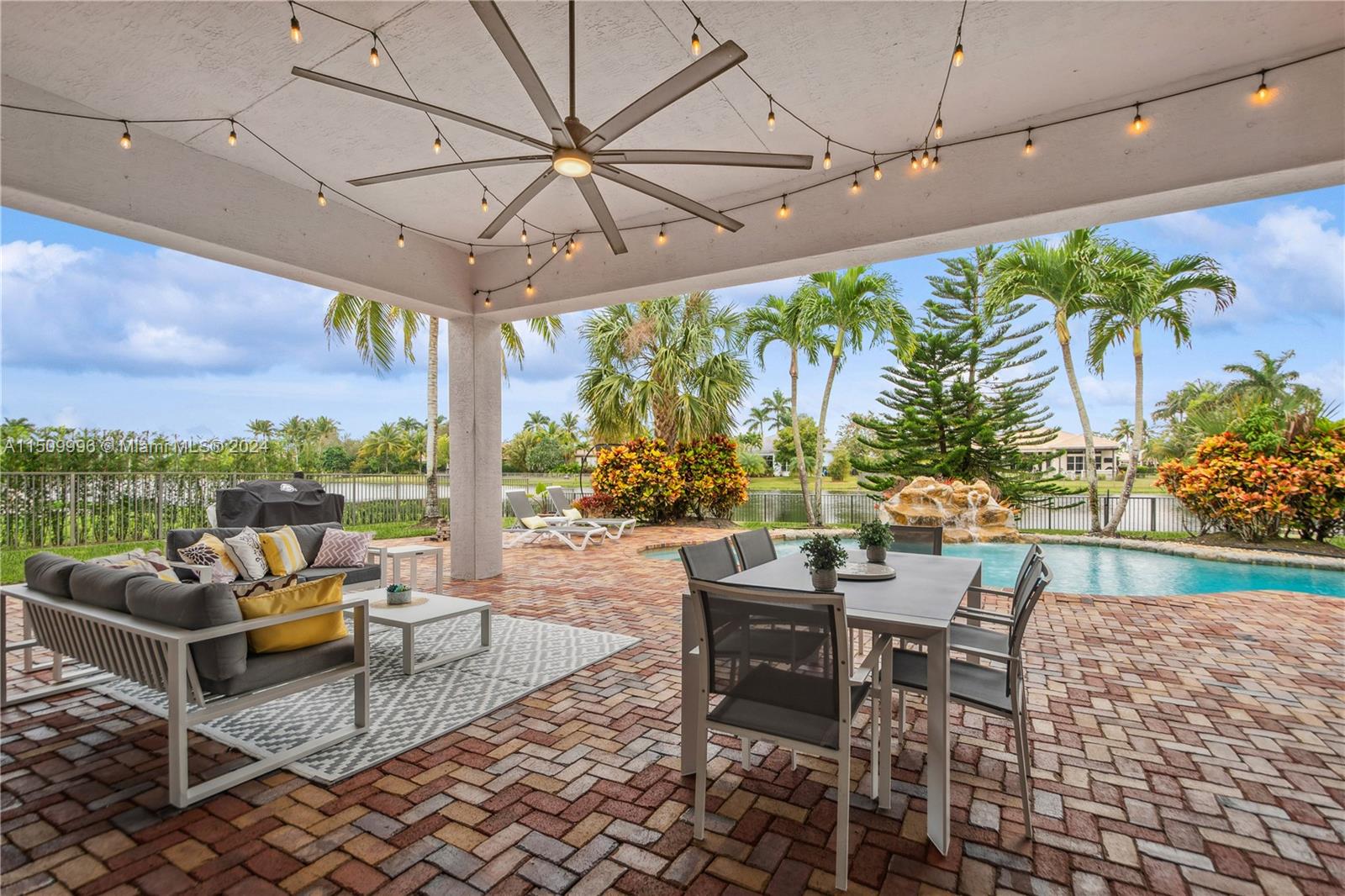 Spectacular 1-Story Home on a Builder’s Acre w/Circular Driveway & BRAND NEW ROOF in the Manned Exclusive Guard Gated Community of Riverstone, Davie. 5 Bed/5 Bath +Den/Offc, 12' ceilings w/Open-Concept design that connects Living, Dining, Family, Wet Bar, Breakfast & Gourmet Kitchen w/Large Pantry & Plenty of Cabinet Space, Granite Counter Tops & SS Appl w/air vent & double oven. New Engineer Wood Floors in Social Area & Ceramic in Bedrooms, Chicago Brick Wall, Plantation shutters, French Doors! Step outside to Covered Patio surround w/Lush Landscape, Fence & Pool offering plenty of room for both Entertaining & Everyday living w/Peaceful Lake Views. Basketball & Tennis Courts,Playgrounds,Pavilion. Great School District, Minutes from The Airport, Major Highways, Hospitals, Parks & Beaches!