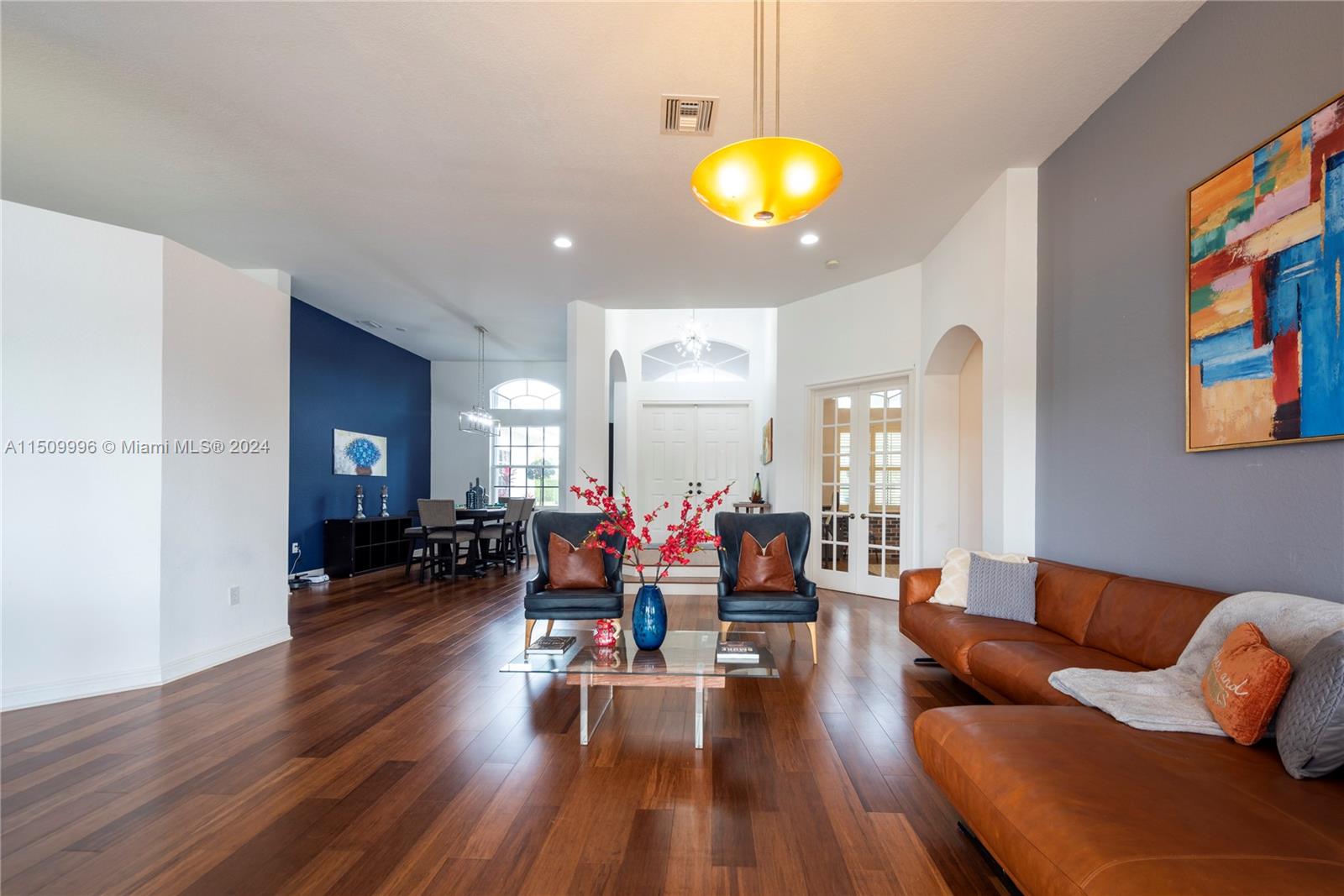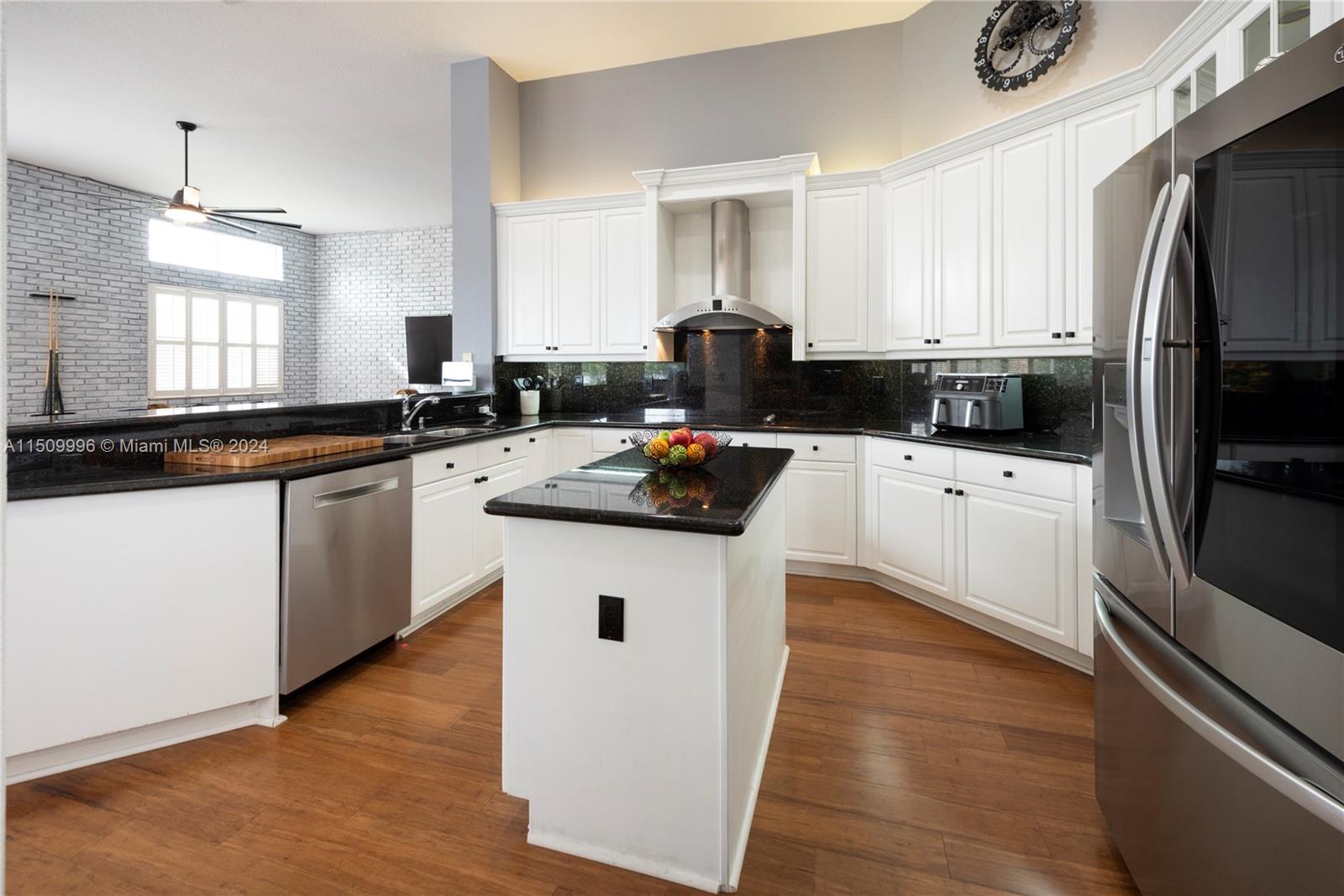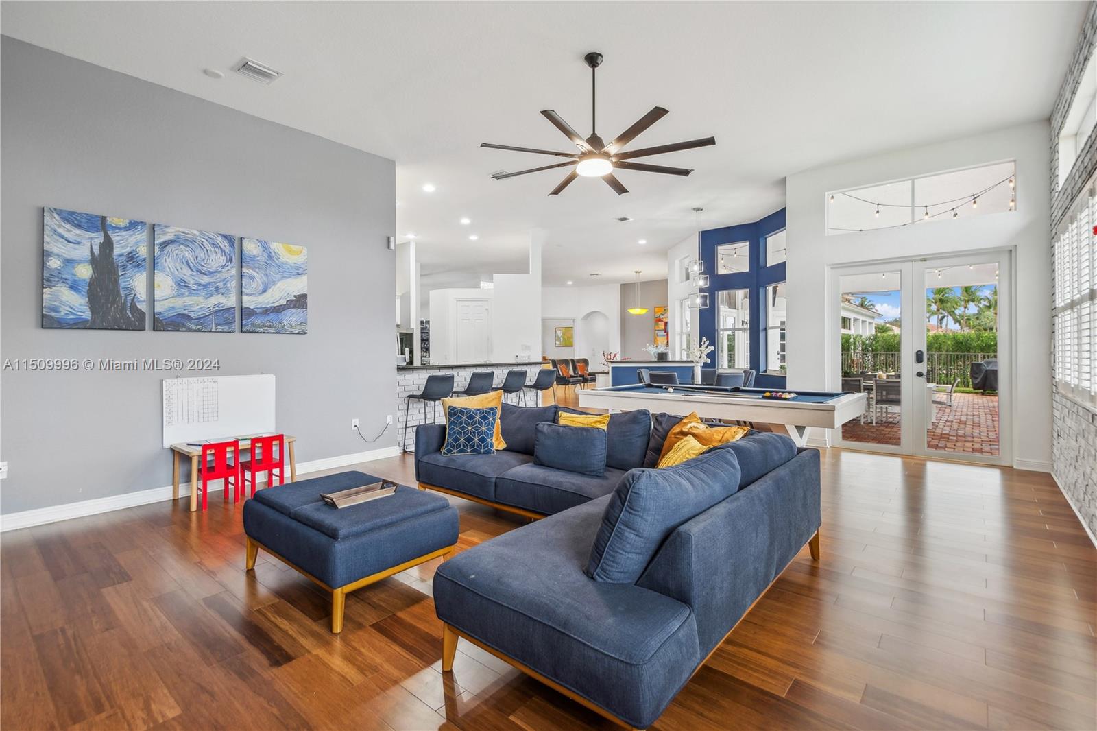 Spectacular 1-Story Home on a Builder’s Acre w/Circular Driveway & BRAND NEW ROOF in the Manned Exclusive Guard Gated Community of Riverstone, Davie. 5 Bed/5 Bath +Den/Offc, 12' ceilings w/Open-Concept design that connects Living, Dining, Family, Wet Bar, Breakfast & Gourmet Kitchen w/Large Pantry & Plenty of Cabinet Space, Granite Counter Tops & SS Appl w/air vent & double oven. New Engineer Wood Floors in Social Area & Ceramic in Bedrooms, Chicago Brick Wall, Plantation shutters, French Doors! Step outside to Covered Patio surround w/Lush Landscape, Fence & Pool offering plenty of room for both Entertaining & Everyday living w/Peaceful Lake Views. Basketball & Tennis Courts,Playgrounds,Pavilion. Great School District, Minutes from The Airport, Major Highways, Hospitals, Parks & Beaches!