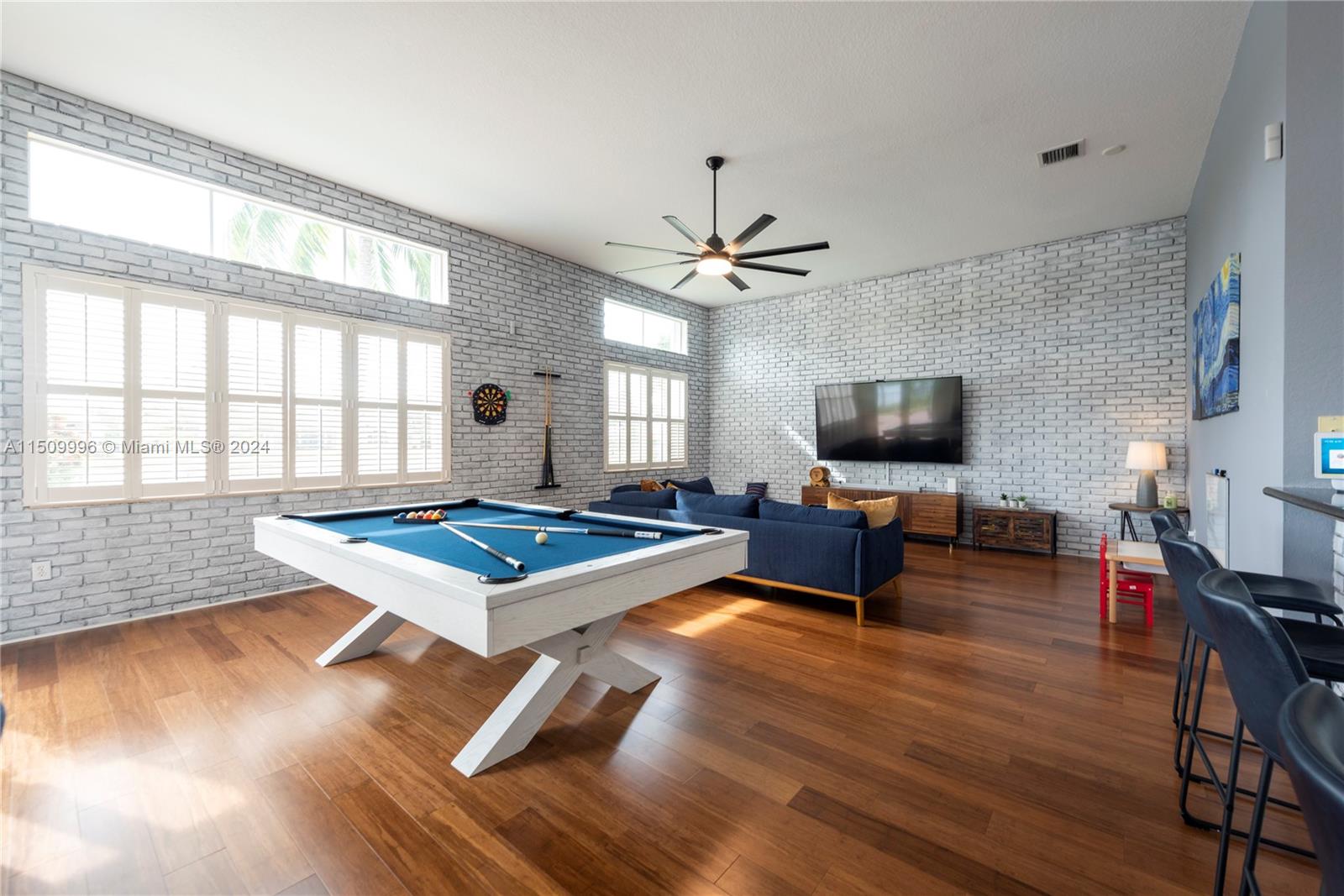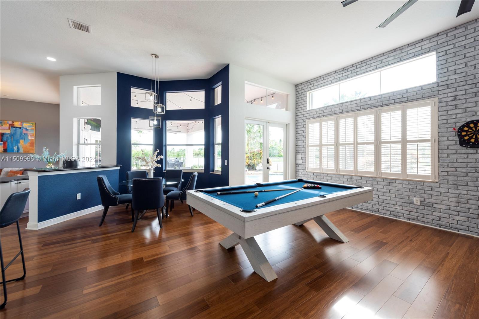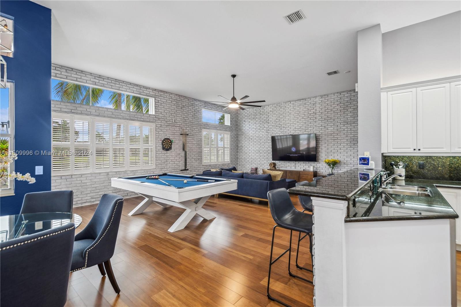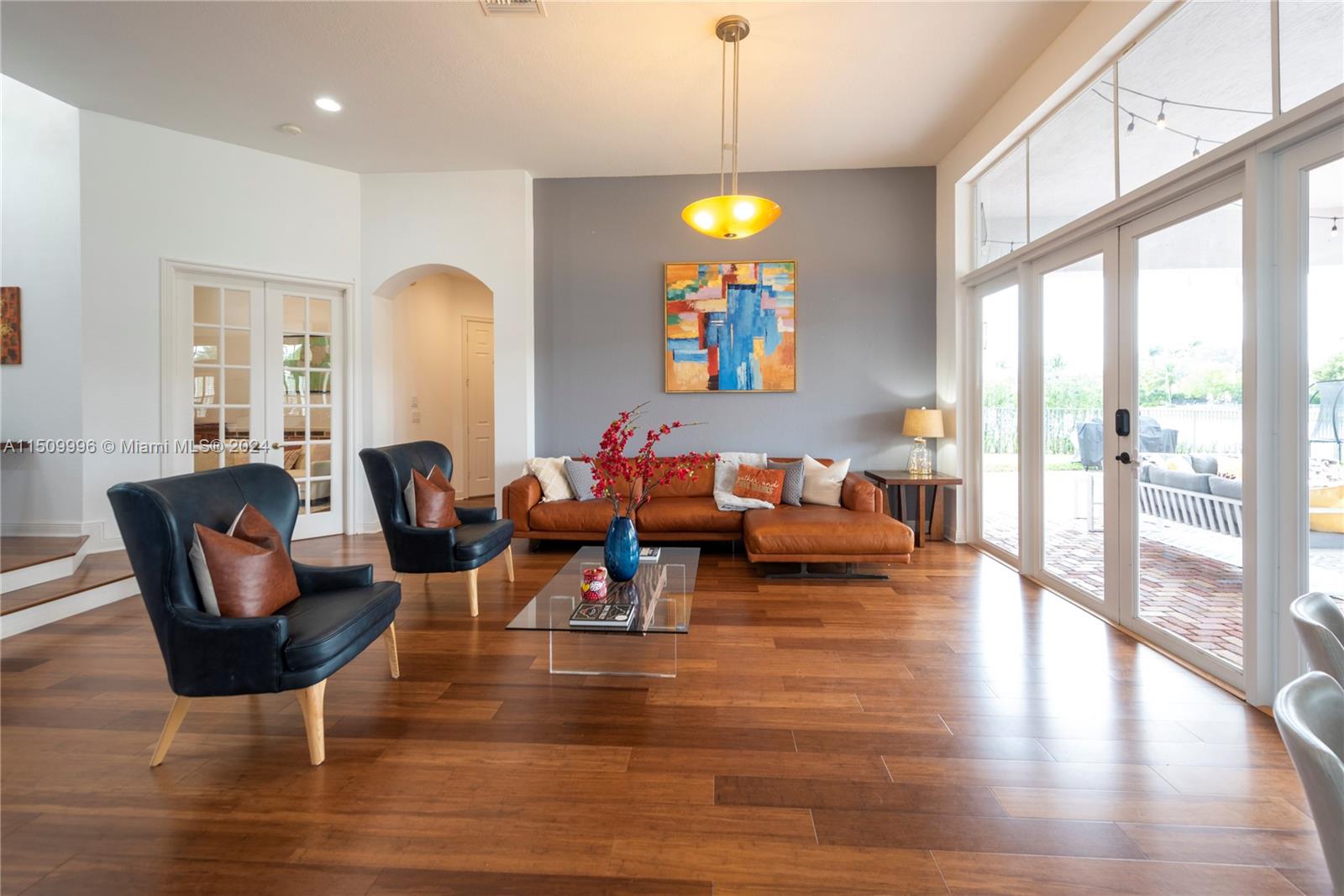 Spectacular 1-Story Home on a Builder’s Acre w/Circular Driveway & BRAND NEW ROOF in the Manned Exclusive Guard Gated Community of Riverstone, Davie. 5 Bed/5 Bath +Den/Offc, 12' ceilings w/Open-Concept design that connects Living, Dining, Family, Wet Bar, Breakfast & Gourmet Kitchen w/Large Pantry & Plenty of Cabinet Space, Granite Counter Tops & SS Appl w/air vent & double oven. New Engineer Wood Floors in Social Area & Ceramic in Bedrooms, Chicago Brick Wall, Plantation shutters, French Doors! Step outside to Covered Patio surround w/Lush Landscape, Fence & Pool offering plenty of room for both Entertaining & Everyday living w/Peaceful Lake Views. Basketball & Tennis Courts,Playgrounds,Pavilion. Great School District, Minutes from The Airport, Major Highways, Hospitals, Parks & Beaches!