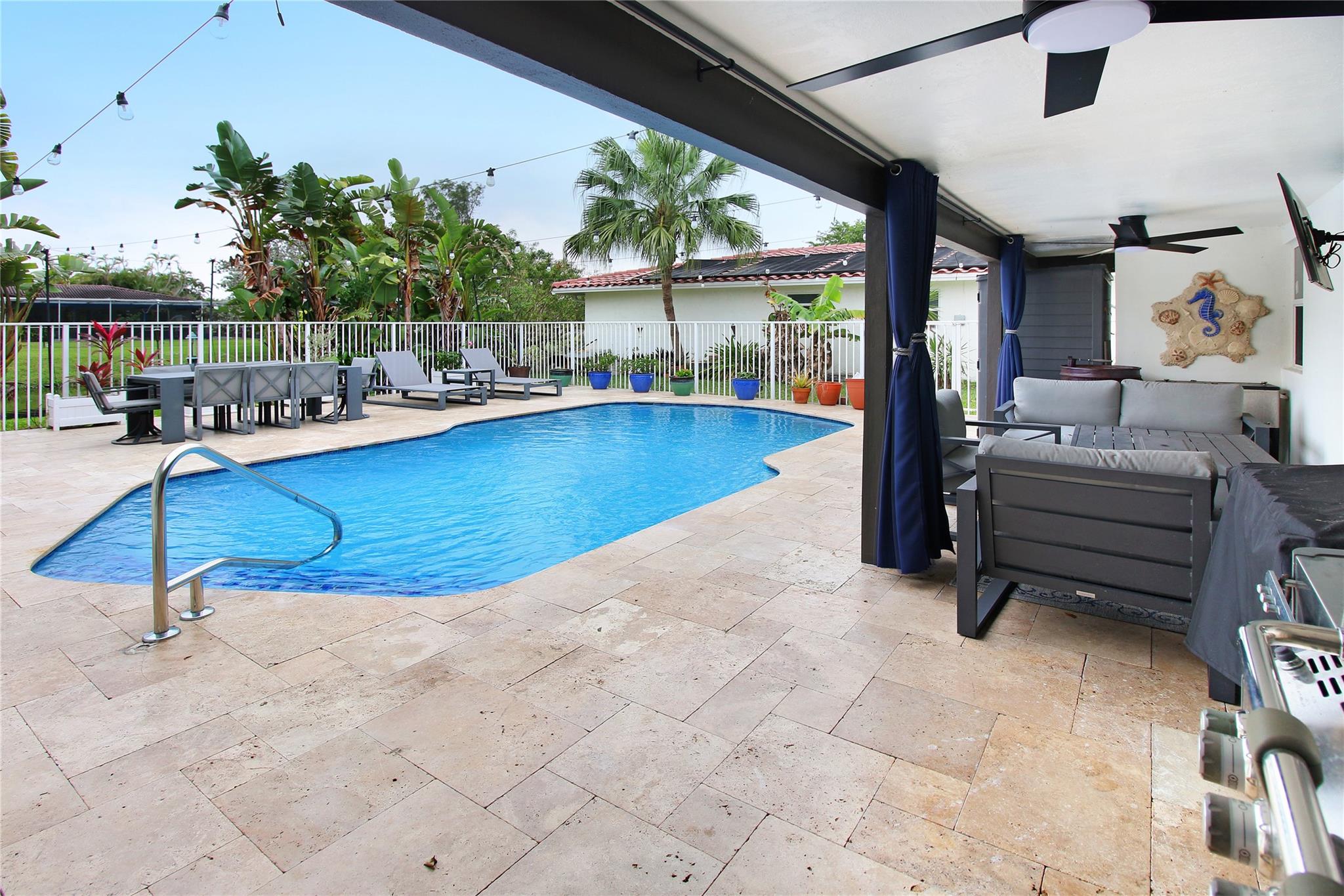 Completely remodeled Waterfront home. The attention to detail here is awesome with over $200k in upgrades & improvements. Italian tile, Recess lights thru-out, Large open kitchen w/ qrtz cntrs, cust cabinetry w/ hidden outlets, Dbl wine cooler, Top of the line new appliances, Island induction cooktop w/ ceil vent, built in micro, Refrig w/ flex, Bosch 800 series. Master has solid wd frch doors, walk in clst. Mast bath has Qrtz, dbl sink, touch light mirrors, porcelain tile in huge glass shower- auto temp ctrl. 3 bedrms are large w/dbl clsts+org & fans. 2nd bath, cabana w/ 6' soaker tub/shower w/temp cntrl, qrtz , NEW, A/C, W/H, ELEC panel & box, 5 clng fans, impact Drs+wndws. Salt-water heated pool, Led lights, Trav stn patio. od lght. Trop trees & more...designed to be your lovely home.