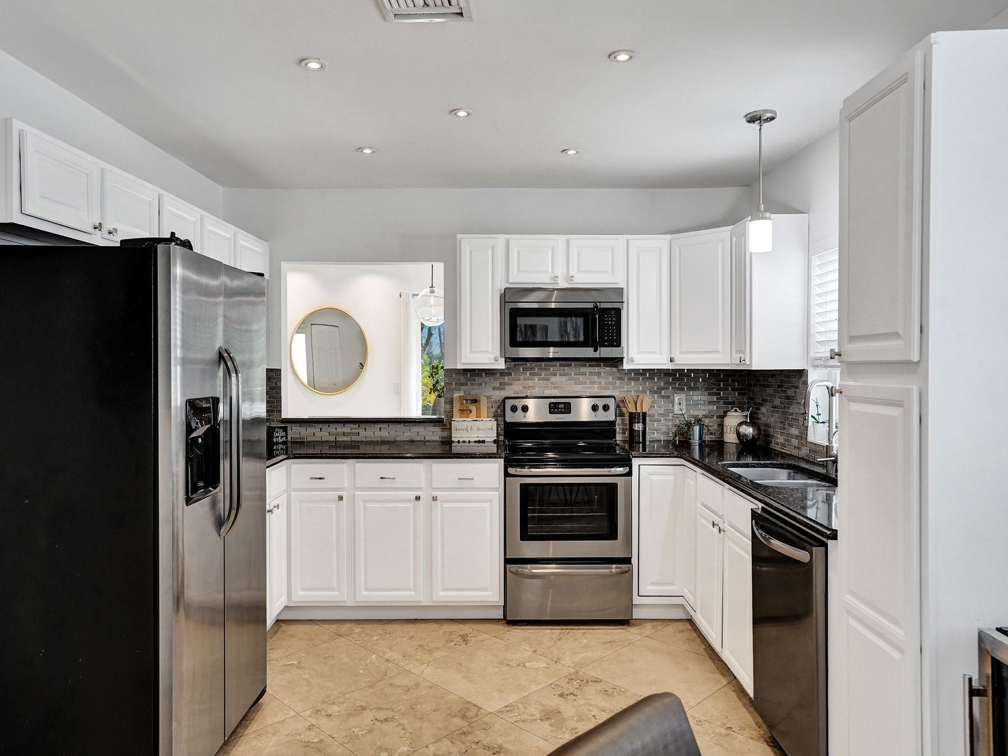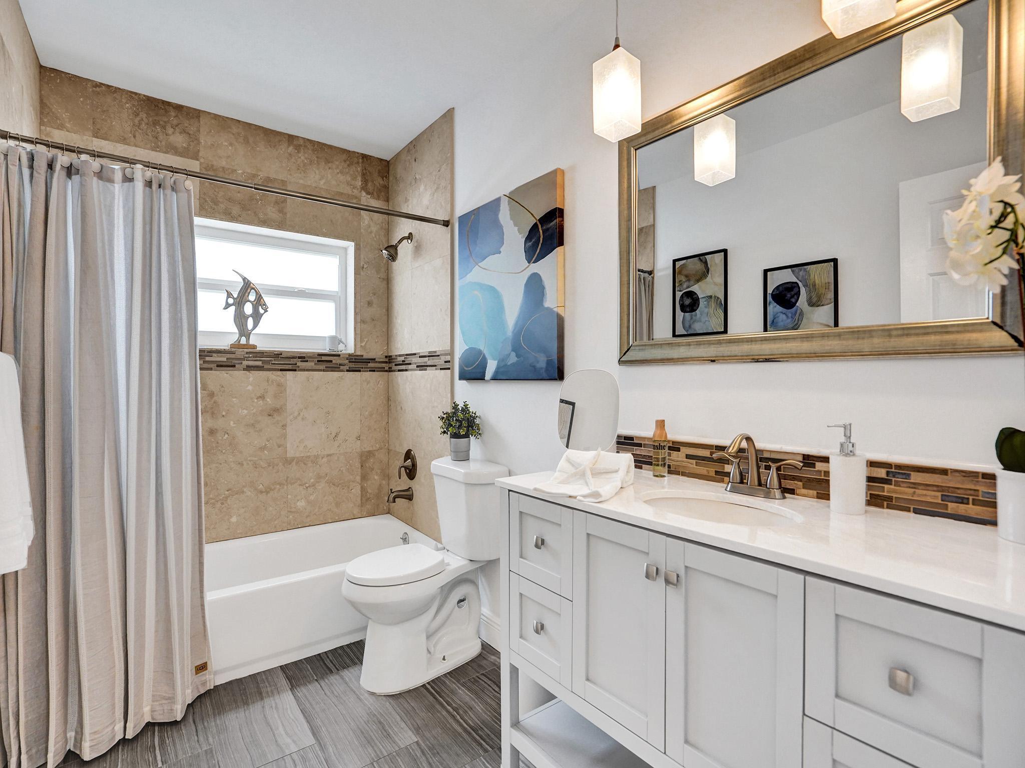 Incredible move-in ready East Boca home zoned Addison Mizner K-8 school. Enjoy South Florida living in the renovated backyard complete with a fantastic covered area offering the ability to extend your living space (just add a flat screen)with ultimate privacy. Freshly painted inside/out, meticulously maintained home has undergone massive updates: full impact windows/doors, custom sliding glass doors, roof w/upgraded wall straps, tankless water heater, pool heater, blown insulation & smart home features. Gorgeous master overlooking heated pool, walk in closet, plus a luxury ensuite w/cabana door. Super bright/airy LR, vaulted ceilings and a floor to ceiling wood burning fireplace! 2.5 miles to the beach, school bus service, bike to Sugar Sand/El Rio park. Sidewalks, underground power, A++