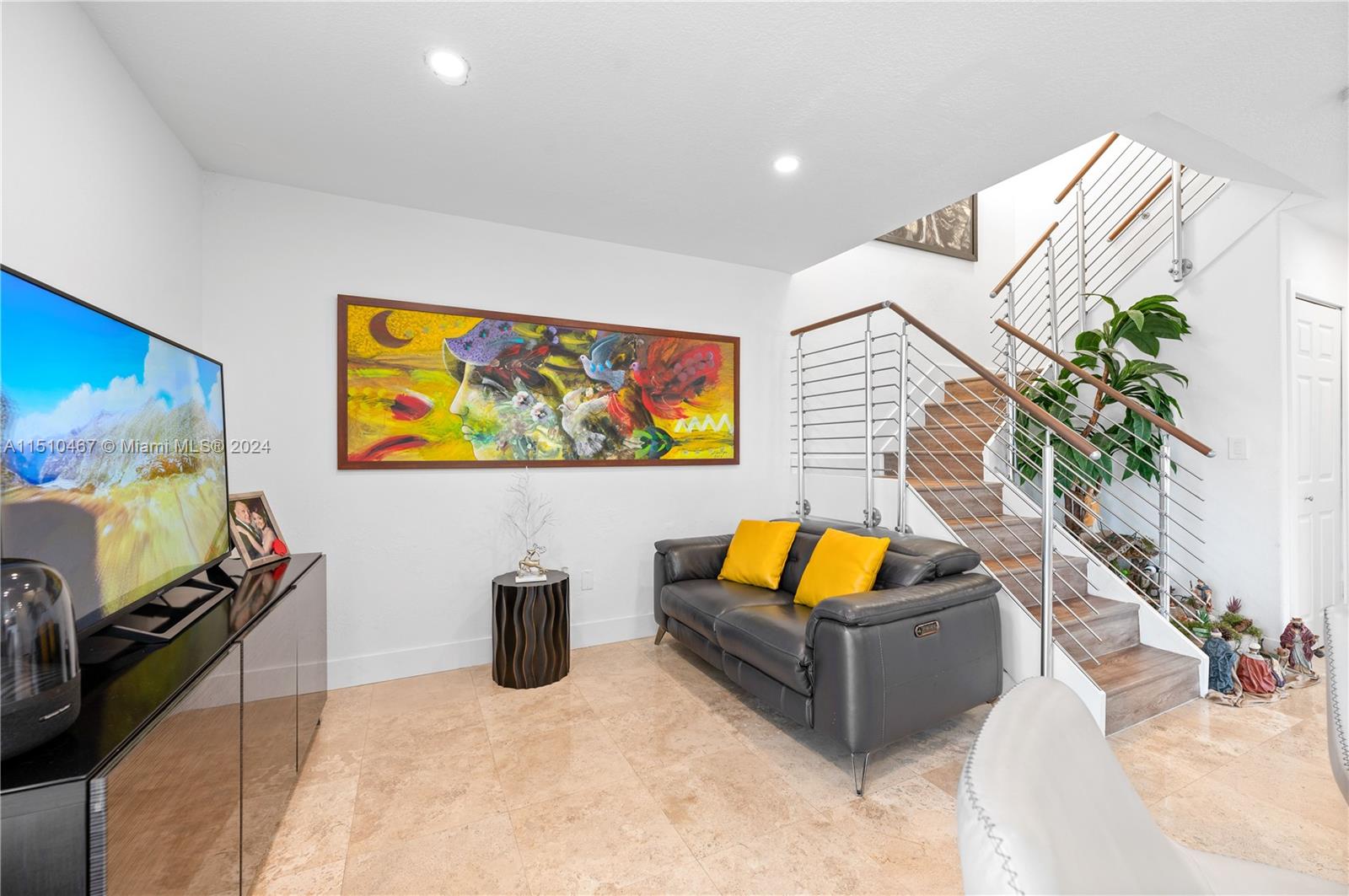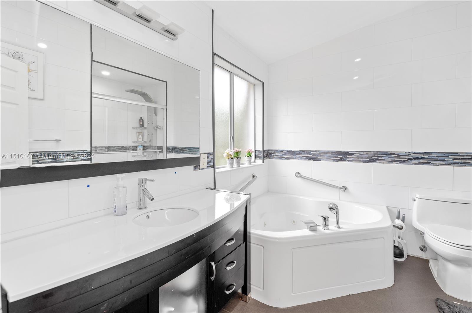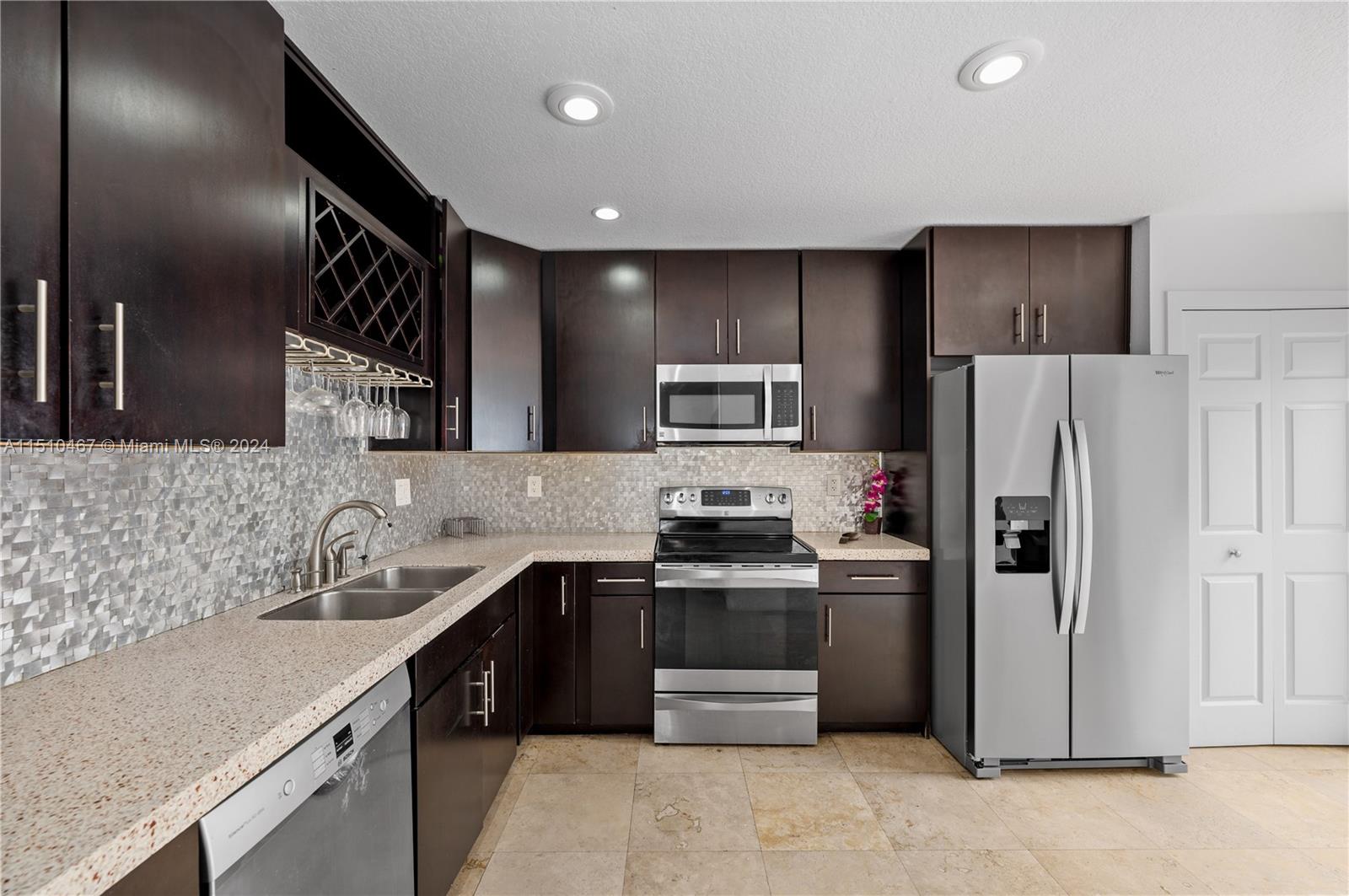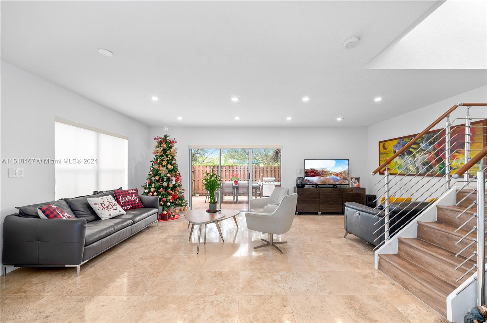Beautiful 3 Bedroom 2.5 Bathroom 1 Car Garage Townhome in the Heart of Doral!! Completely remodeled with new kitchen with quartz countertop, stairs, marble flooring downstairs, wood flooring upstairs, bathrooms! Corner unit with no back neighbor provides wonderful privacy!! Smart Home with door, lights, garage & nest set up! Large patio great for entertaining and BBQs!! Small, private, quiet community is gated and has low HOA! 2 Car Driveway plus guest parking near by!! New Refrigerator and Dishwasher bought in December 2023. Roller Shades in all windows including motorized in Living and double roller in all bedrooms with blackout and screen roller shades. Reverse Osmosis water system and much more!
