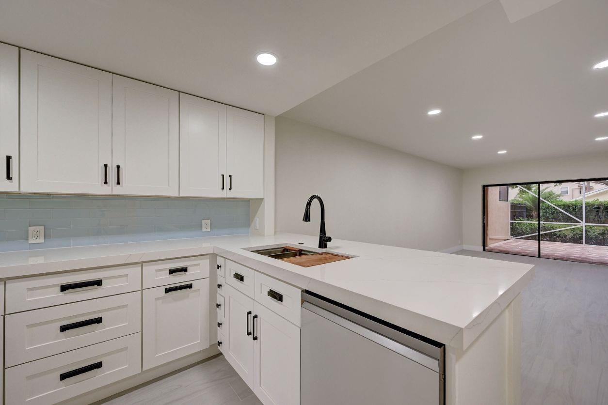 Completely remodeled townhouse in central Boca Raton, stunning!!! All new Italian porcelain flooring throughout entire living space. Brand new kitchen cabinets, appliances, quartz counter top. All new bathroom vanities with quartz counter tops. Freshly painted inside and out, no expense spared in remodel. HOA $375/month, 2 dogs at 25Lbs each, NO pick-up trucks allowed, must be occupied for 2 years before renting