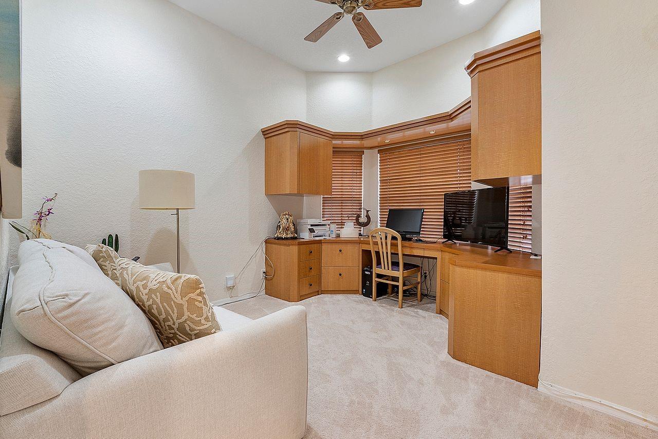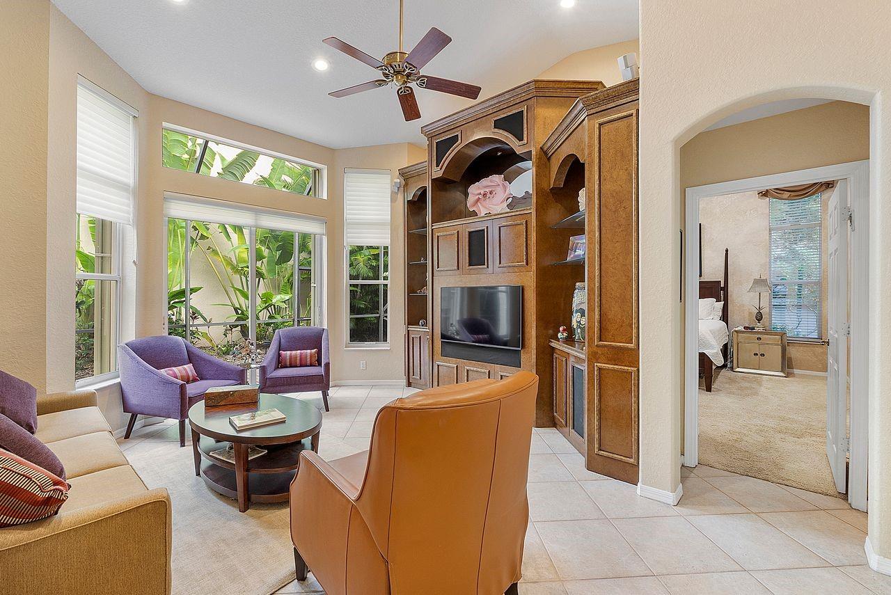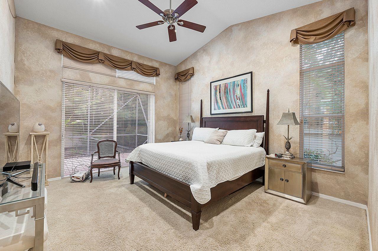 Charming three bedroom in sought after Villa Sorrento of Heron Bay. Perfectly located near the clubhouse with a pool and activity center yet close to the south entrance giving you access to shopping and the highway. This home has a split floor plan with the master suite sporting beautiful faux painting and impressive fitted closets for wonderful storage. The kitchen is efficient with walk in pantry. There are extensive built in units throughout the house to accommodate your every need. This home has a secondary wing with it's own bath and privacy. The second bedroom is perfect as a guest suite and the third bedroom is an office/den with desk and storage, wonderful as a home office or gaming center. Exquisite attention to detail makes this house truly unique for a very discerning buyer.