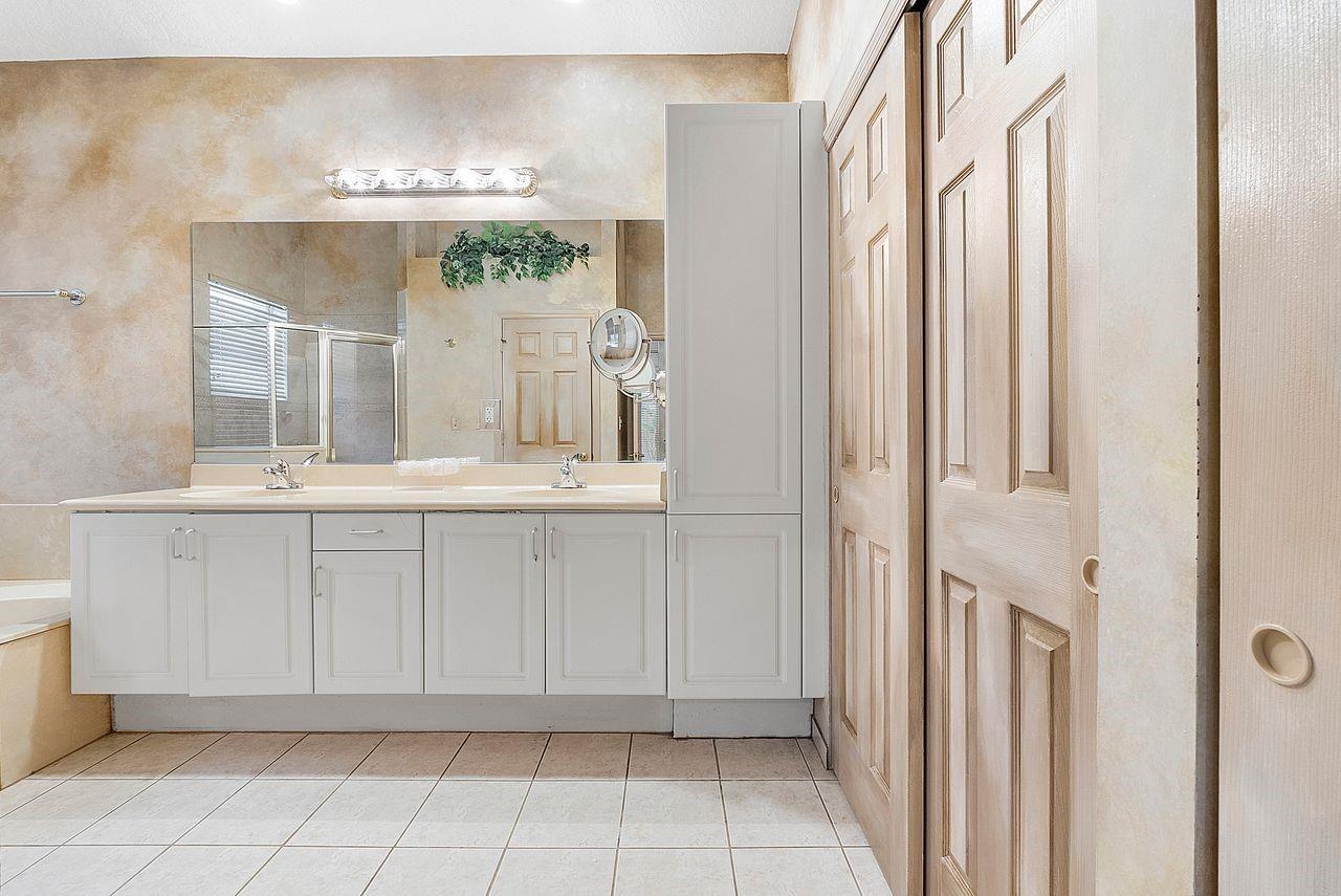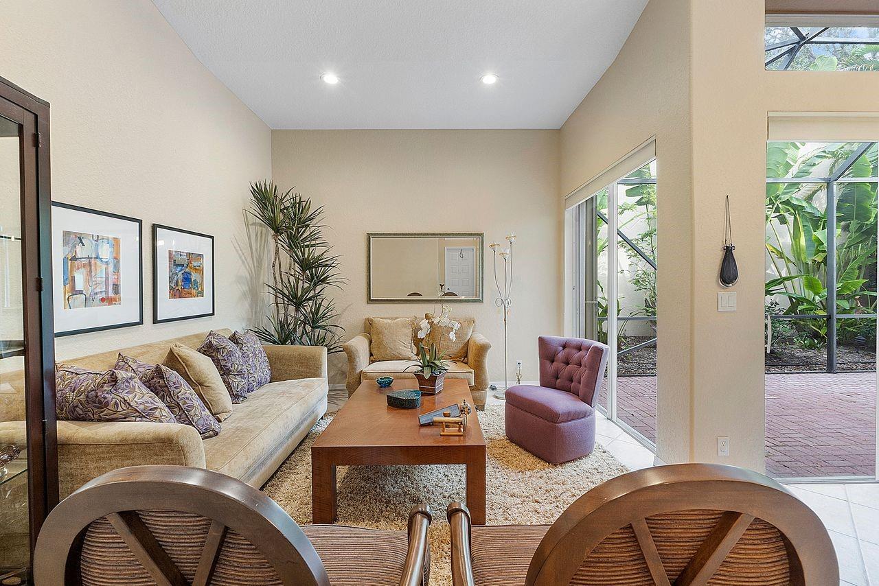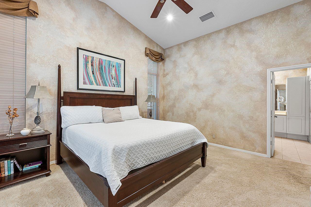 Charming three bedroom in sought after Villa Sorrento of Heron Bay. Perfectly located near the clubhouse with a pool and activity center yet close to the south entrance giving you access to shopping and the highway. This home has a split floor plan with the master suite sporting beautiful faux painting and impressive fitted closets for wonderful storage. The kitchen is efficient with walk in pantry. There are extensive built in units throughout the house to accommodate your every need. This home has a secondary wing with it's own bath and privacy. The second bedroom is perfect as a guest suite and the third bedroom is an office/den with desk and storage, wonderful as a home office or gaming center. Exquisite attention to detail makes this house truly unique for a very discerning buyer.