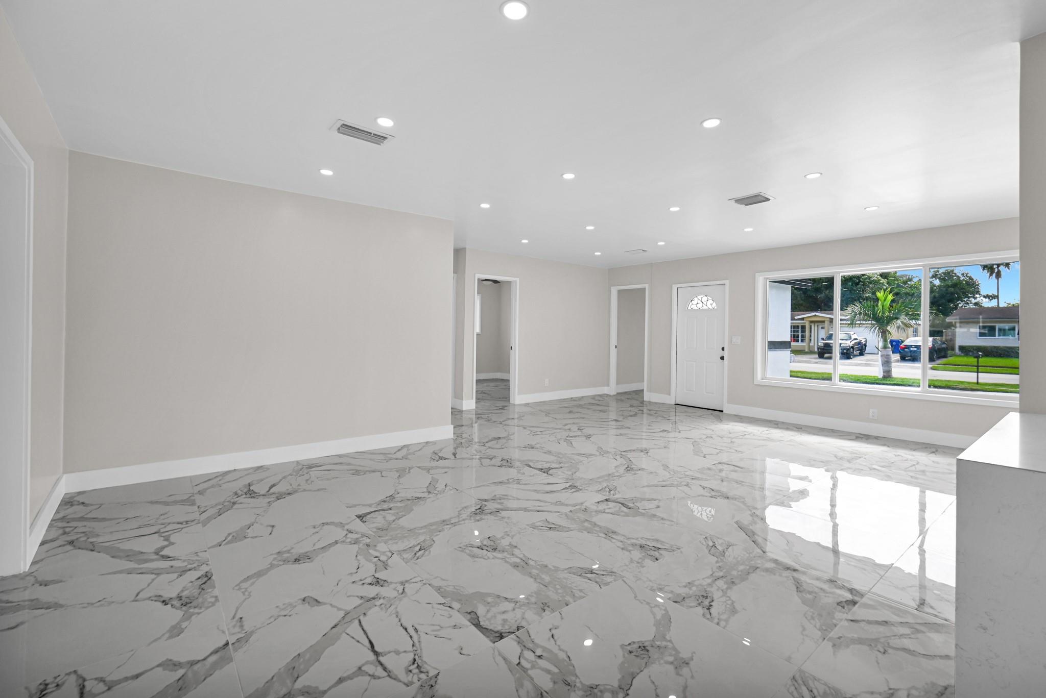 Welcome to your Luxurious Haven! Fully Renovated 3-Bedroom + Den, 2-Bathroom home on a fully fenced corner lot with NO HOA restrictions. Ideal for AIRBNB. Circular driveway w/carport fits 5+ cars. Near I-95 & Turnpike, 13 mins from Las Olas Downtown and 15 mins from the beach. Enjoy Energy Efficiency with a BRAND NEW black shingle roof, 4-ton Goodman A/C w/new duct work, and impact windows & doors. Modern finishes including 32-inch porcelain tiles, recessed lighting, and distinct fixtures. Custom open concept kitchen with new stainless steel appliances, soft close cabinets, a bar area, & quartz countertops. The master suite features multi-mood lighting, a walk-in closet, & luxury bathroom with a sleek glass shower. Large laundry room equipped w/NEW tankless water heater & washer/dryer set.