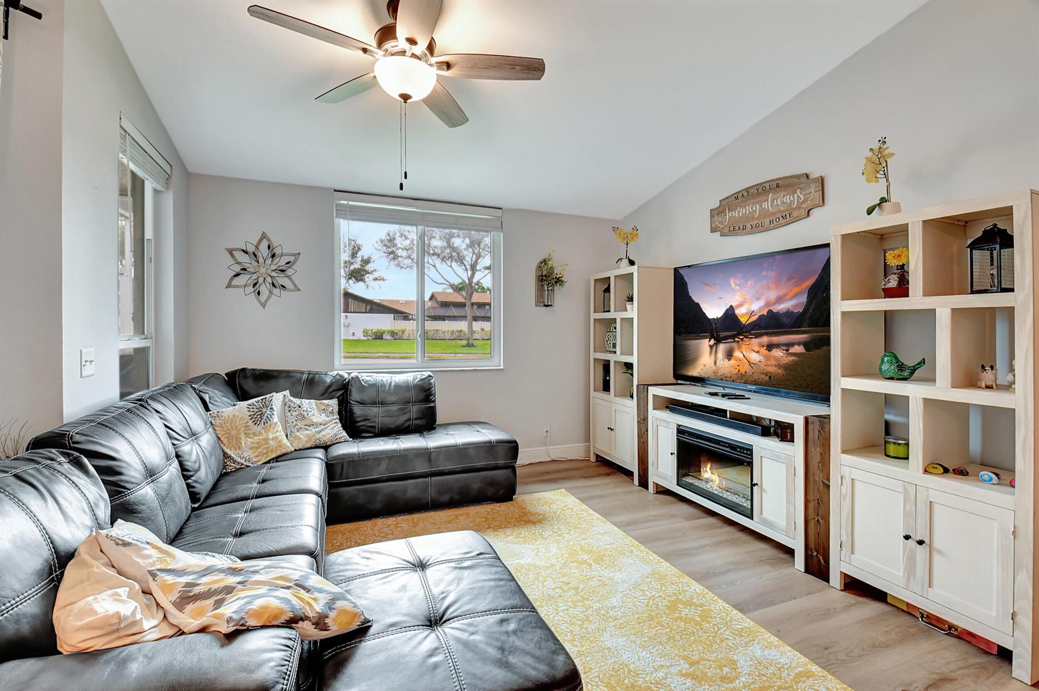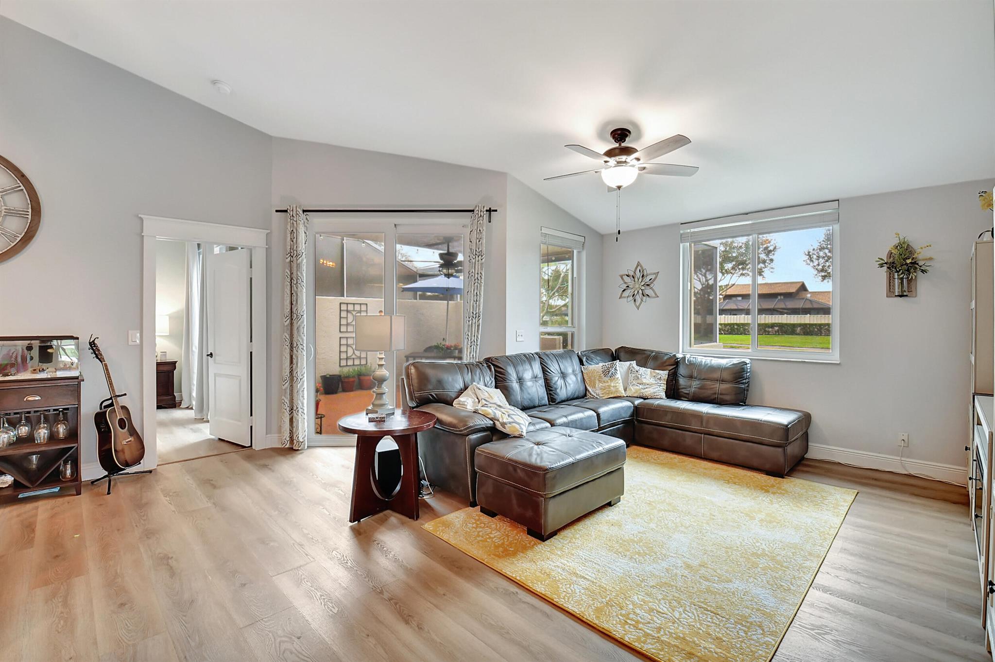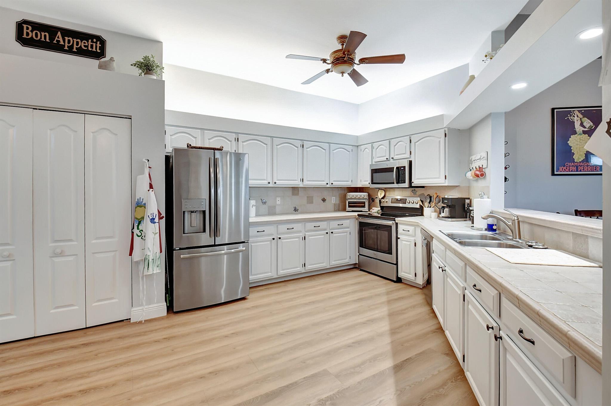 Large and bright 3/2/1 in BOCA. TOP LOCATION. 1,566 square feet . SS appliances, high flat ceilings) and large private screened patio and no front or side direct neighbors. Lennox AC, 2019 HWH, white wood cabinets in kitchen and tile counters with custom storage cabinet. Great schools and Publix and Starbucks next door! Plenty of parking and pet friendly community with 3 POOLS and new pickleball courts! Bes selling model in community.