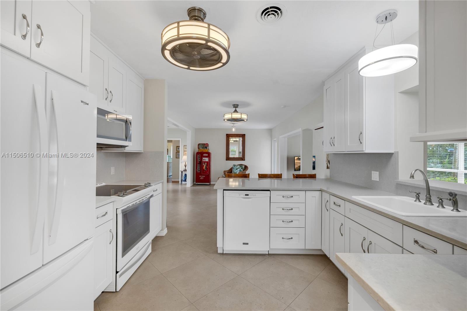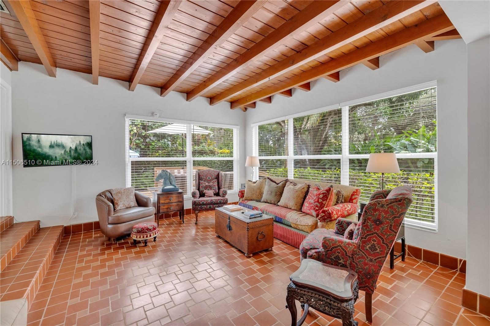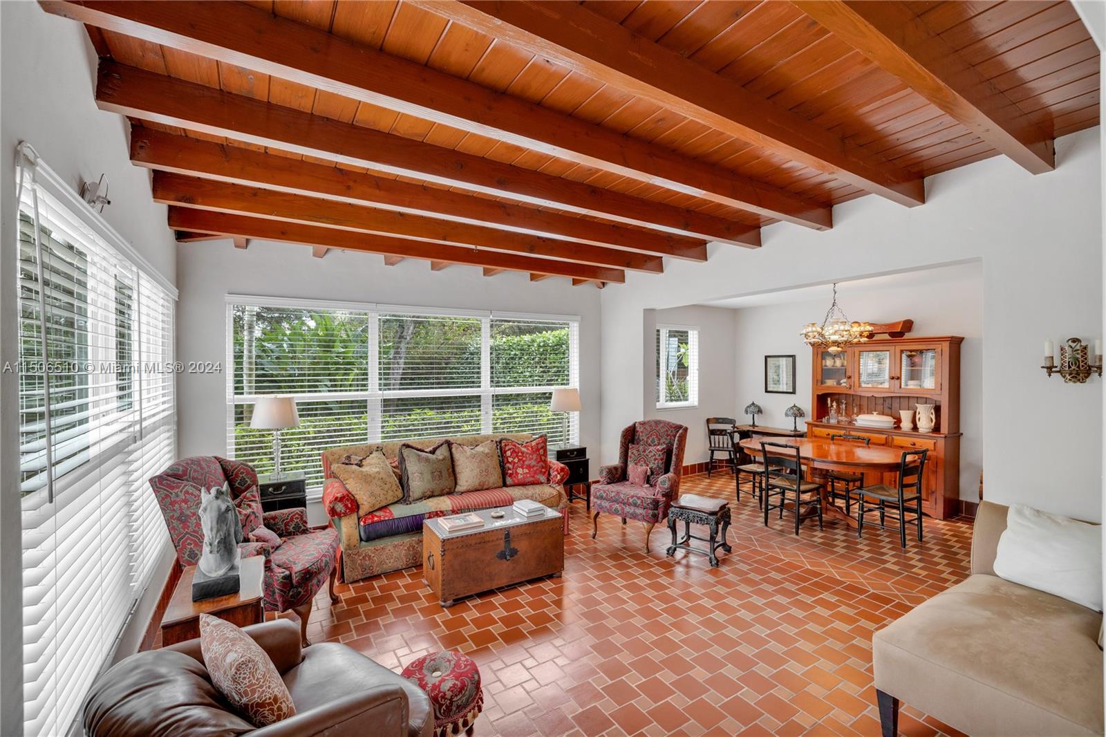 Welcome to a very special Miami Shores home! Meticulous! A wonderful combination of original charm & character with an open concept highlighted by a NEW light & bright quality kitchen in the heart of this home. Also boasting a NEWER flat roof, plus updated electric, irrigation system, and ALL NEW impact windows and doors too! This comfortable layout has 3 bedrooms with a split plan overlooking beautiful view of the fenced yard of greenery from every room! An oversized corner lot of 12,200 has plenty of room to add a swimming pool, and offers privacy with entertaining space and comfortable new decking, along with lush landscaping. Warm and inviting rich wood beams in the family room & dining room. Permits on file with Miami Shores Village. Flexible schedule and showings.