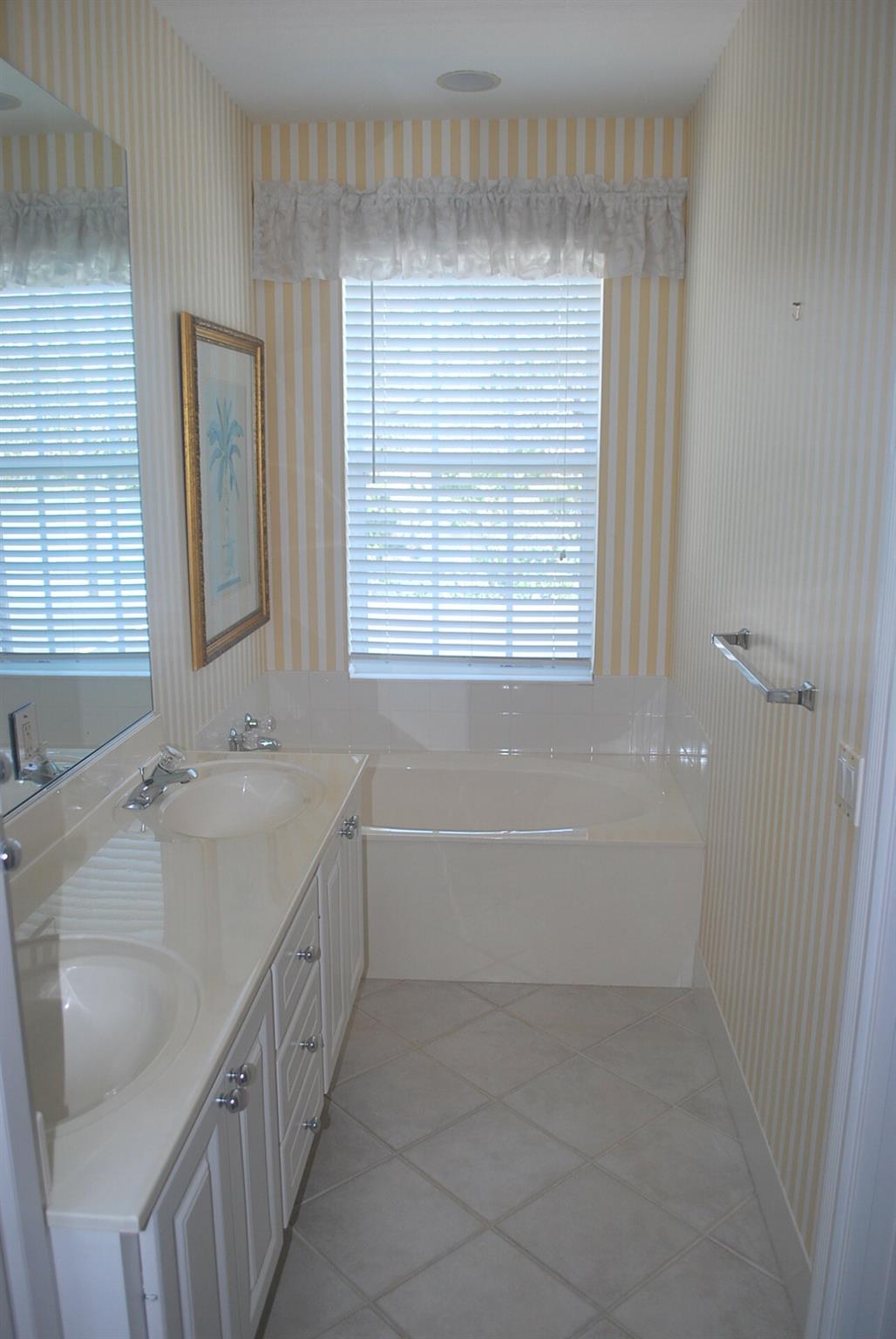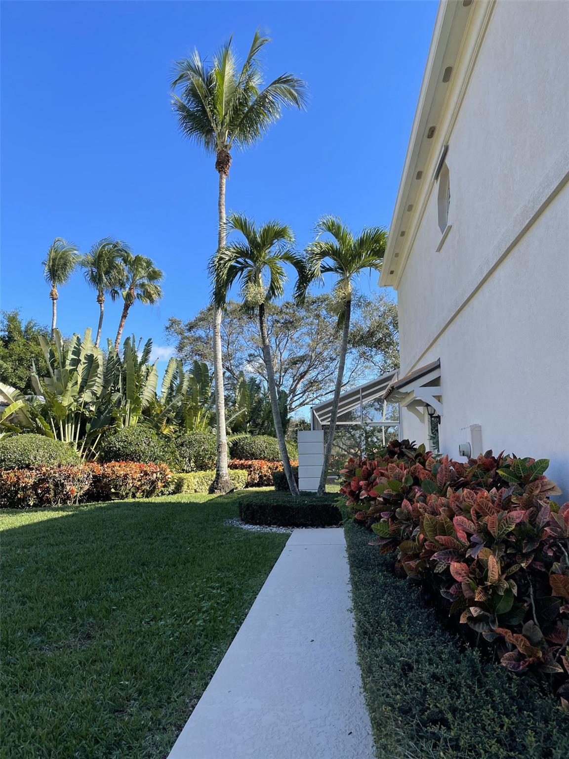 Freshly painted, this immaculate well-appointed 3BR, 2.5 bath, lushly landscaped, waterfront home is situated on a spacious lot, with your own private pool. This former model home on Riverwalk's original model street, offers oasis-like outdoor living. Open, wide lagoon views with a large side lot allows you the space to enjoy your privacy. Stunning views throughout, this home offers multiple upgrades including crown molding, wainscoting, designer window treatments, plantation shutters, accordion hurricane shutters, a retractable awning flanking your screened-in patio pool deck. Spacious closets allow plenty of extra storage. Riverwalk's gated and scenic grounds also offer a restaurant, clay courts for tennis & pickleball, three pools, a fitness center, miles of hiking trails, and yoga.