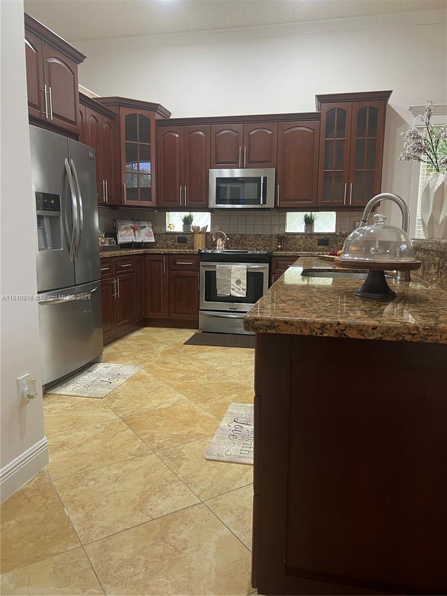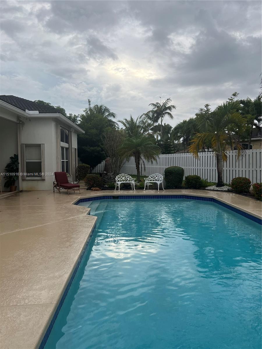 Spectacular one-story pool home in the prestigious gated community of Keystone Lakes. Very well-maintained home, 4bed/ 2.5 bath and 2-car garage. This home features double door entry. High volume ceilings. Nice kitchen with granite countertop overlooks spacious family room. Tile floors in living areas and waterproof laminate flooring in all bedrooms. Master bedroom w/ huge walk-in closet, master bathroom with dual sinks, tub and shower, laundry room, accordion shutters .French doors. The home has been freshly painted, Fenced backyard with a beautiful pool great for entertainment. Perfect location with A rated School, restaurants, shopping centers and close to I-75. HOA includes Wi-Fi and Cable.