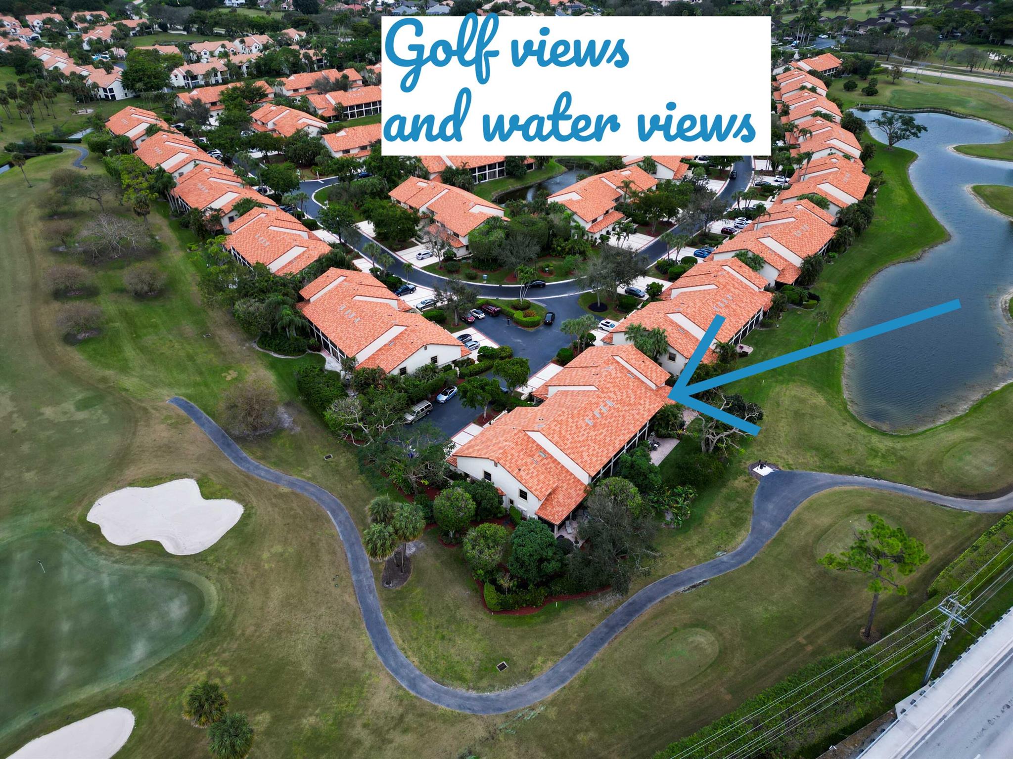 Welcome to this inviting and expansive corner townhome, creating the ambiance of a single family residence. Nestled on a private corner lot with a private entry, this charming home boasts over 2,000 sq ft of living space. Featuring 3 generously sized bedrooms, 2 full baths + 1 powder room, it offers a comfortable and well-designed living environment. Abundance of natural light through numerous windows showcasing picturesque views of the water and the golf course. The property comes complete with a fully attached two-car garage and an additional private driveway with space for two cars. The spacious interior has vaulted ceilings, providing an airy and open feel. The master suite has a large bedroom with a walk-in closet and a spa-like master bath area .