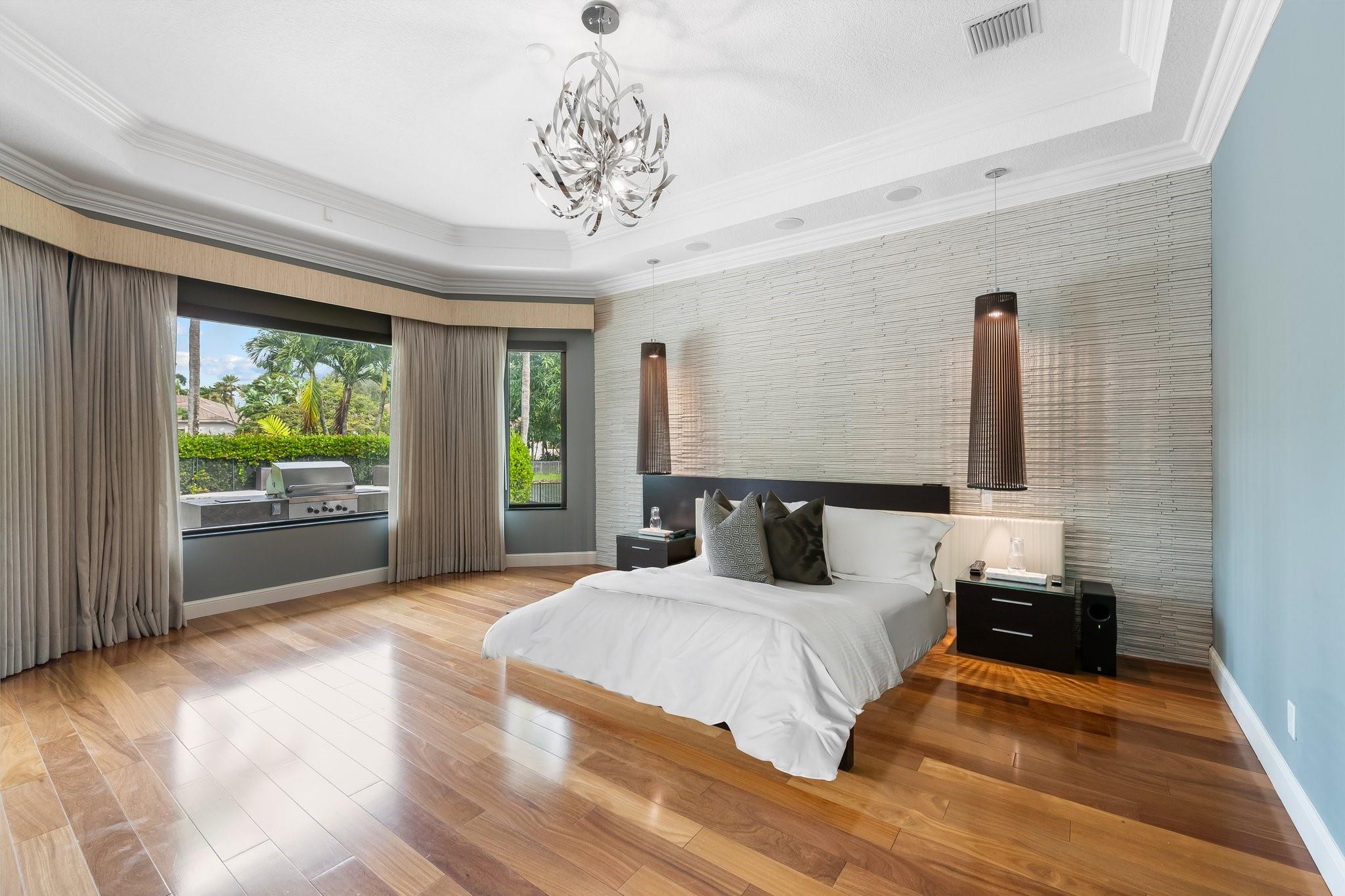 Spectacular 5 bedroom, 3.5 bath plus office on nearly 1/2 acre inner loop in Hawks Landing. Impeccably maintained, single story transitional home w/14ft ceilings, offers expansive lake views, quiet cul-de-sac & is move in ready. New roof, Limestone floors & Brazilian teak hardwood. Double height kitchen w/sub zero-wolf appliances quartzite counters, Dornbracht fixtures. Whole house generator & Control4 smart home. Controlled lighting, drapes/shades/audio system. Pool resurfaced 2019, new heater/salt system & Aqualink control. New master bath w/Dornbracht fixtures, rosewood vanities,quartz tops & air tub. 3 car garage, built in cabinetry, ipe doors, epoxy floor, motorized bicycle storage. Custom closets in all bedrooms, 4-A/C units, FloLogic water leak system, Impact windows & central vac