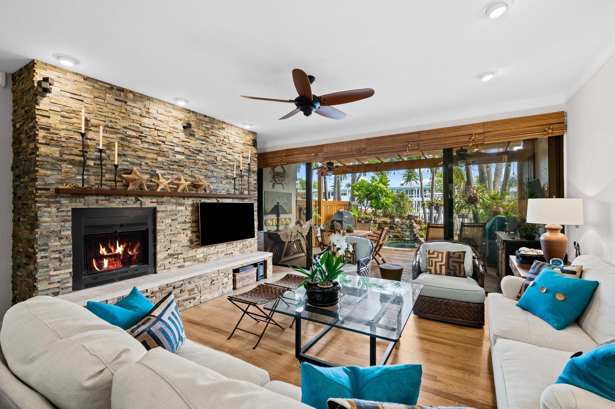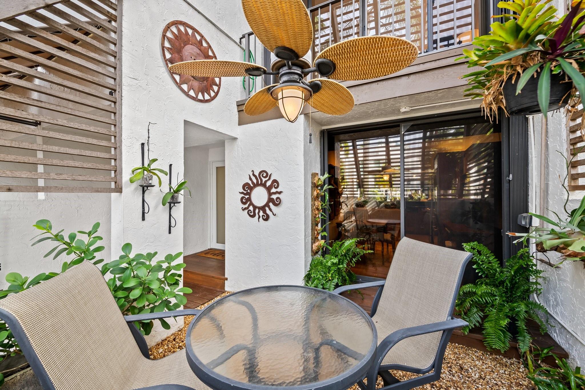 Waterfront townhouse w/ boat slip & lift w/ kayak/paddle board storage. Tropical private patio, plunge pool and parking spaces. East exposure with covered terraces. Upgraded solid oak floors, solid wood cabinets by Quaker Maid Kitchens w/ dovetail drawers & under-mount glides. Stainless Sub-Zero refrigeration, convection range/oven, Epicure stainless sink w/ prep shelf. Wood burning fireplace. Partial impact windows & large sliding glass doors. Two bedrooms w/ walk-in closets and storage system.