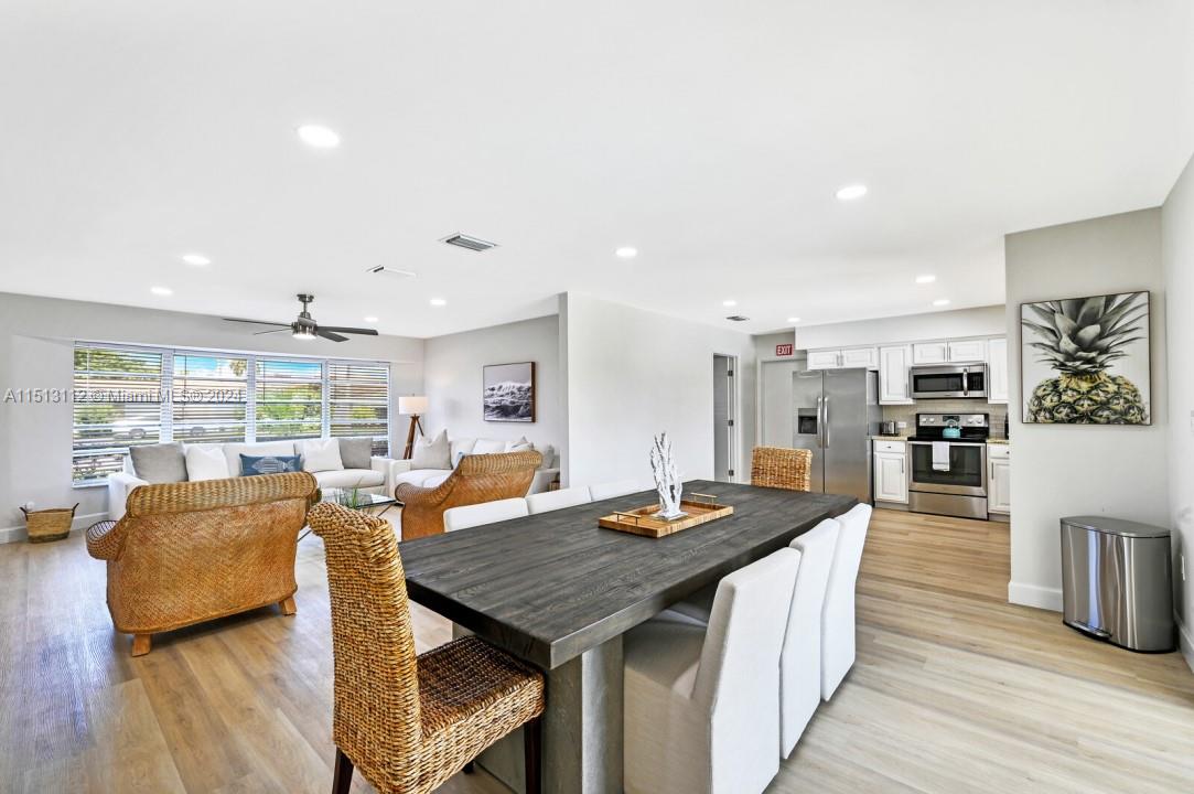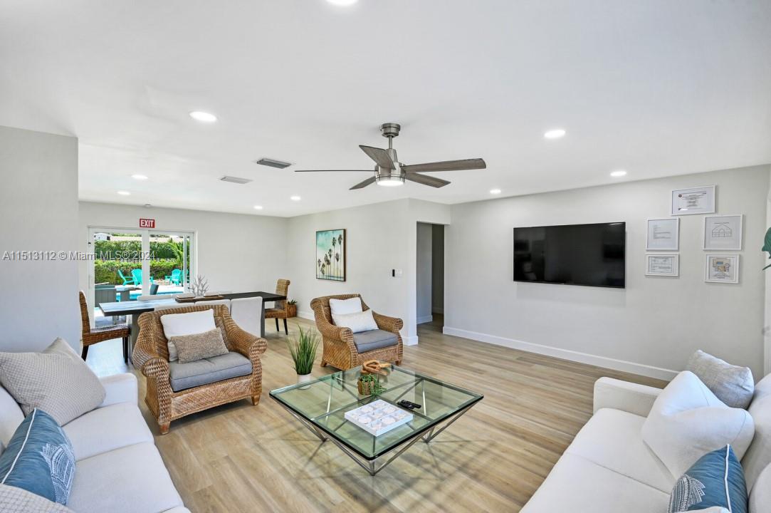 The interior designer imagined a Modern Coastal Open Floor Plan when fully renovating this Immaculate 4-bedroom 2 full bath Pool Home! Luxury vinyl planking throughout the home. Interior and Exterior of the home is freshly painted. Recessed lighting throughout the home. You will love the remodeled kitchen which boasts stainless-steel appliances, granite countertops and window overlooking the pool. Guest full bathroom is fully renovated “Modern Coastal style” with pool access. The Master bedroom Suite has a walk-in closet and fully renovated luxury spa bathroom. New HVAC/AC system, Roof replaced in 2015. The backyard Oasis is fully fenced in with a new heated large pool and travertine decking. Personal beach-sand area with custom beach fire pit. Large outdoor covered area.