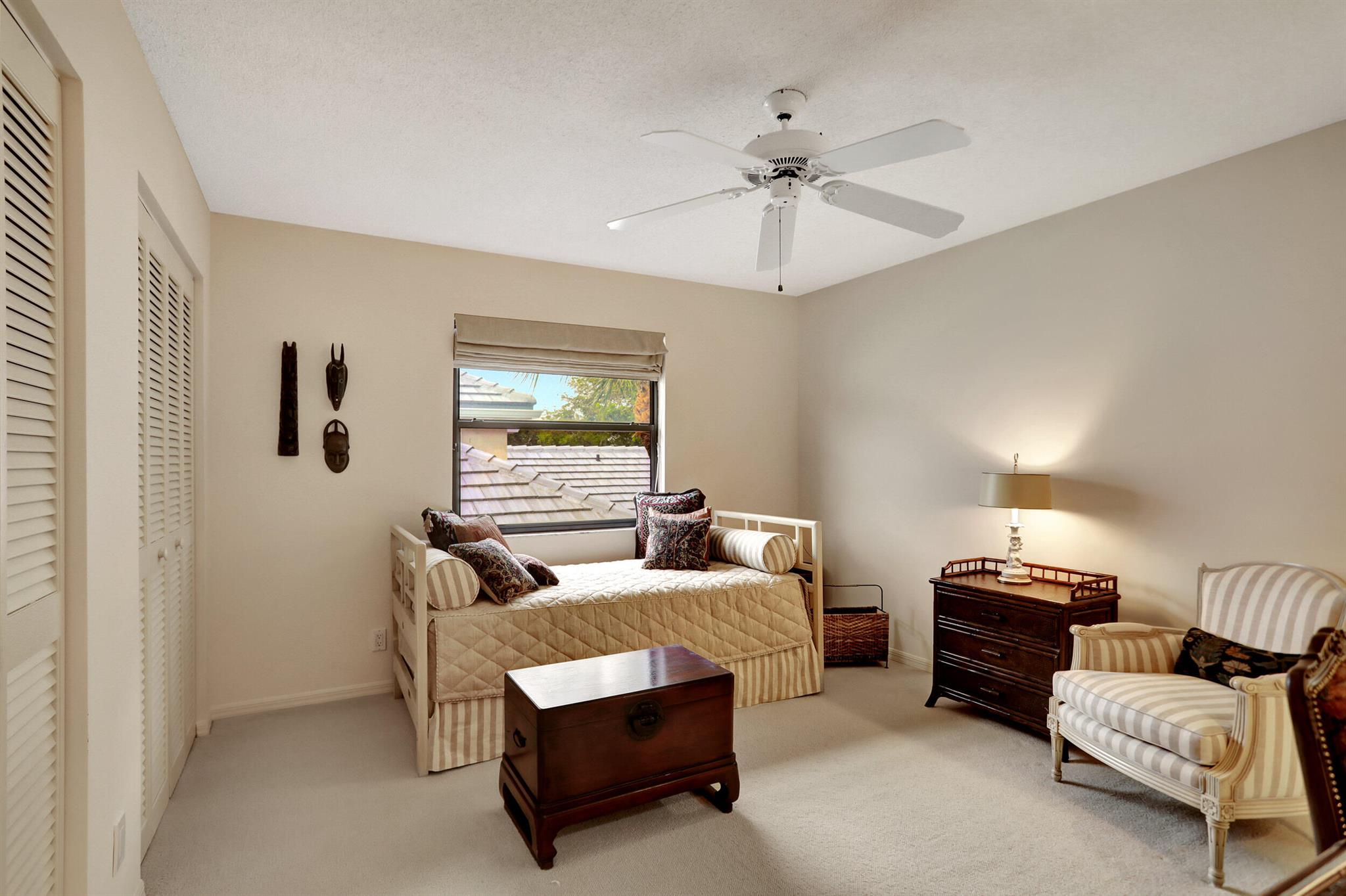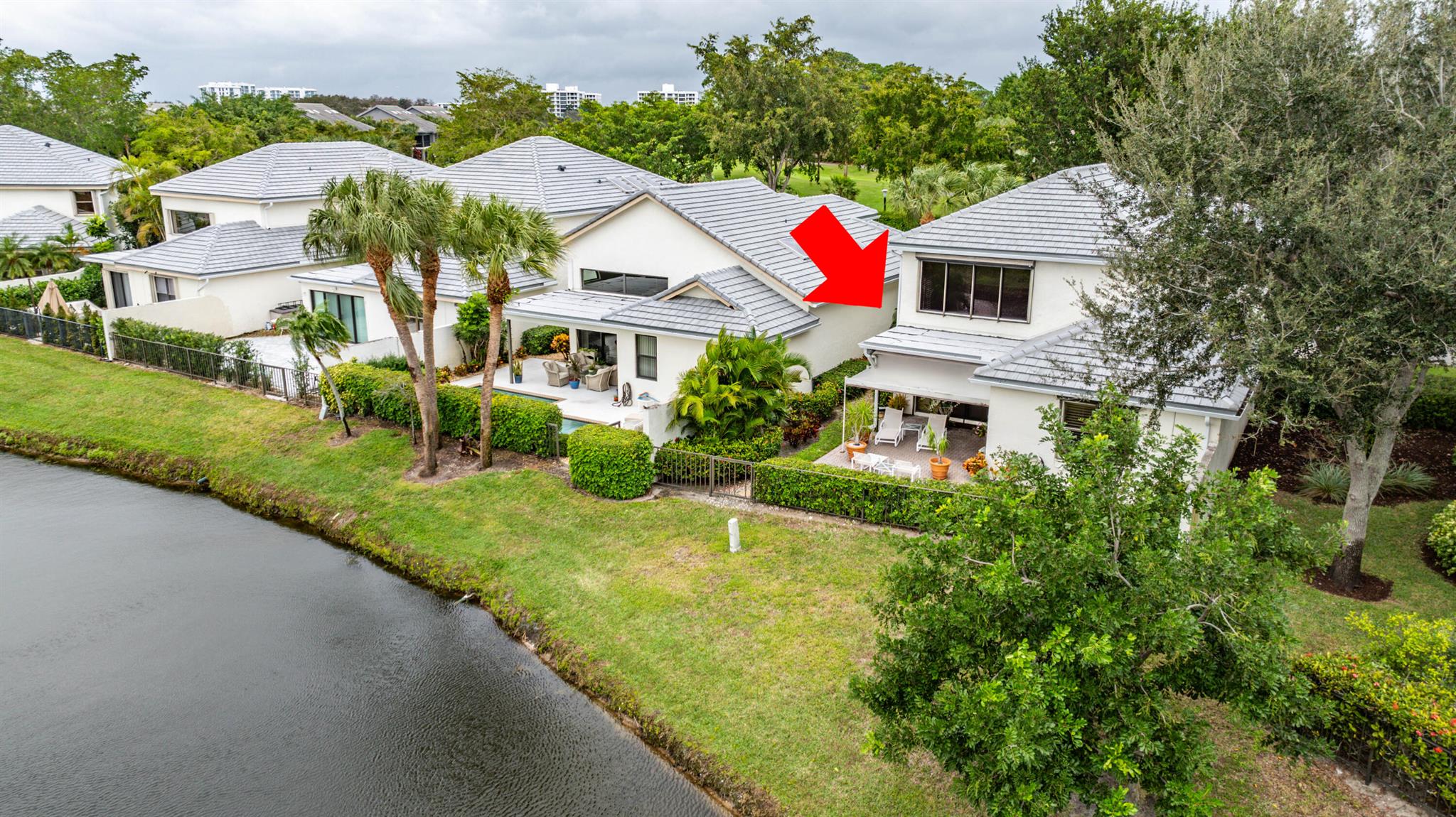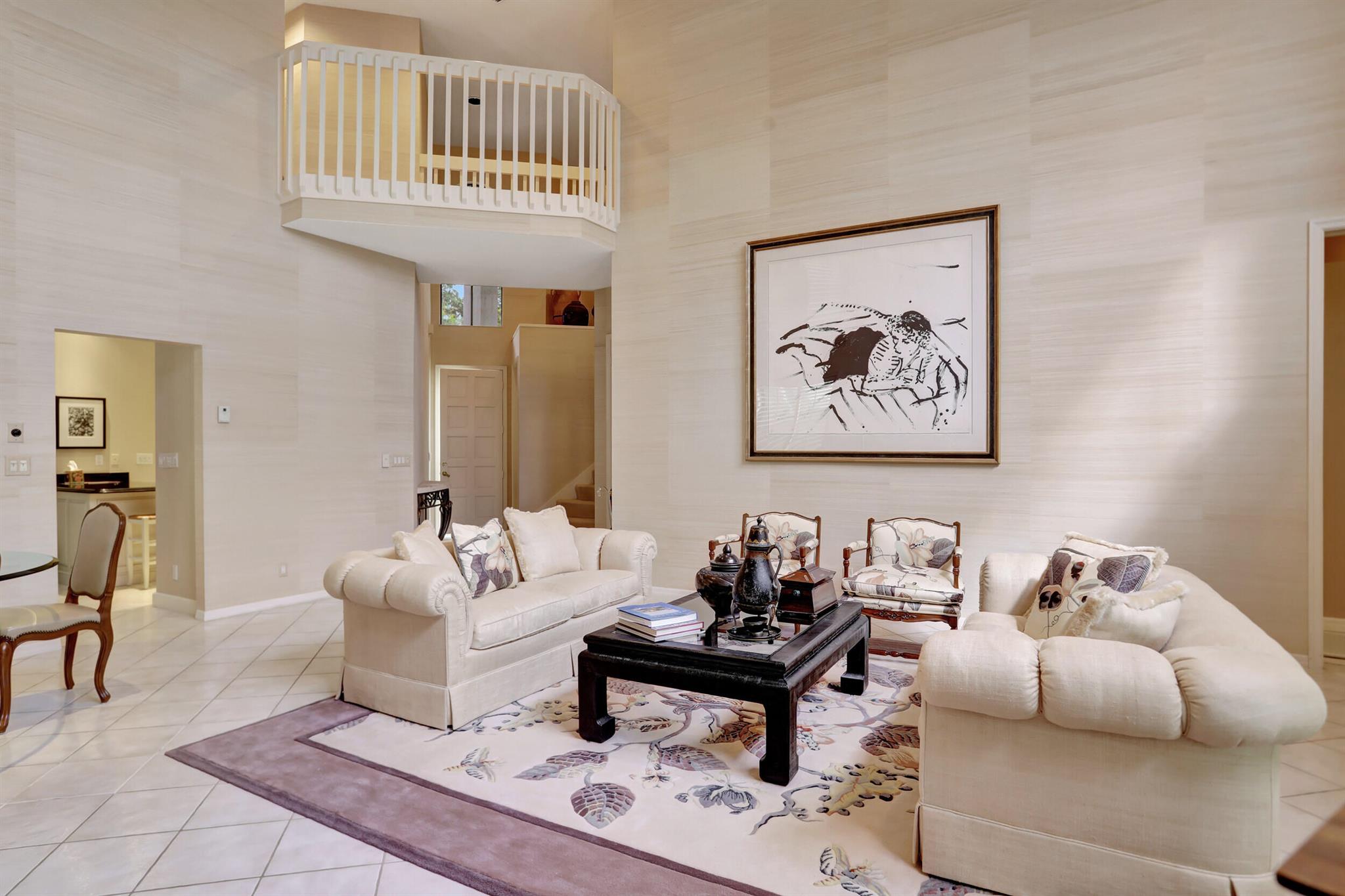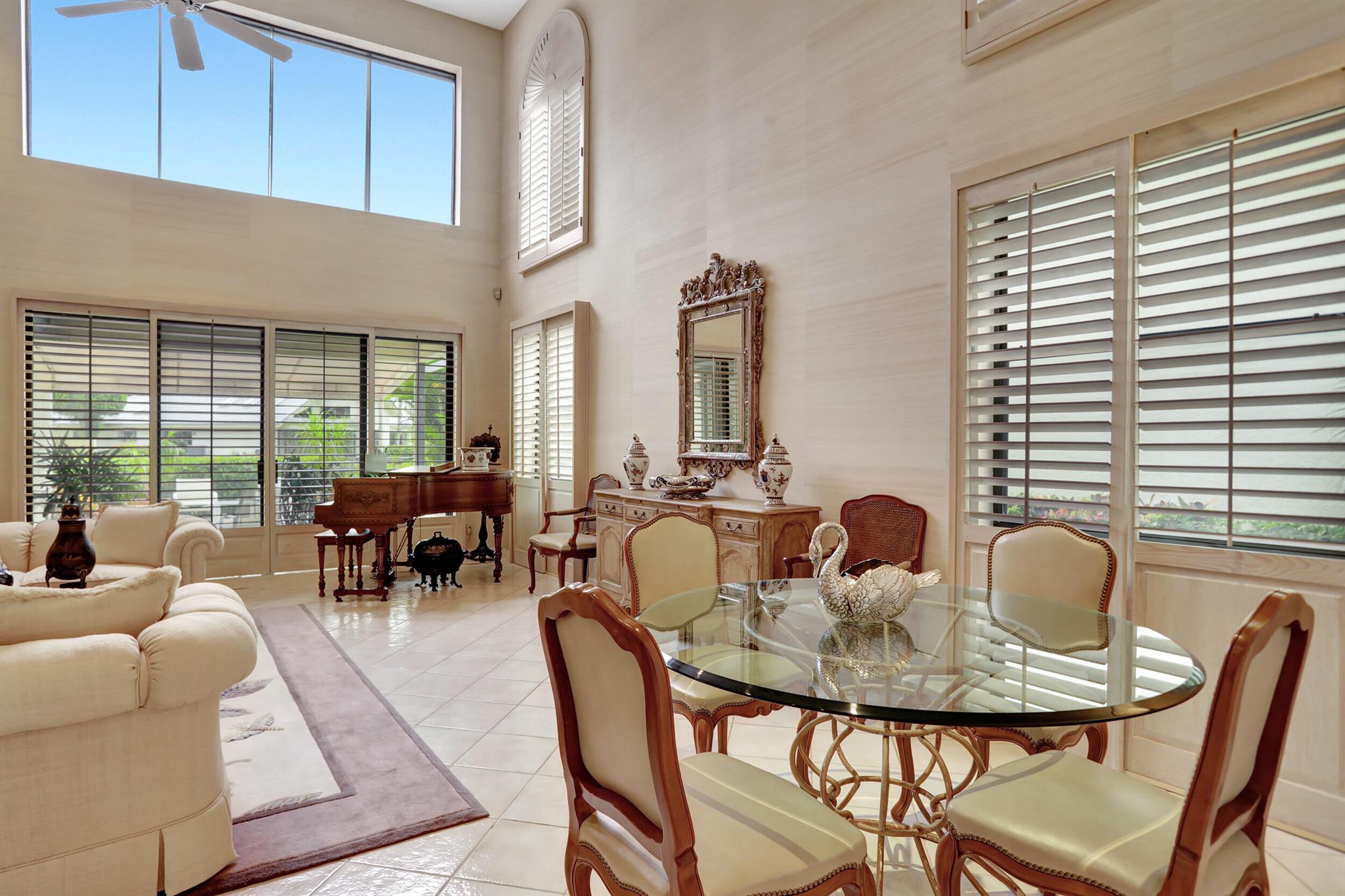 A very special offering! Waters Edge two story 3 bedroom, 2.5 bath free standing patio home located on a water front lot. Southwestern exposure. Only 18 free standing home in this community. Master is on the main level. Large open living area with skylights plus separate family room and kitchen. Tiled living areas. Covered and open patio areas with removable awning. Large open area to the side of the home. New roof just completed in 2024. A/C in 2016. Partial Hurricane shutters on the main level. Full 2 car garage. Being offered unfurnished with basic furnishings negotiable. Club membership required at $115,000. plus a $10,000. contribution to the Boca West Master Association for all new members into Boca West CC. Being sold 'as is' with the right to inspect.