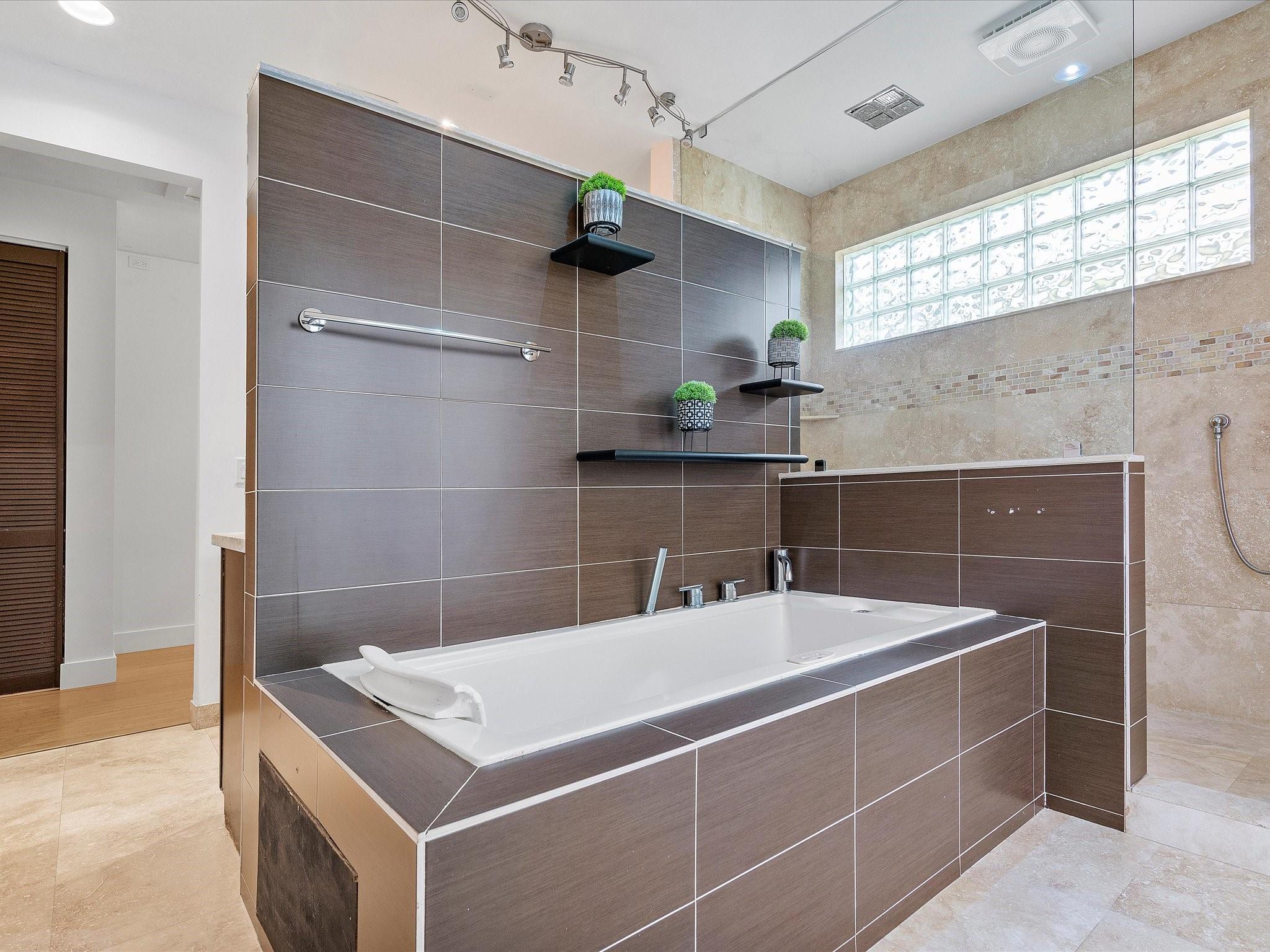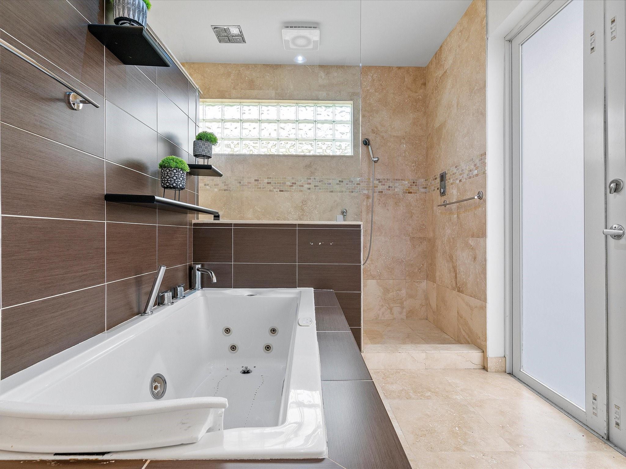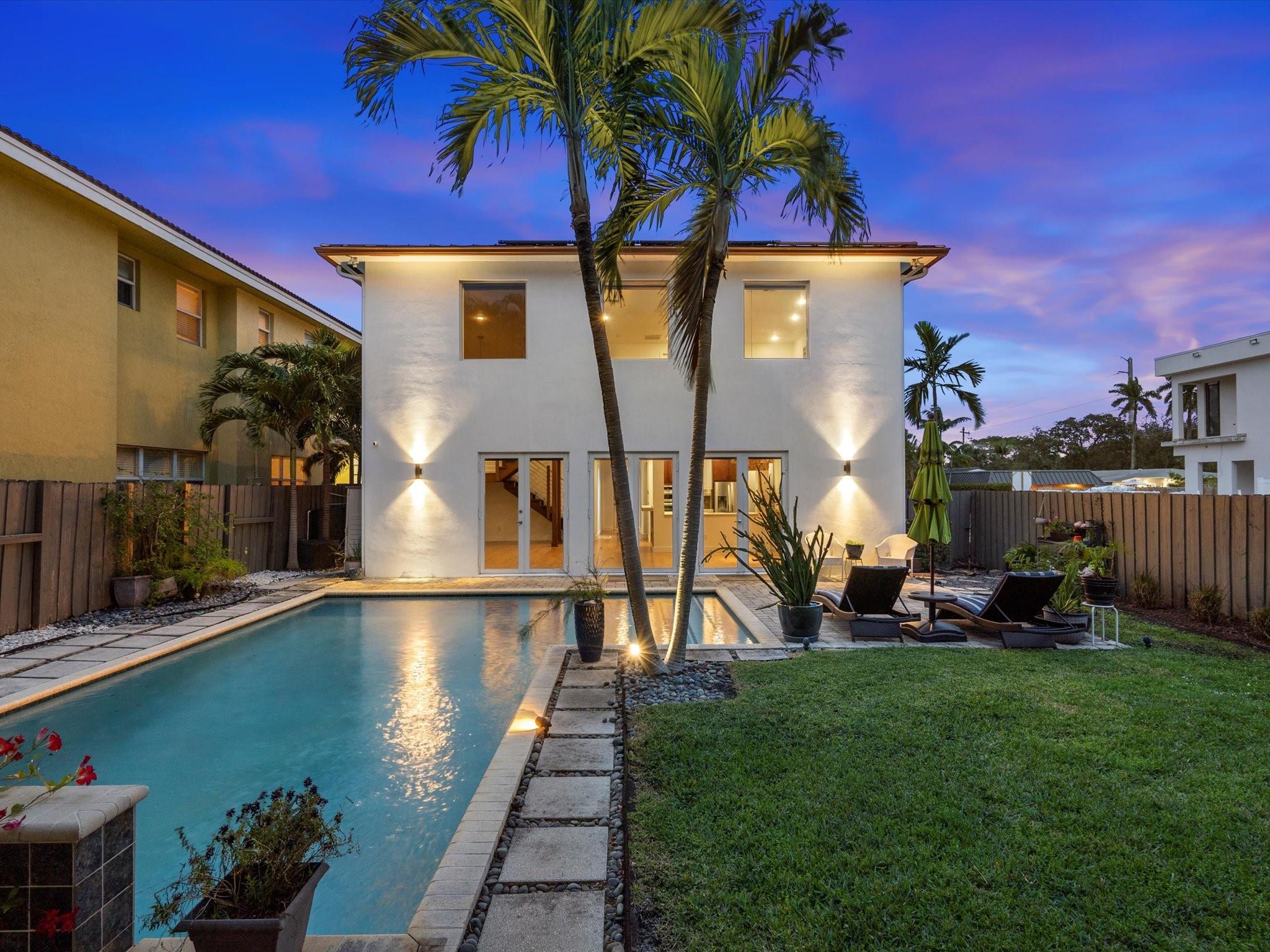 Spacious 3 Bedroom 2 Bathroom Single Family Home w/ Pool. It features bamboo & tile flooring, newly renovated bath, & 20' high ceilings in the living/dining area. Upstairs is the expansive Primary Suite with custom closet & ensuite with a shower w/8 programmable jets also spa tub w/ fiber optic lights. There's also a loft that's perfect for a home office. The kitchen has stainless steel appliances, wall oven, & custom concrete counters. The backyard is simply stunning. It's fenced in, has ample greenspace, a brick pavered patio and the most welcoming pool you'll ever see. Additional features: Solar heated pool, impact windows/doors, Two zone AC units,Tesla & RV chargers & laundry room. Here you'll be just blocks to Holiday Park, the beach, Las Olas, Mall, HTB State Park and lots of dining.