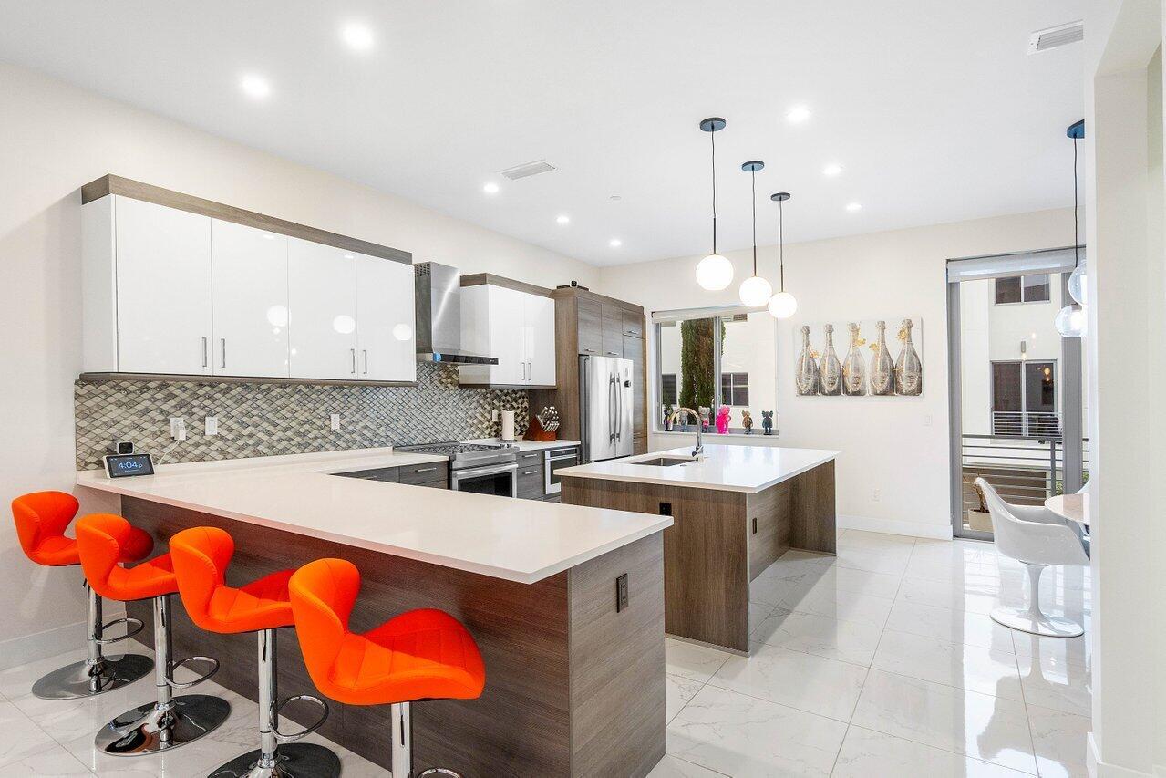 Looking for an upscale urban living with the convenience of being surrounded by the best of everything in Boca Raton ? This 3 story, 2 bedroom, + Den , 3,5 bath, 2 car garage luxurious townhouse is located in the Private/Gated one-of-a-kind project MODERNE BOCA! Contemporary townhouse with spacious living area that features an open layout that seamlessly connects the living room, dining area, and the gourmet kitchen with European-style high-end cabinetry, large islands, quartz countertops, built-in garage storage system. Den can be converted to a 3rd bedroom by closing it with door, like many others did in the development. Enjoy the lushly landscaped grounds, Fitness center, resort style pool. Easy access to Boca Raton Airport, Town Center at Boca Raton, Mizner Park, Universities, more