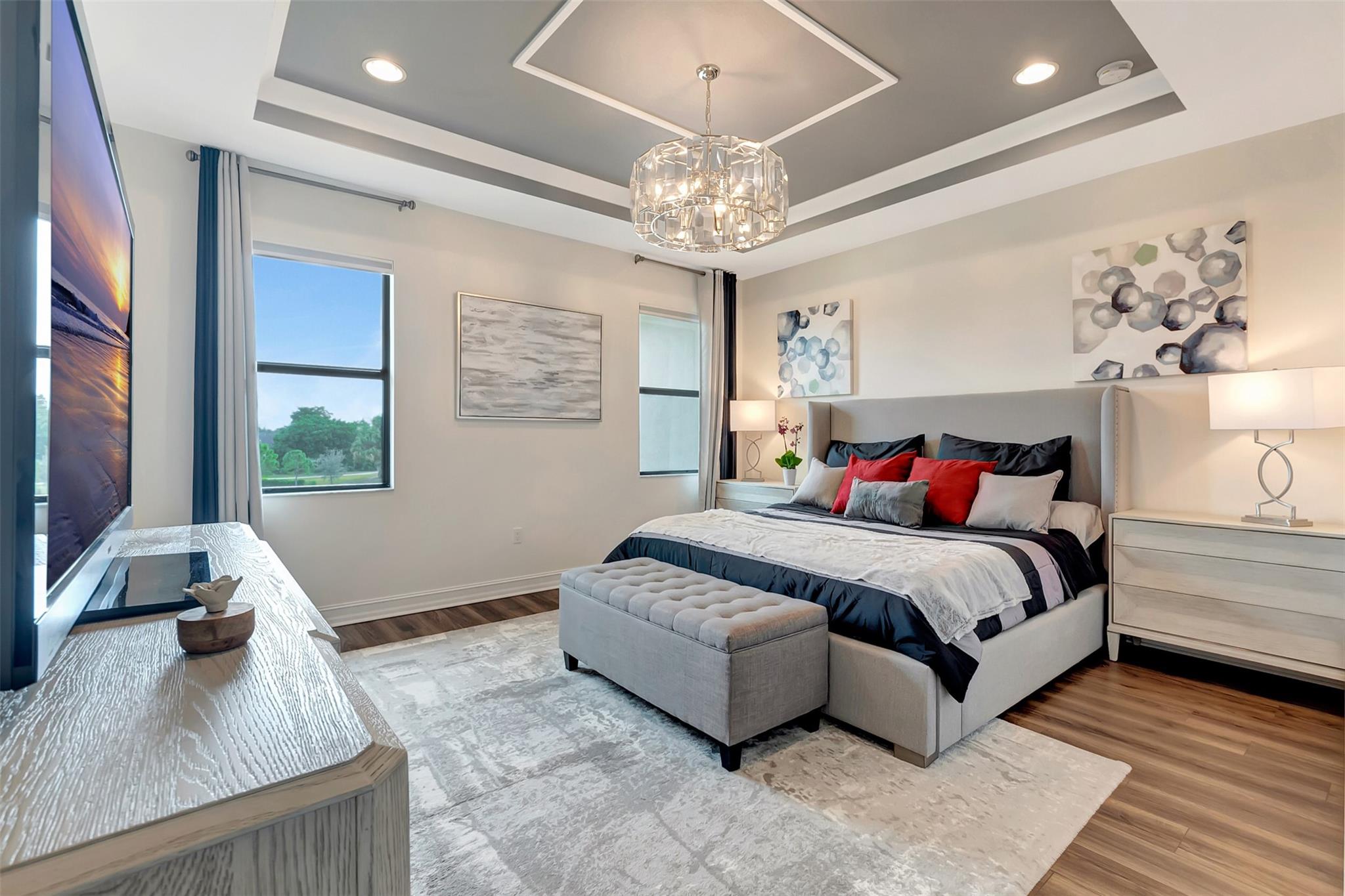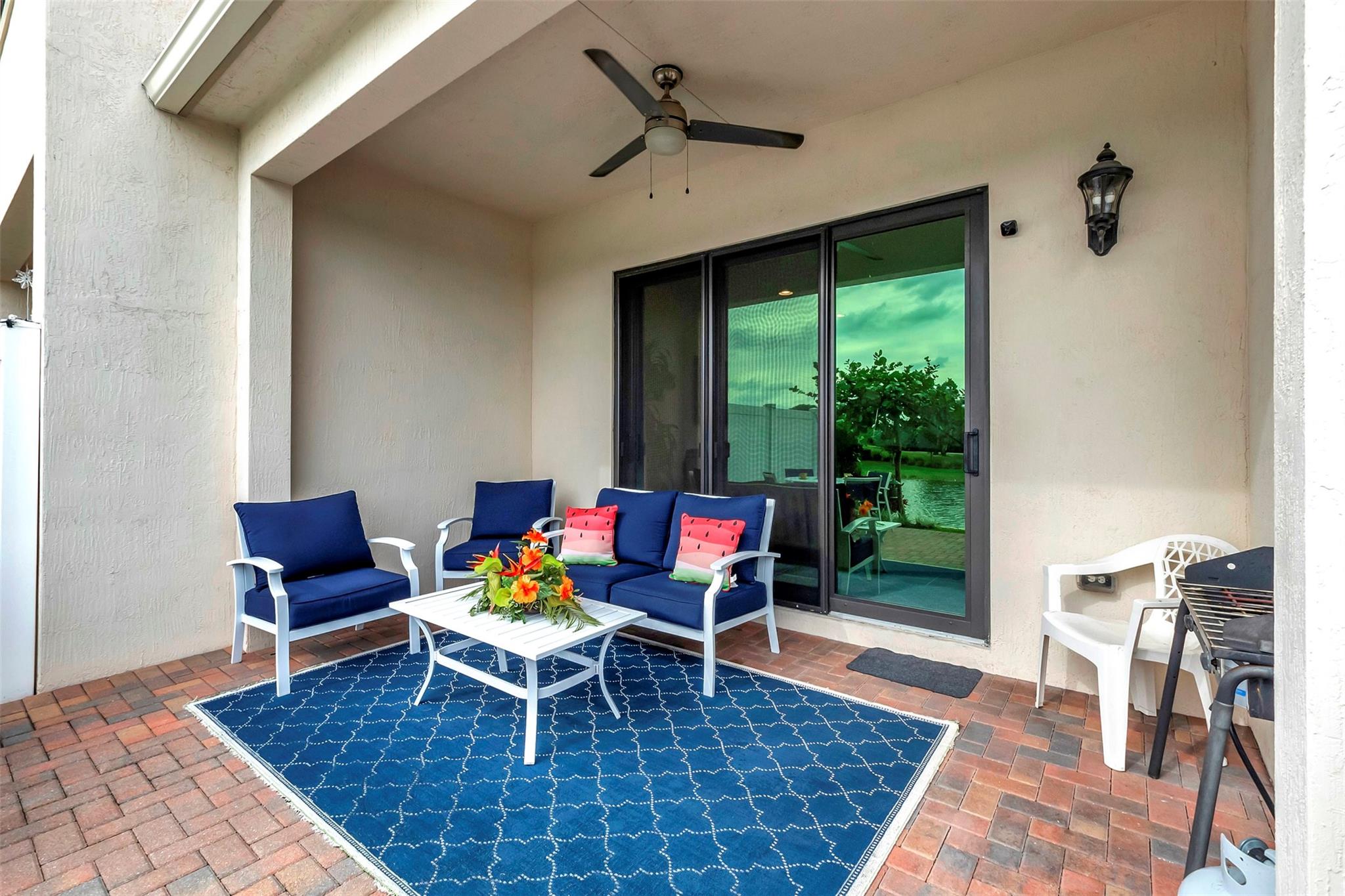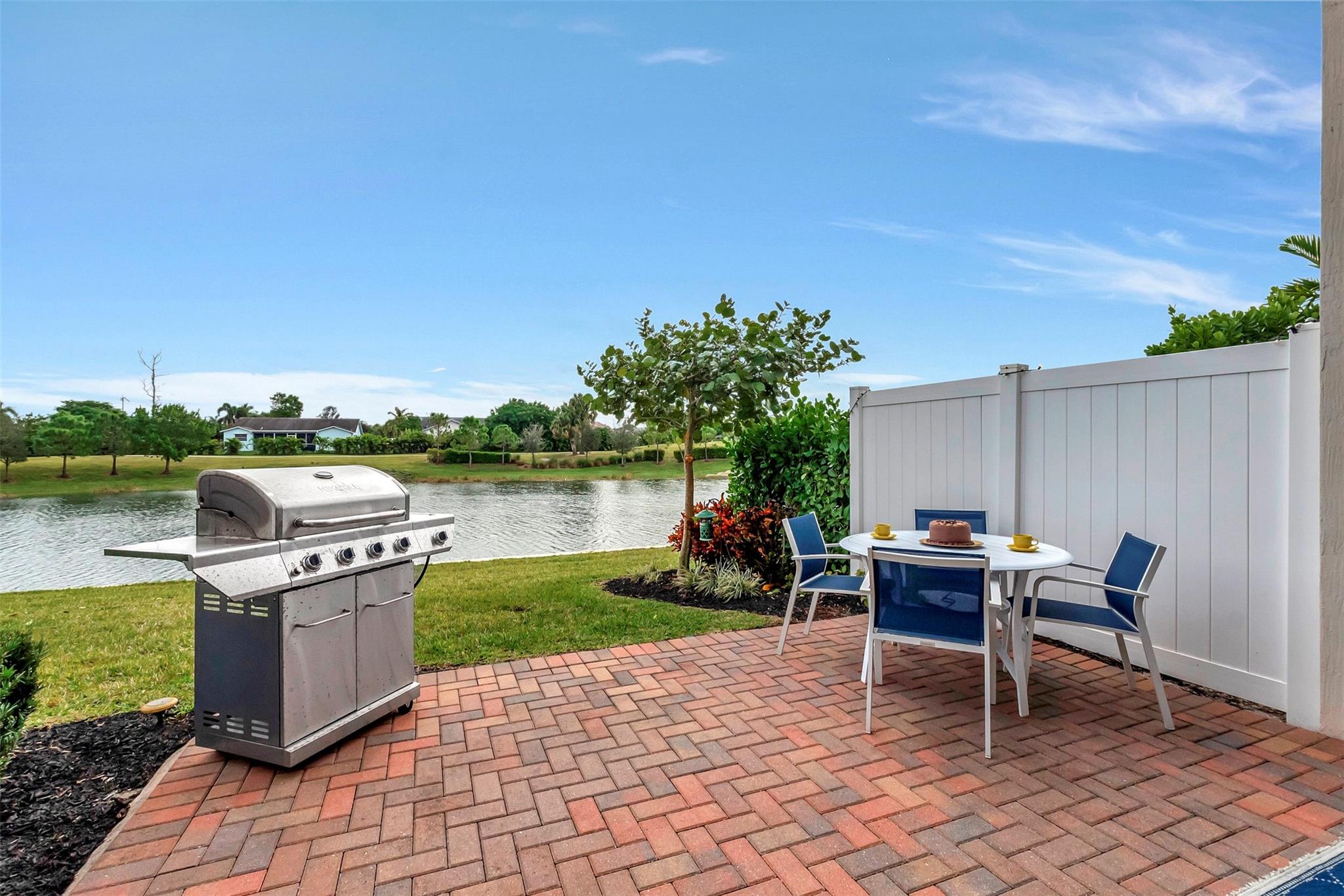 Amazing UPGRADED TH featuring 2,100+ SF overlooking the golf course & tranquil WATERWAYS. FURNISHED! Foyer entry opens to WIDE-OPEN floor plan boasting neutral porcelain tile floor adorned w/ 6" baseboards throughout. Sprawl out in the huge GREAT ROOM & enjoy the triple sliders capturing the water & golf views. Entertaining is a breeze in your CHEF'S kitchen boasting S/S appliances, 40" cafe au lait cabinets, farmhouse sink & QUARTZ counters. Fall in love in the 16' x14' primary suite w/ luxury vinyl flooring, trey ceiling w/ crown molding & walk-in closet. Primary bath features split vanities w/ quartz counter + 6' frameless shower. Split BR for guest privacy! Large guest rooms. Guest bath w/ tub tiled to ceiling. BIG Paver patio for parties faces east! LOW HOA. 2CG, gated, A++ schools.
