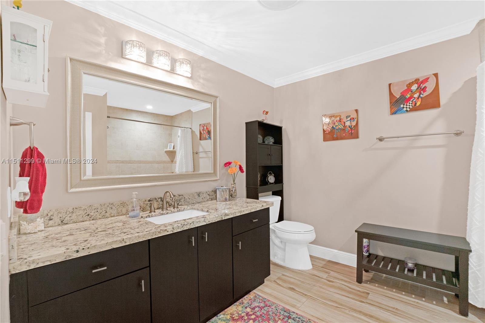 THIS IS THE SINGLE-FAMILY HOME YOU’VE BEEN WAITING FOR! From the foyer, you’ll be stunned by the high ceiling, open space concept and remodeled kitchen, as well as the spectacular view of the pool and your own, private oasis. Spacious, bright, meticulously kept, with a 2-car garage, laundry room w/laundry tub, and NO stairs and NO carpet! Plenty of storage space, with 2 closets in the master (one of them walk-in). NO neighbors on the back or on the front. Doral Woods is a guard-gated community with its own swimming pool. It’s about half a mile from either Morgan Levy Park or Doral Country Club, which offers an Olympic size swimming pool, gym, sauna, Jacuzzi, party room, restaurant, tennis court, pickleball court, and access to the golf course (paid separately). Roof replaced in 2012.