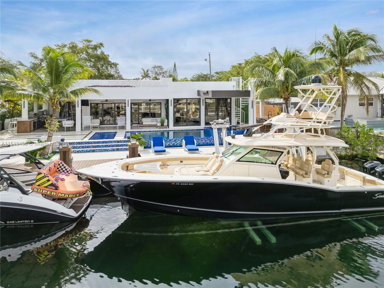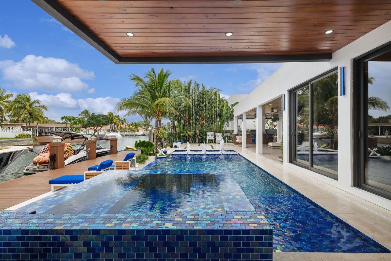 KEYSTONE POINT NEW MODERN 2019 REMODEL* DIRECT OCEAN ACCESS *OVERSIZED 78' WIDE LOT* 60' OF SEADECK FLOORING IN NEW DEEPWATER DOCKAGE*DIRECT OCEAN ACCESS* 4BDRS|4BATHS| POOL/JACUZZI |2700 SF| Immerse yourself in the heated saltwater custom pool, complemented by a jacuzzi for 8. The property also includes a Neptune boatlift up to 33000 lbs. Keystone flooring adorns the outdoor terrace, providing an elegant touch as well as everything else on this home that is new from the roof to the plumbing system. Enjoy peace of mind with an 8-channel security system. Located just minutes from the open bay with no fixed bridges, this residence offers unparalleled access to the waterways. The high façade is a sight to behold, featuring a waterfall and water mirror, a true sign of serenity and modernism.