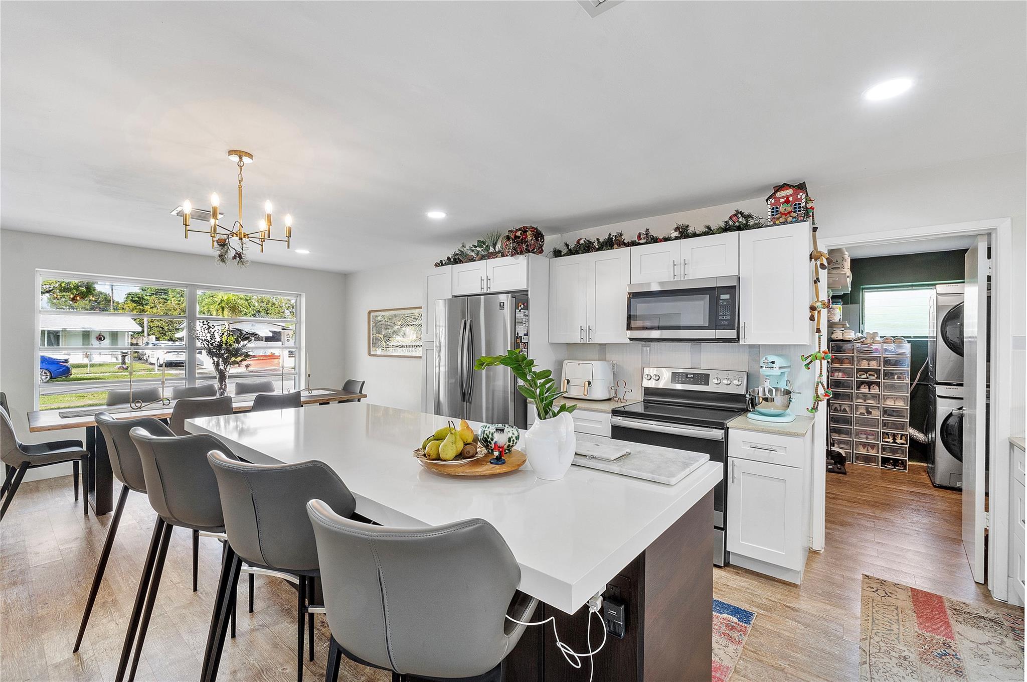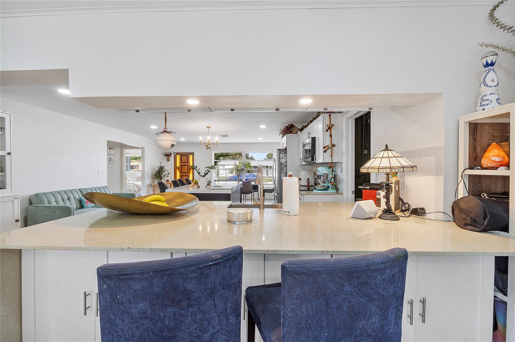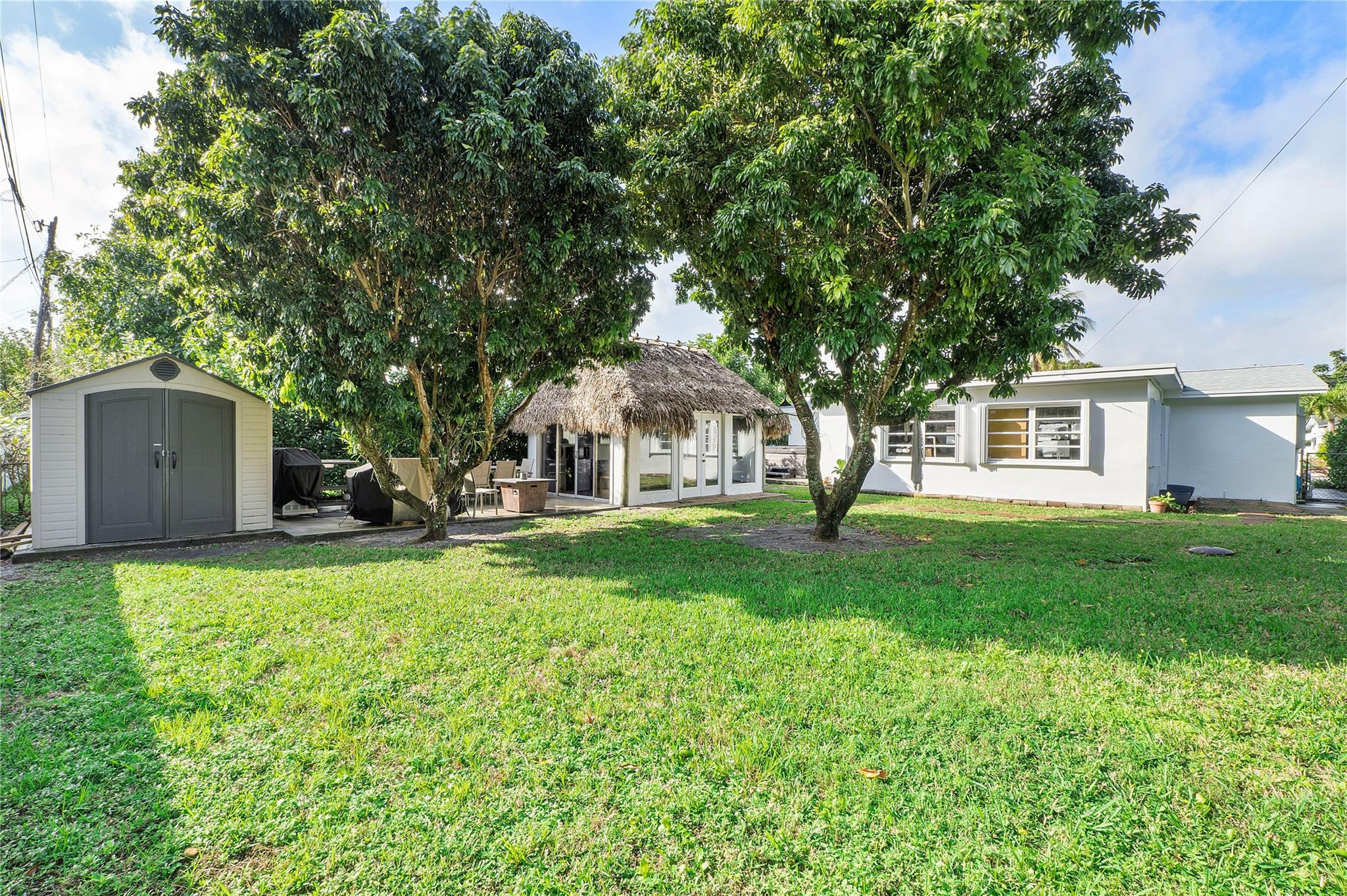 This fully updated 2 bed/2 bath open concept home is an entertainers paradise. Open concept kitchen with quartz countertops a large island with wine fridge and all new appliances, including new W&D in laundry room. Enter the massive yard featuring a Jacuzzi & an enclosed Tiki Hut with AC to stay cool in those summer months. Large BBQ area for all your family events & plenty of room for a future pool. Quiet neighborhood with easy access to 95 and the beach, brand new playground/park just a couple blocks away and all your shopping needs within minutes. This home includes many additional features: tankless water heater, gas generator to power entire home, water softener/filtration system, brand new roof 2022, hurricane shutters, sprinkler system,AC in garage perfect for office or playroom.