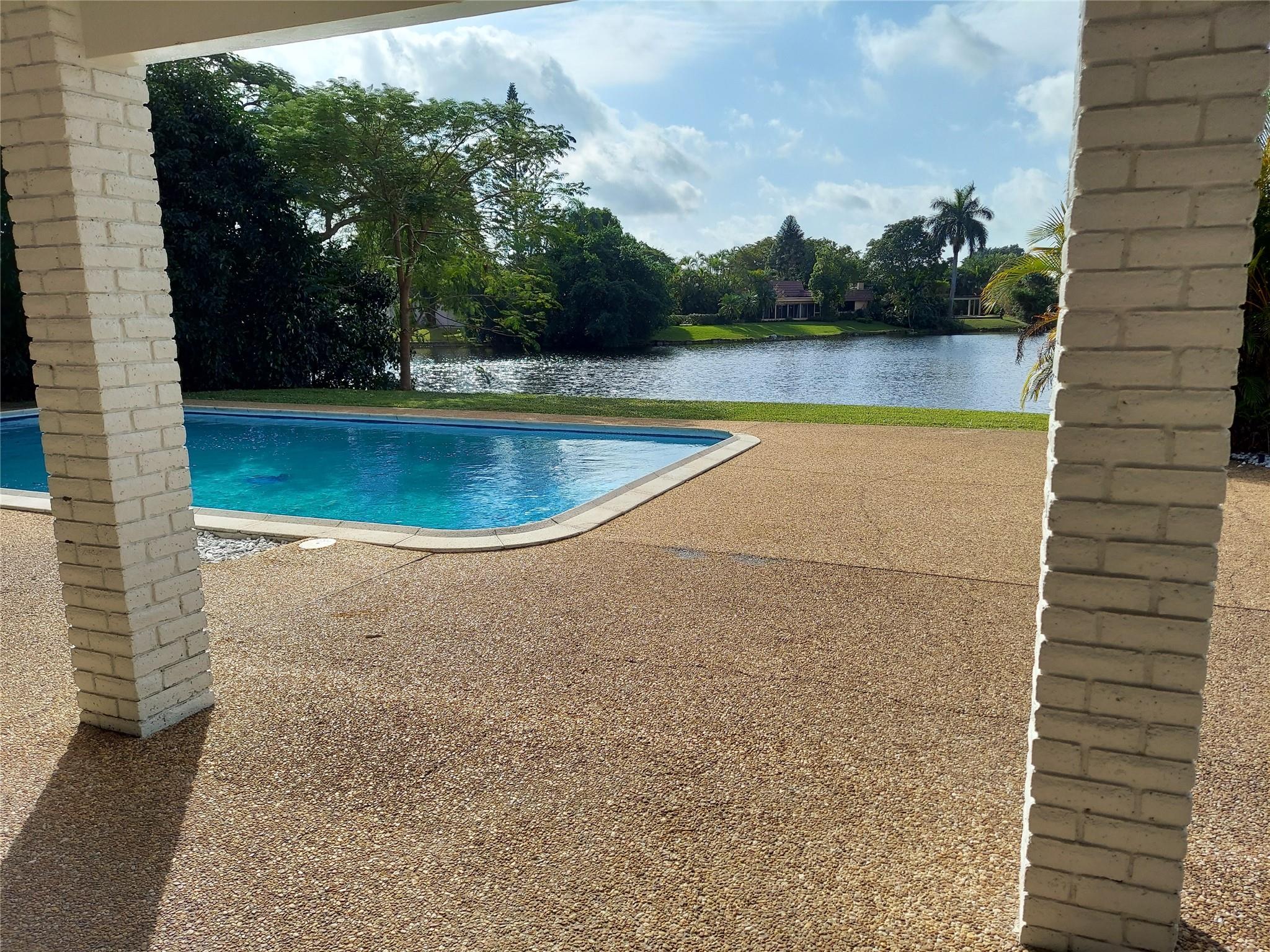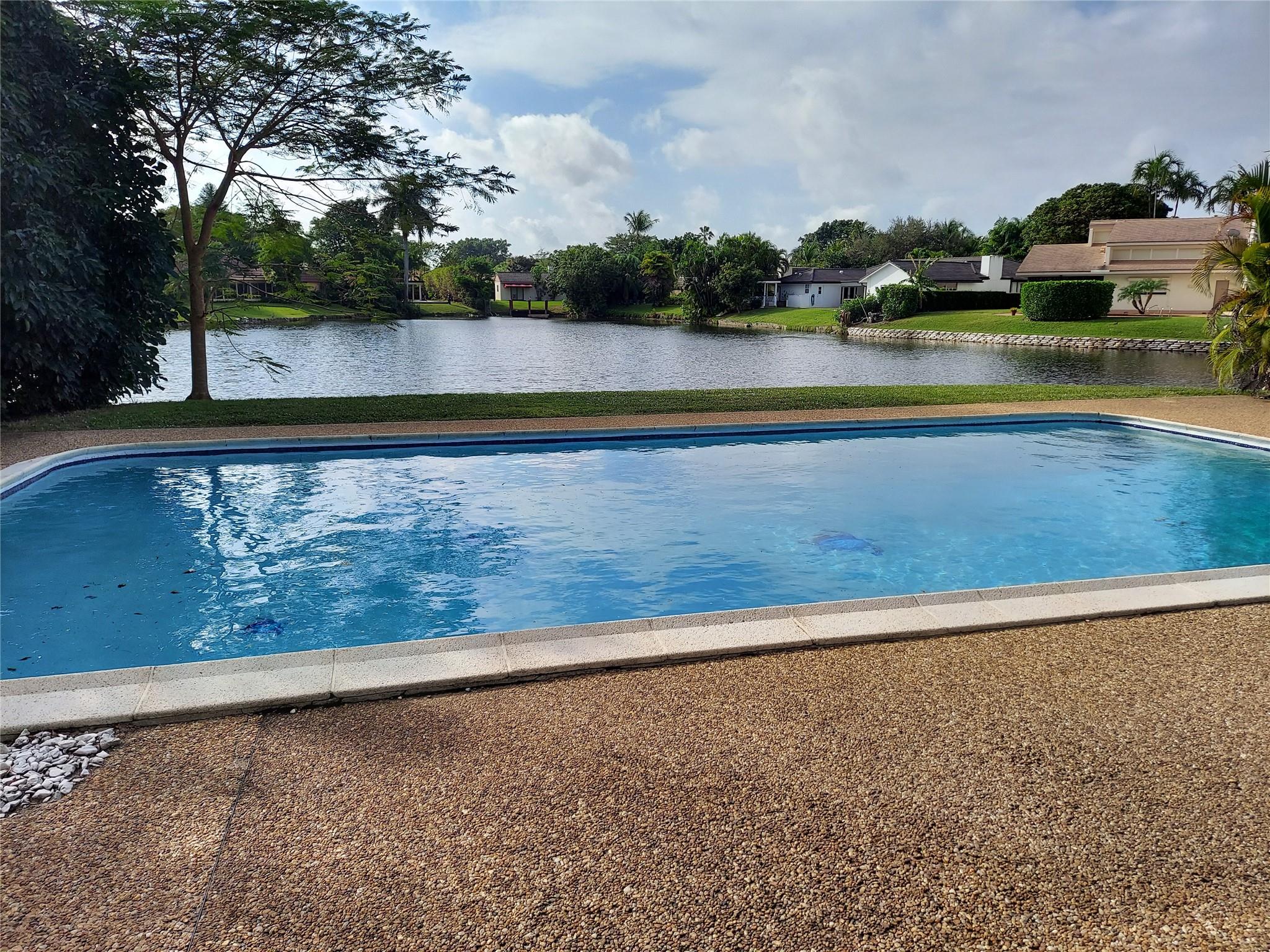WAKE UP TO A SPECTACULAR VIEW OF THE LAKE IN A 4 BEDROOM, 3 BATH SINGLE STORY HOME LOCATED IN JACARANDA COUNTRY CLUB, A GOLFER'S PARADISE. NO MANDATORY GOLF MEMBERSHIP. ANNUAL HOA IS UNDER $500/YEAR. OPEN FLOOR PLAN, 2 CAR GARAGE WITH A 2021 INSTALLED HURRICANE RATED DOOR, LARGE CIRCULAR DRIVEWAY, GATED BACKYARD WITH A FABULOUS POOL (DIAMOND BRITE AND TILED IN 2021) TWO 5 TON AC UNITS (REPLACED IN 2021) NEW KITCHEN CABINETS AND COUNTERS (JAN 2024), TWO WATER HEATERS REPLACED 2021. HURRICANE RATED 10' SLIDING DOORS AND KITCHEN WINDOWS OVERLOOKING THE LAKE (2021). WATERPROOF VINYL THROUGHOUT (INSTALLED IN 2021-2023)