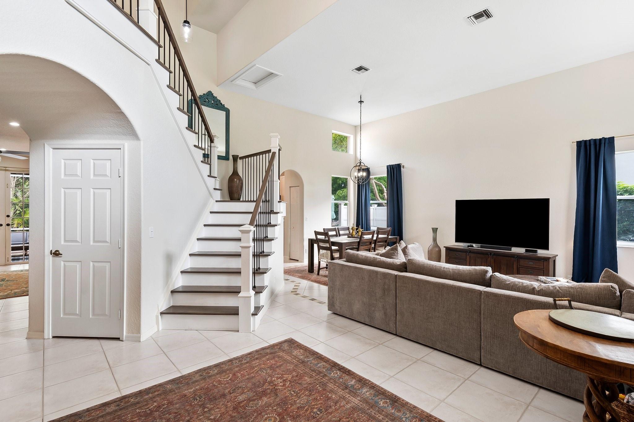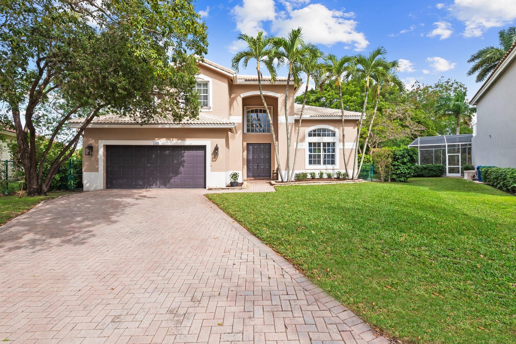 Luxurious 4/2.5 cul-de-sac pool home located in the desirable Coral Creek neighborhood! This 2,556 SQFT 2-story home features a large freeform pool w/ NEW travertine patio, pump, filtration system & timer. Fully fenced yard w/ newly installed Double Foxtails & Crape Myrtles, plus an updated irrigation system that pulls from the lake. Inside you will find volume ceilings up to 24 feet, new stairway railings, new hardwood flooring upstairs, recessed lighting & so much more! Massive primary bedroom located on first floor. Enjoy newer stainless-steel appliances and a recently installed washer & dryer. 2020 5-Ton RHEEM HVAC. This home has been fully repainted, inside & out. Generator tie-in added. Hurricane shutters available for all openings. Absolutely lovely in person. Must see to believe!