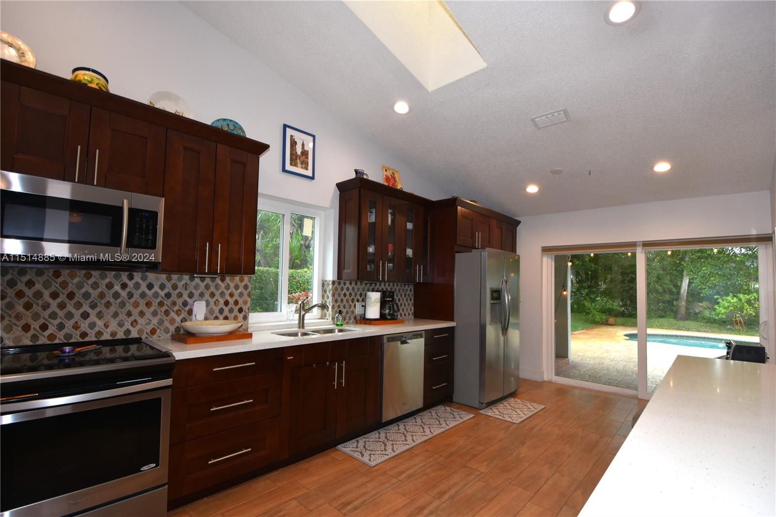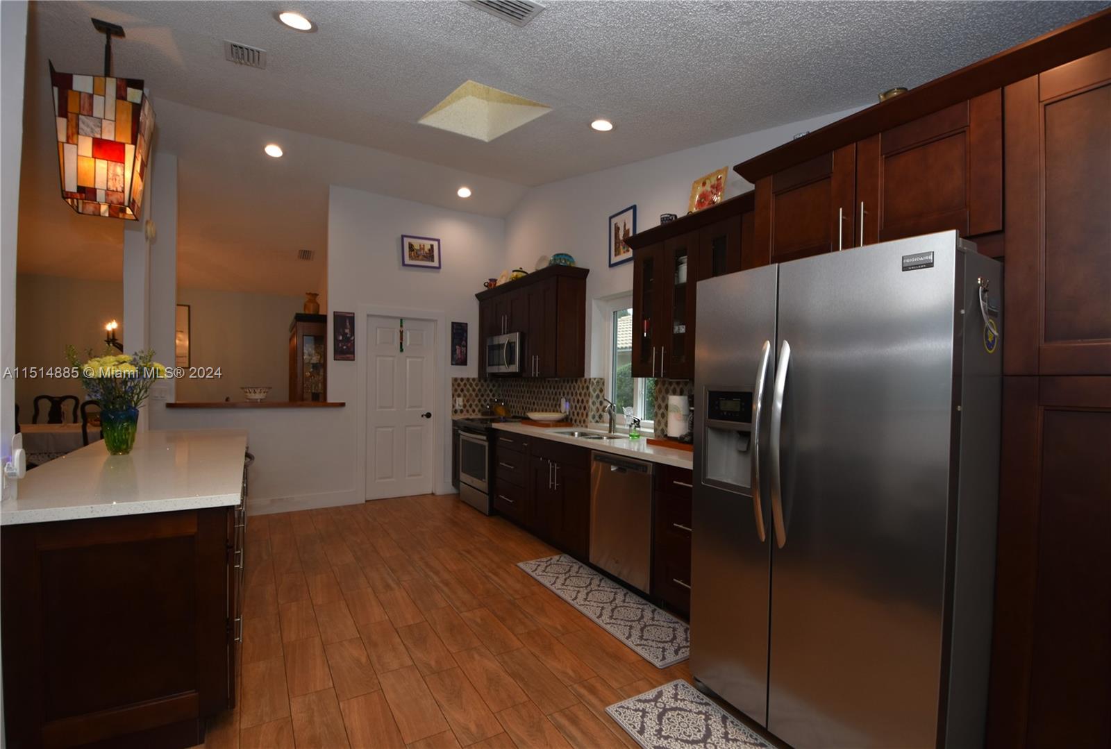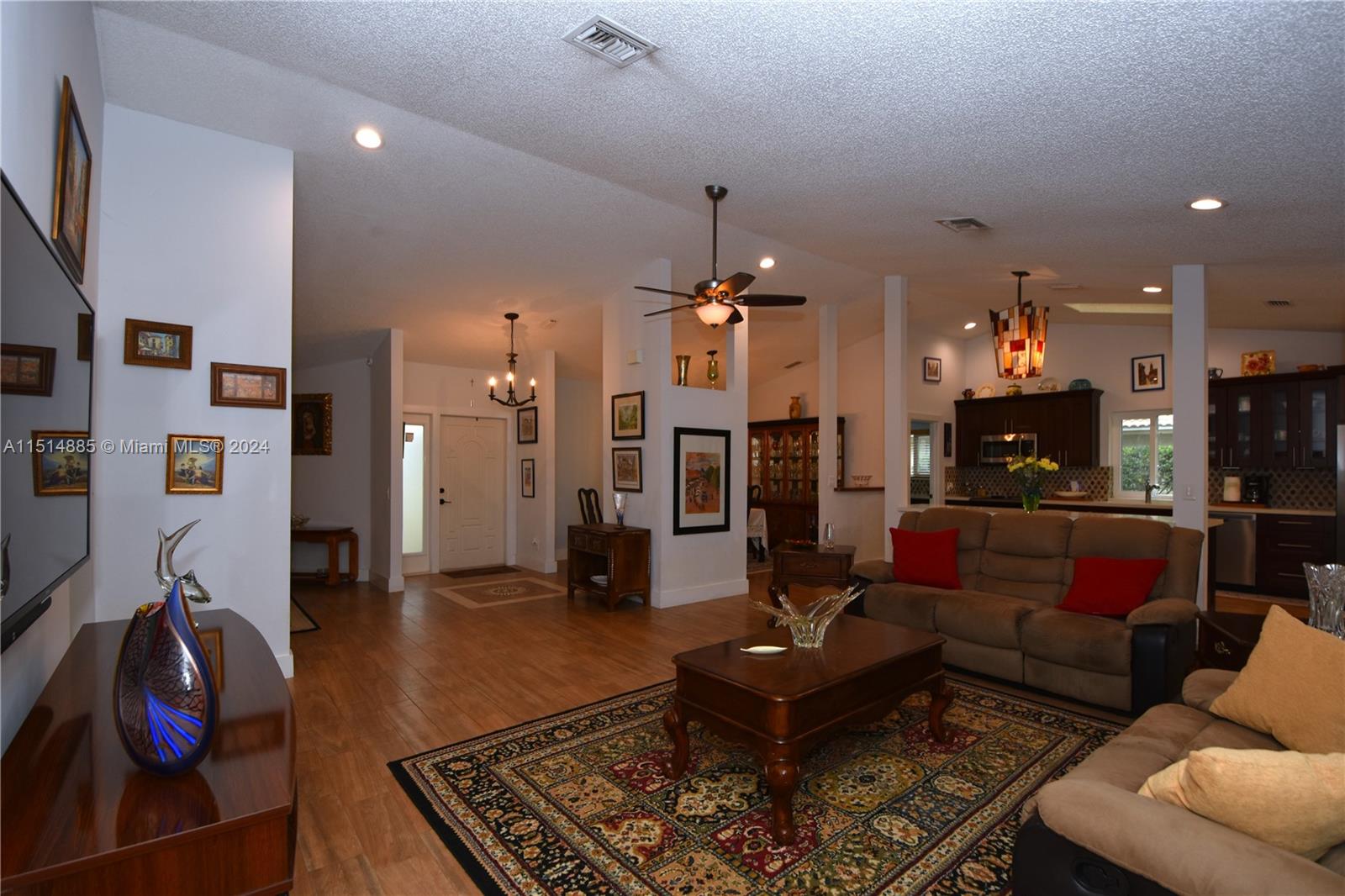 WOW FROM THE MINUTE YOU STEP INTO THIS GORGEOUS OPEN CONCEPT 4 BED, 2 BATH BEAUTIFULLY APPOINTED HOME IN CYPRESS LAKES. W/NEARLY 2700' TOTAL SQ FT THIS HOME FEATURES A CHEFS DREAM KIT W/SS APPL, ENORMOUS QUARTZ ISLAND W/MINI FRIG, CUSTOM WOOD CABINETRY. FORMAL DINING RM FOR LARGE FAMILY GATHERINGS, LIV RM W/TONS OF NATURAL LIGHT, FAMILY RM OPENING TO OUTSIDE PATIO/POOL AREA. MASTER SUITE W/SPACIOUS BEDRM, ADJOINING SITTING AREA/OFFICE, WALK IN CLOSET, MASTER BATH S/DUAL SINKS, WALK IN SHOWER, GRANITE COUNTERS, PRIVATE COURTYARD. TWO ADDTL BEDROOMS, LARGE REMODELED 2ND BATHROOM. TILE AND WOOD FLOORS. SIZEABLE LAUNDRY ROOM WITH SINK AND NEW WASHER/DRYER. ALL PLUMBING NEW THROUGHOUT HOME. 2 CG, CIRCLE DRIVEWAY, FENCED YARD, PATIO, LOW HOA – THERE IS NOTHING MISSING IN THIS HOME BUT YOU!!!