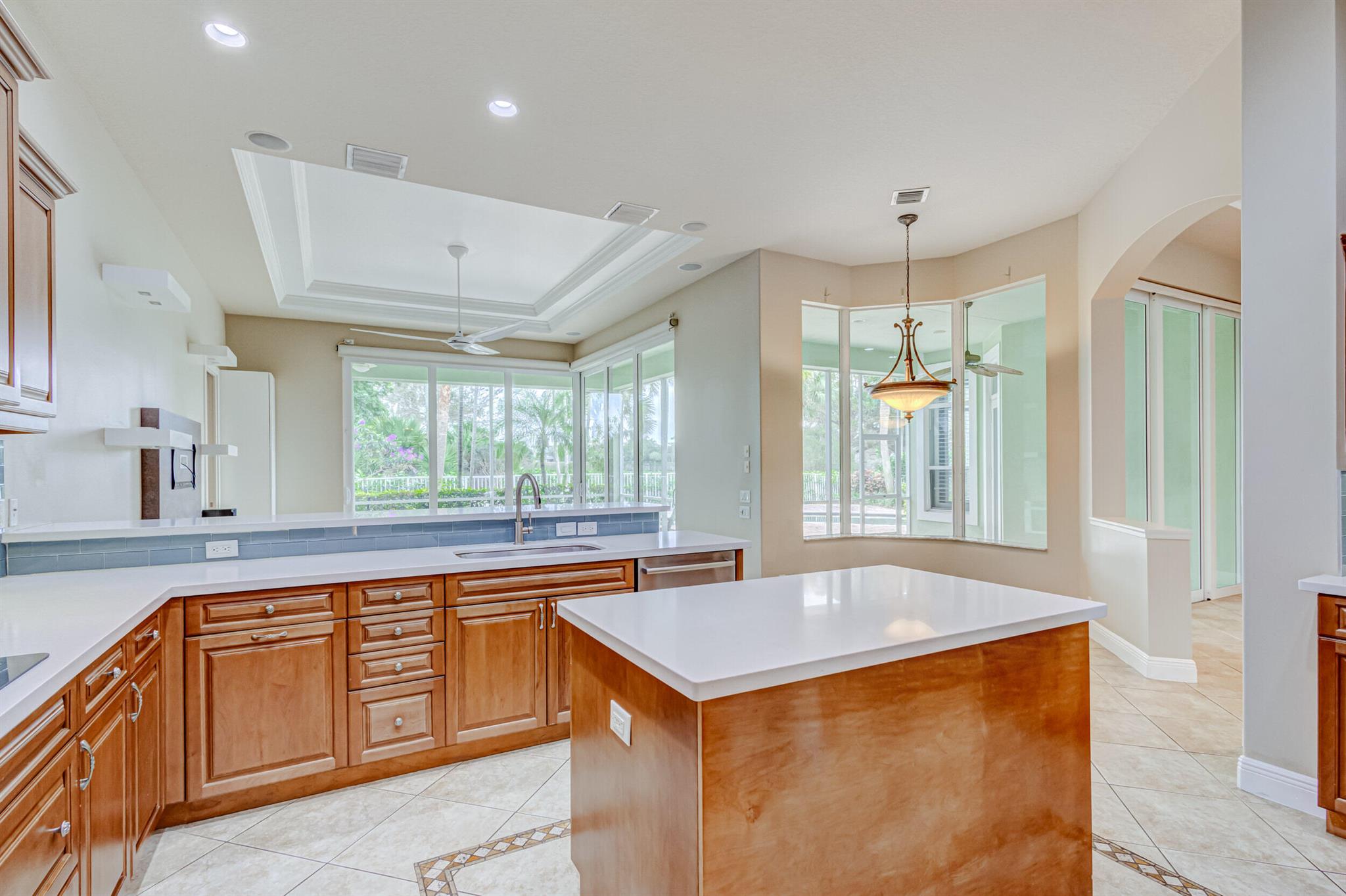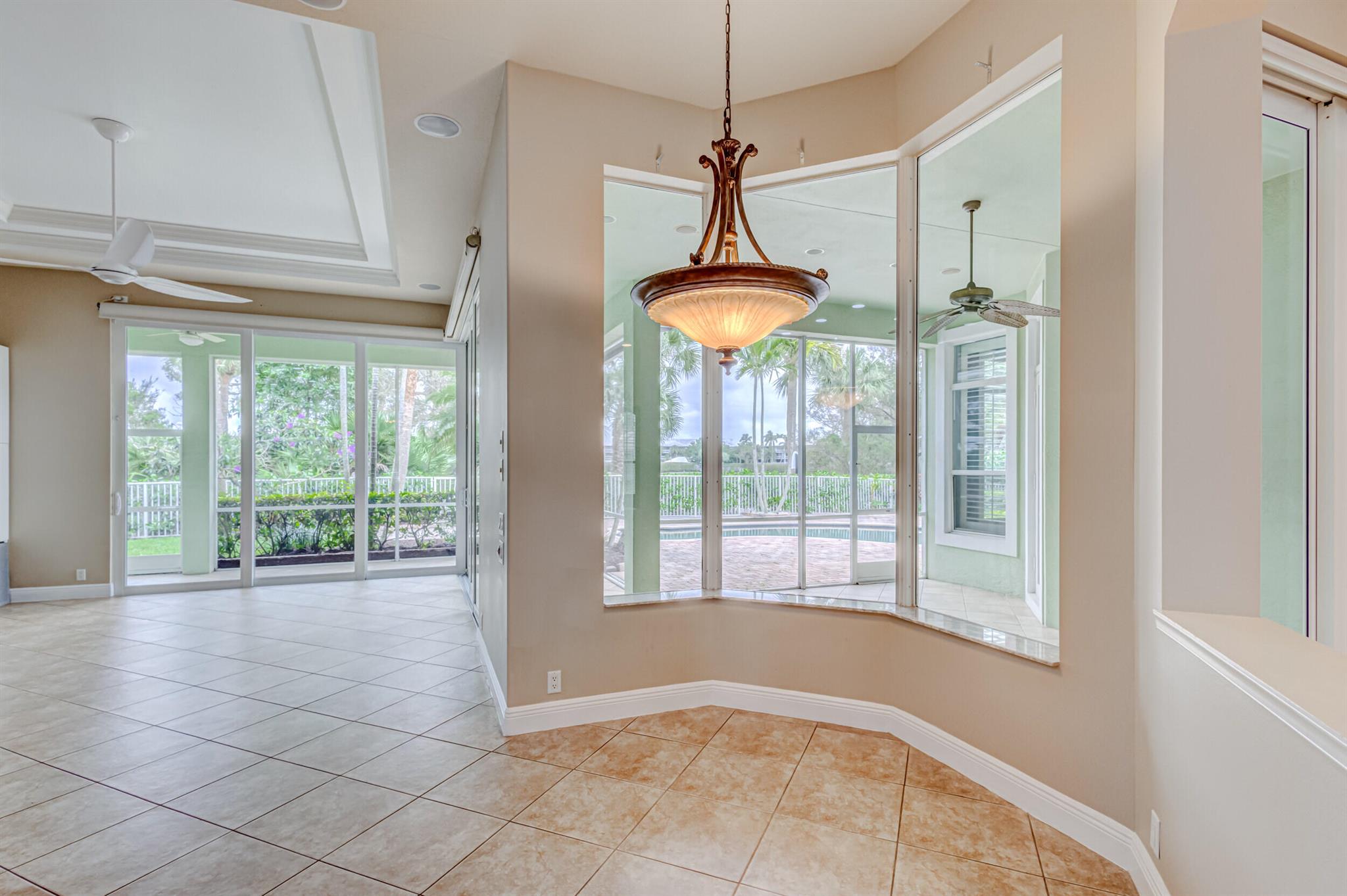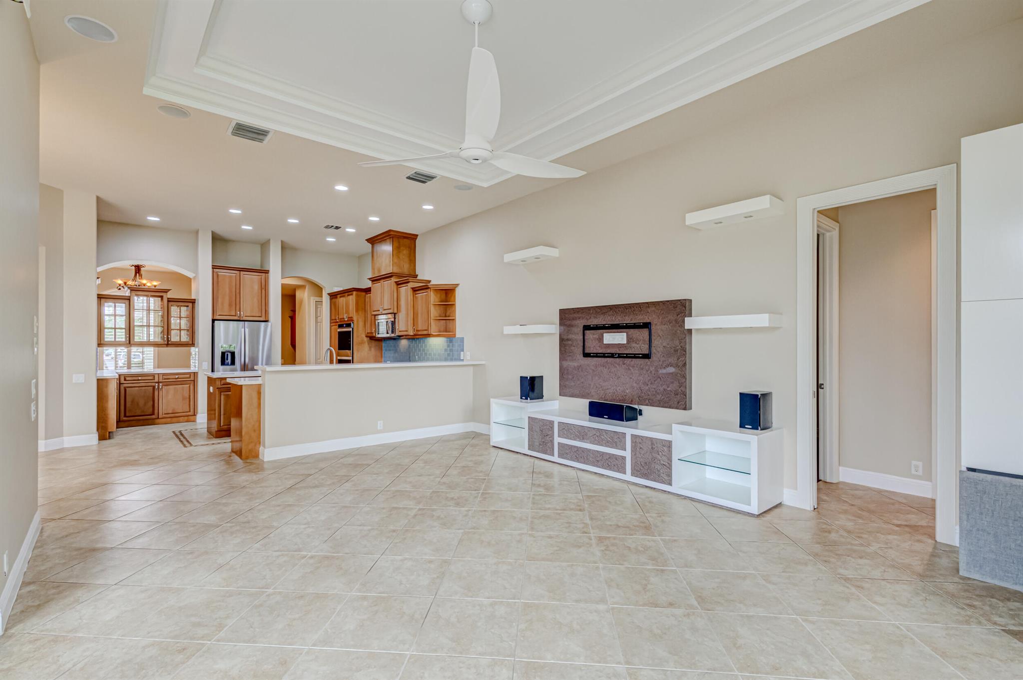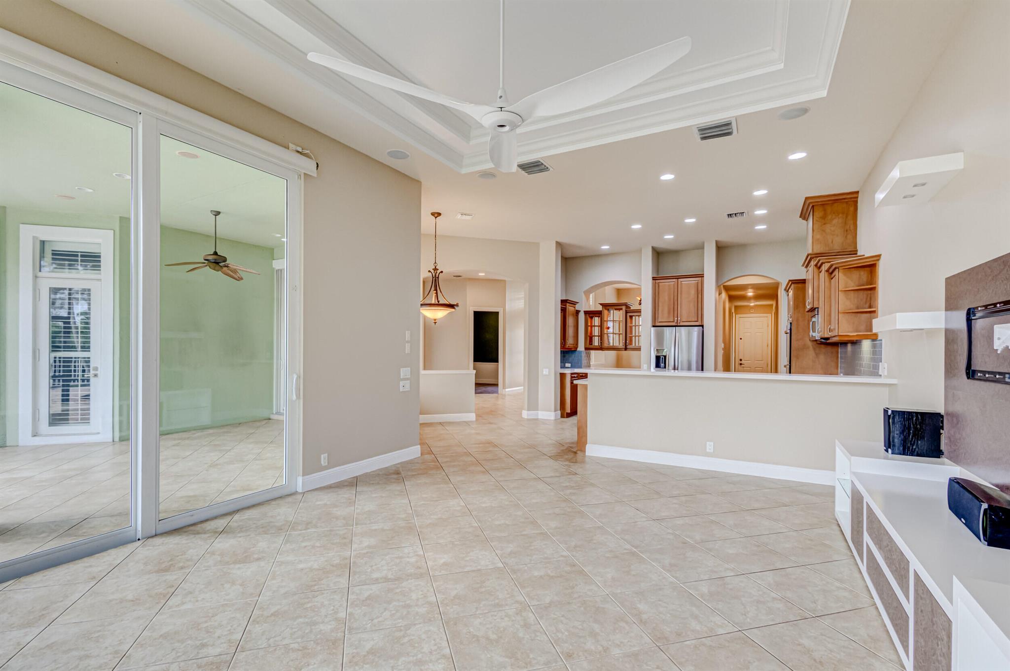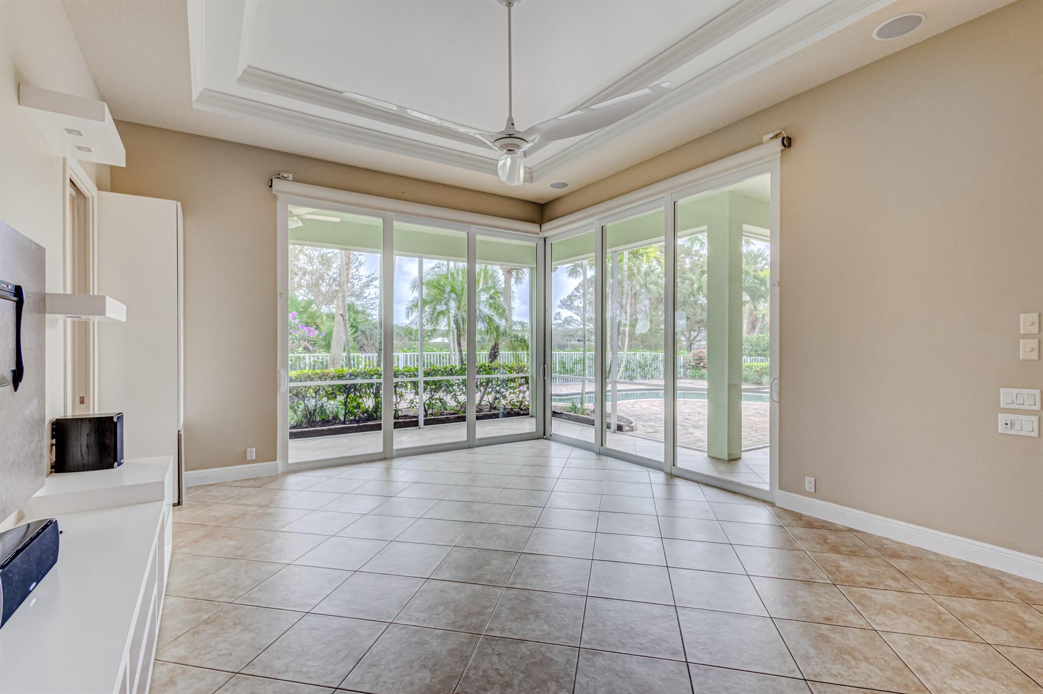 Impeccably maintained pool home features 4 Bedrooms + office, 3 baths, 3 car garage, oversized driveway, over 2,800 SF living area privately nestled on SENSATIONAL .36 ac golf course lot. This sprawling single story residence is fully fenced and surrounded by manicured landscaping, exterior lighting, covered and screened patio overlooking radiant pool, (2) brand new A/C systems, and all impact glass throughout. This beautiful home is awash with sunlight and natural hues, soaring ceilings, expansive living areas including formal dining and living rooms with custom ceiling detail, tile floors (no carpet!), Plantation shutters and LED lighting. Impressive gourmet kitchen equipped with an abundance of custom cabinetry, under cabinet lighting, Calcutta Quartz countertops with