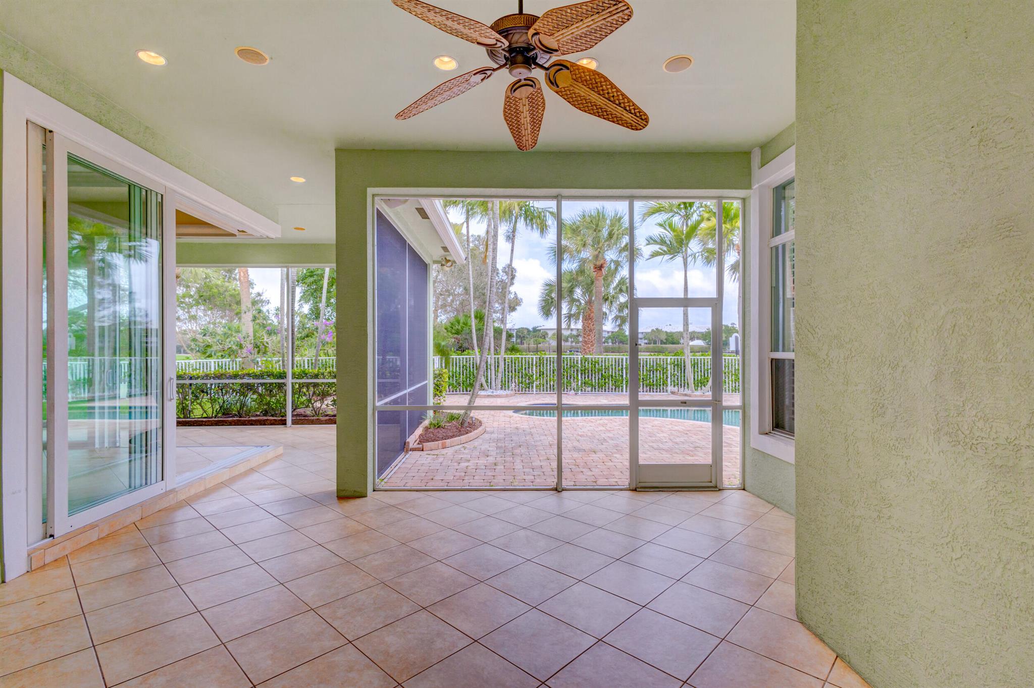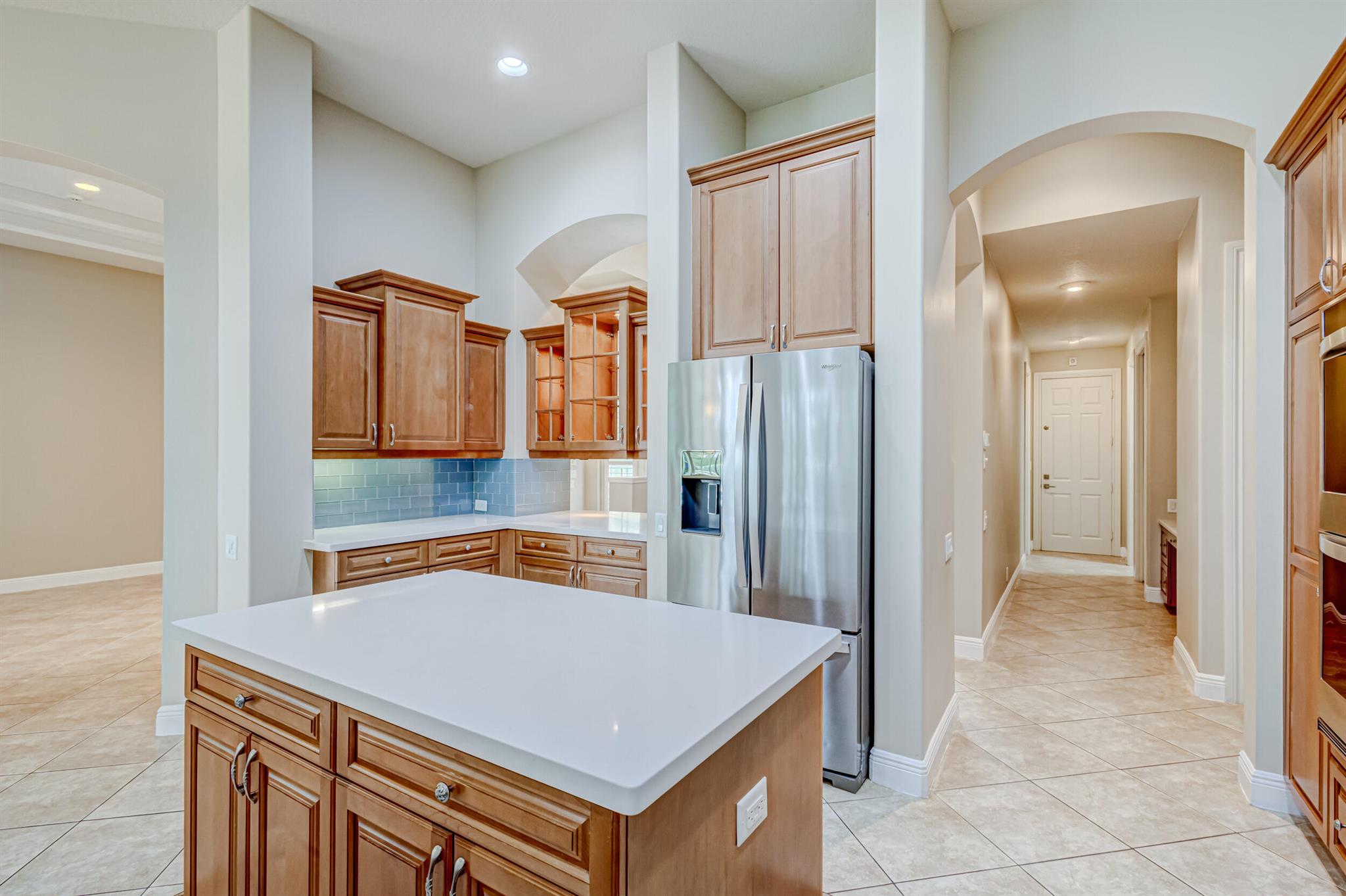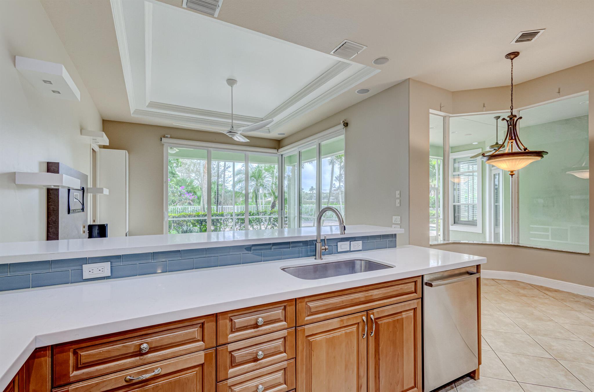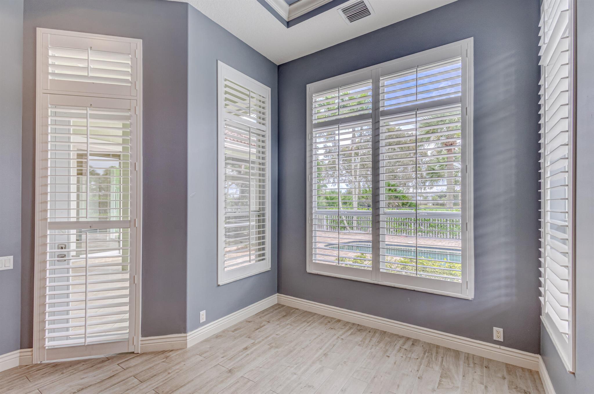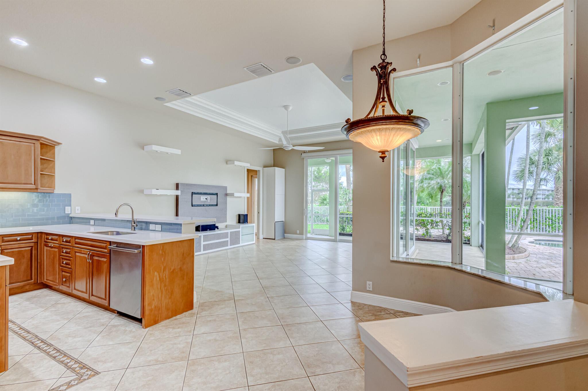 Impeccably maintained pool home features 4 Bedrooms + office, 3 baths, 3 car garage, oversized driveway, over 2,800 SF living area privately nestled on SENSATIONAL .36 ac golf course lot. This sprawling single story residence is fully fenced and surrounded by manicured landscaping, exterior lighting, covered and screened patio overlooking radiant pool, (2) brand new A/C systems, and all impact glass throughout. This beautiful home is awash with sunlight and natural hues, soaring ceilings, expansive living areas including formal dining and living rooms with custom ceiling detail, tile floors (no carpet!), Plantation shutters and LED lighting. Impressive gourmet kitchen equipped with an abundance of custom cabinetry, under cabinet lighting, Calcutta Quartz countertops with