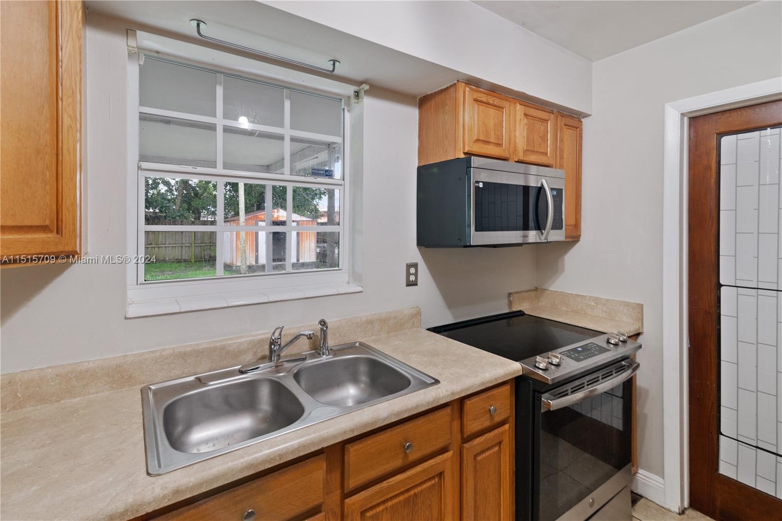 Charming 3 bedroom 2 bathroom home and the car garage was recently converted into a 1/1. Painted inside and out. Modernized bathroom! Beautiful neutral tile throughout. A generously-sized yard with ample space for a pool.Shingle roof, 3-zone sprinkler system; included washer and dryer. It has a covered patio with an aluminum cover and concrete deck and conveniently located west of University Drive with no HOA. This is an ideal home for first-time homebuyers!
