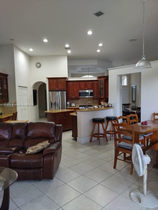 LOCATED IN PEMBROKE FALLS - THIS SINGLE STORY ELEGANT HOME HAS 4 BR, 3 BA, 1 DEN & 2 CAR GARAGE. THE HOME HAS UPDATED KITCHEN WITH GRANITE COUNTERTOPS, STAINLESS APPLIANCES & CUSTOM WOOD CABINETS. TILE FLOORING THROUGHT MOST OF THE HOME AND CARPET FLOORING IN 3 BEDROOMS. ADDITIONAL FEATURES INCLUDE HIGH CEILINGS, LARGE LIVING, DINING AND FAMILY ROOMS AND COVERED PATIO. MASTER BEDROOM FEATURES HIS & HERS WALK-IN CLOSETS, SPACIOUS MASTER BATHROOM WITH WHIRLPOOL JETTED TUB. LARGE FENCED YARD AND PATIO. HOA FEE INCLUDES INTERNET, CABLE, ALARM, 24 HR SECURITY NEW A/C UNIT INSTALLED NOV 2018. NEW CARPET IN 2 BEDROOMS. Clubhouse has heated pool, fitness center, banquet room, tennis courts. 4 guarded entrances.