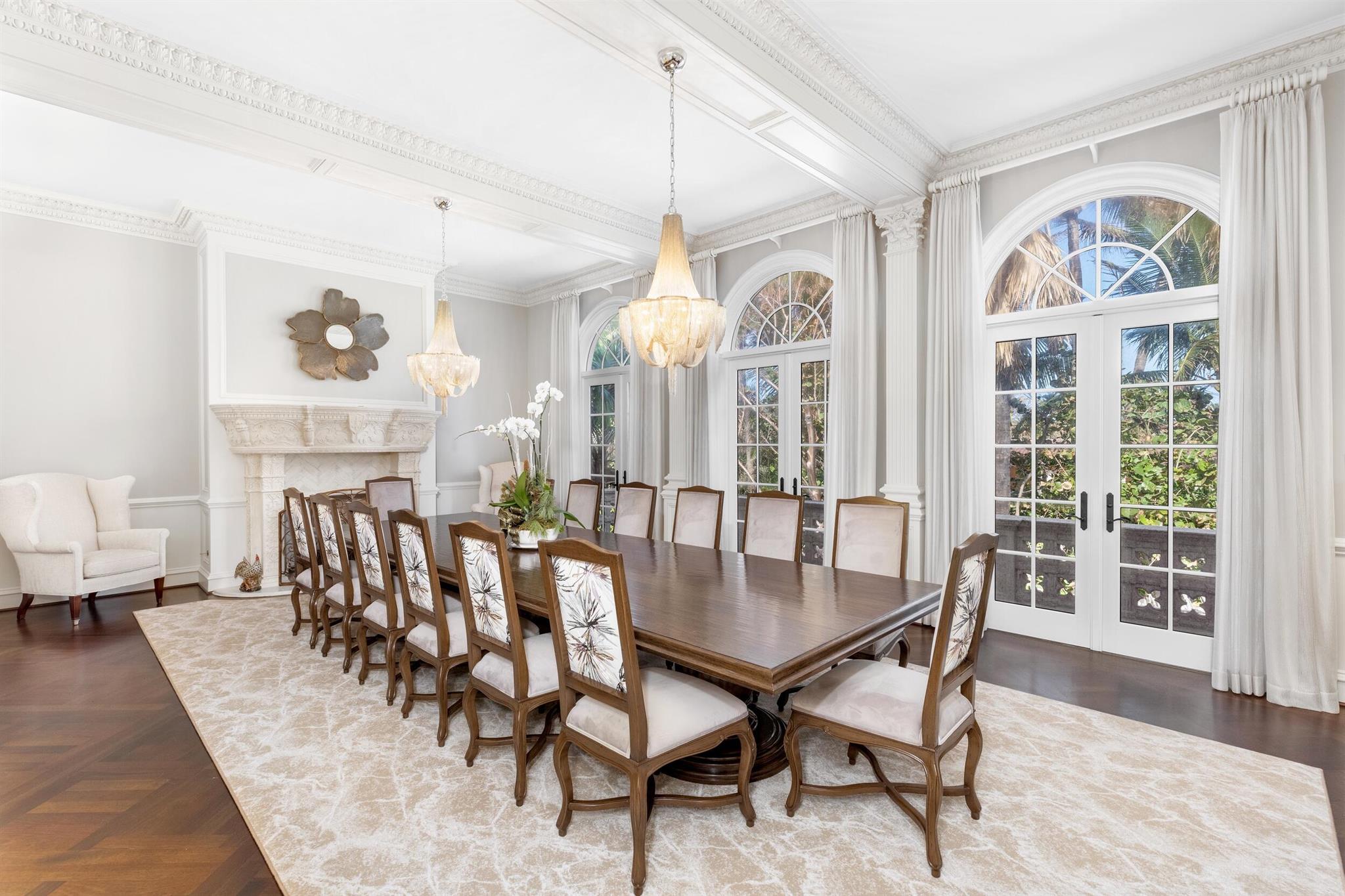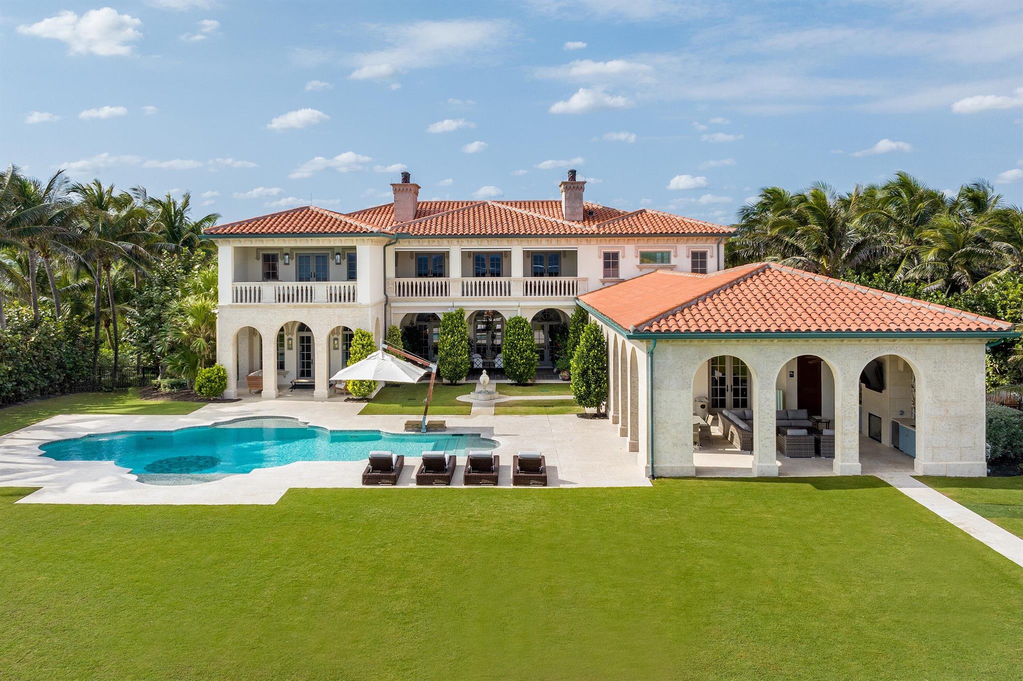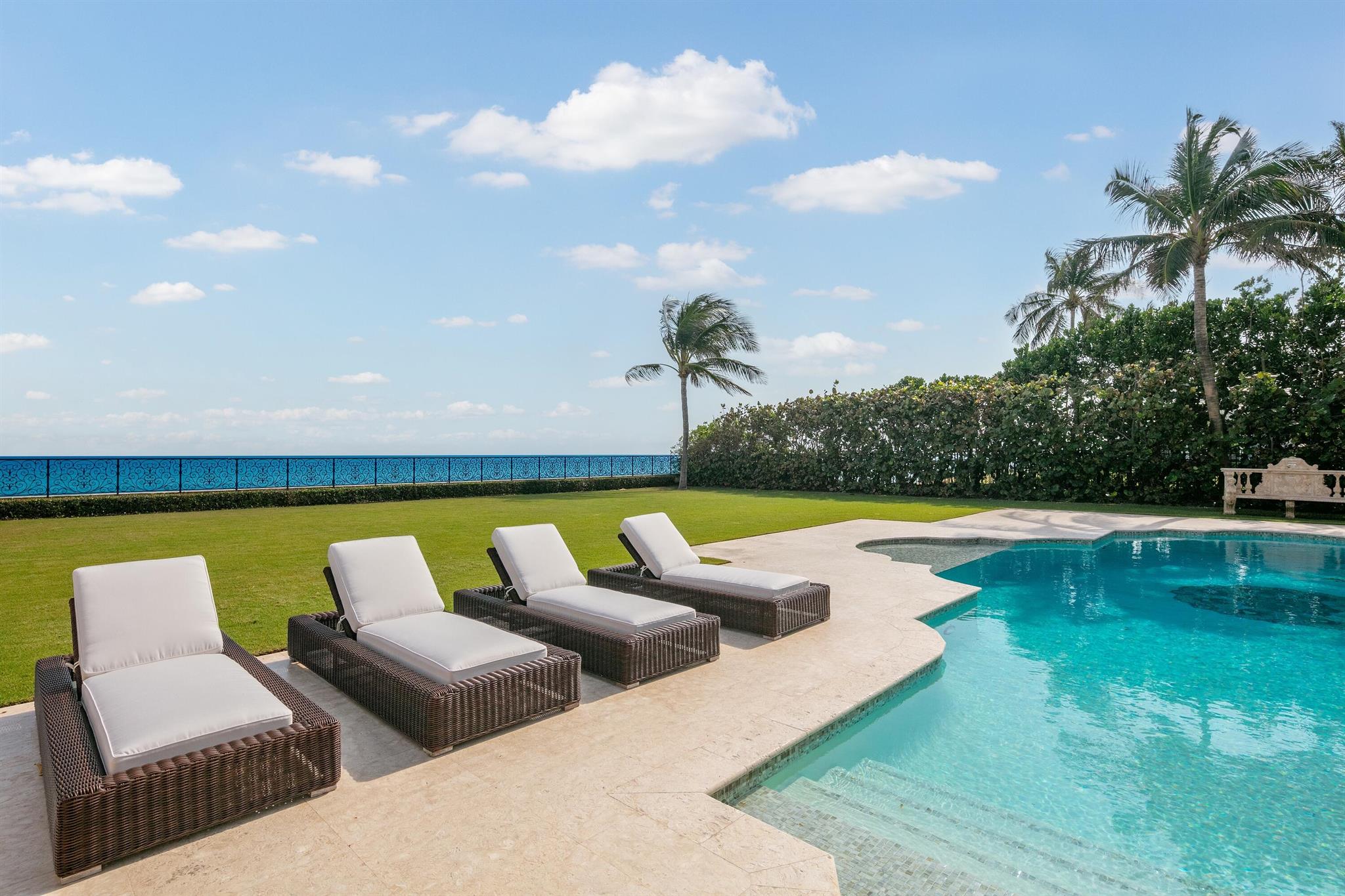 Spectacular Ocean-to-Lake Light and Bright Modern Mediterranean Compound with 9BR/11.3BA and 150 feet +/- of Ocean and Intracoastal frontage. This one-of-a-kind estate features rich details, intricate millwork, and sophisticated finishes. From spectacular reception to oversized living spaces and gorgeous formal dining room, this home is perfect for entertaining. Stunning wrought iron entryway opens to welcoming foyer with sweeping, detailed ceilings, beautiful imperial staircase, and crystal chandelier. Pristine estate with great natural sunlight throughout. Eat-in kitchen with island, china and silverware closet, and butler's pantry. Fabulous theater room connects to pub room with full bar. Paneled library with detailed fireplace. Expansive second floor primary wing with fireplace,