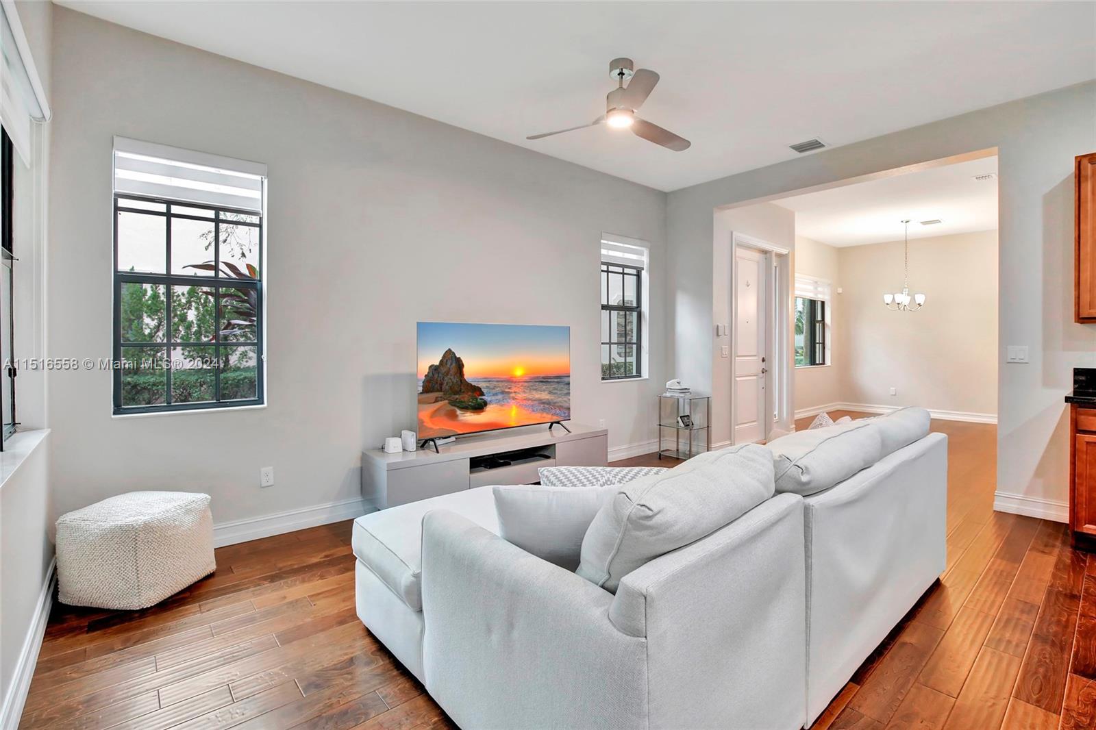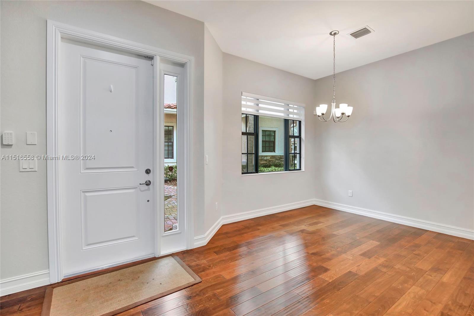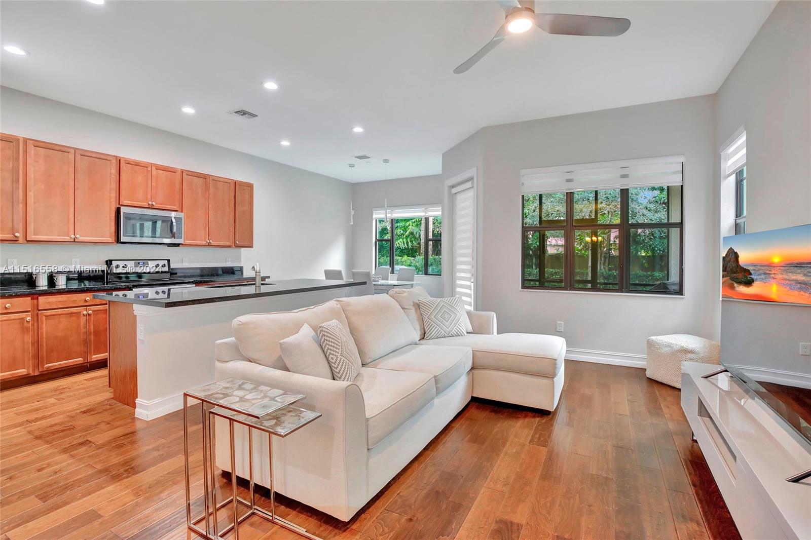 Built in 2017 this corner townhouse, in a sought-after gated community is just half a mile from the prestigious American Heritage School. Boasting 3 bedrooms, a spacious loft, and 2.5 bathrooms, real wood floors on the first floor. The primary bedroom is a retreat with two enormous walk-in closets, while the bathrooms feature dual sinks. The eat-in kitchen showcases real wood cabinets, granite counters, SS appliances, and a large walk-in pantry. Use the separate dining area for entertaining. Enjoy the serene green yard from the screened patio, with no rear neighbors. The home features a laundry room on the second level. Recent upgrades include a new water heater (12/2022) and a new AC motor (11/23). Generator Conveys.