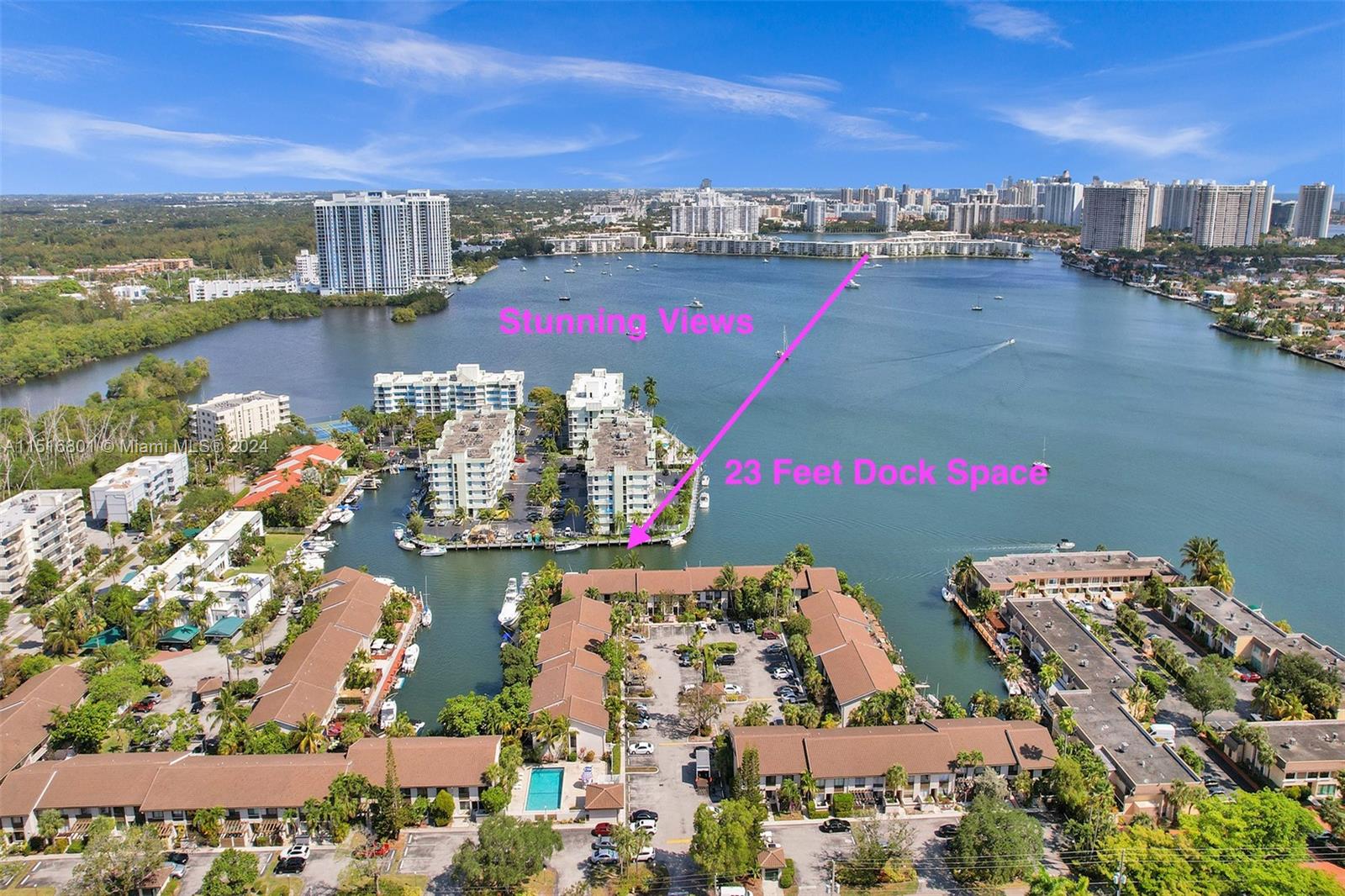 Stunning Waterfront townhome features 3 beds and 2 1/2 baths and 1600 sq feet. Located directly on the Intracoastal, this townhome boasts gorgeous views of the waterway that are sure to take your breath away. The serene ambiance of the waterfront can be enjoyed from inside of the home or outside on your private deck. One of the standout features is the private dock which can accommodate a boat of up to 23 feet. Ocean access and NO fixed bridges to the Ocean, this townhome is perfect for boating enthusiasts. Located in Eastern Shores - within a mile from shopping, dining & entertainment options. Across the street from Oleta Park. Experience waterfront living at its finest in this magnificent townhome! NOTE- community has reserves! Property is rented until June 2024 for $4200 per month.