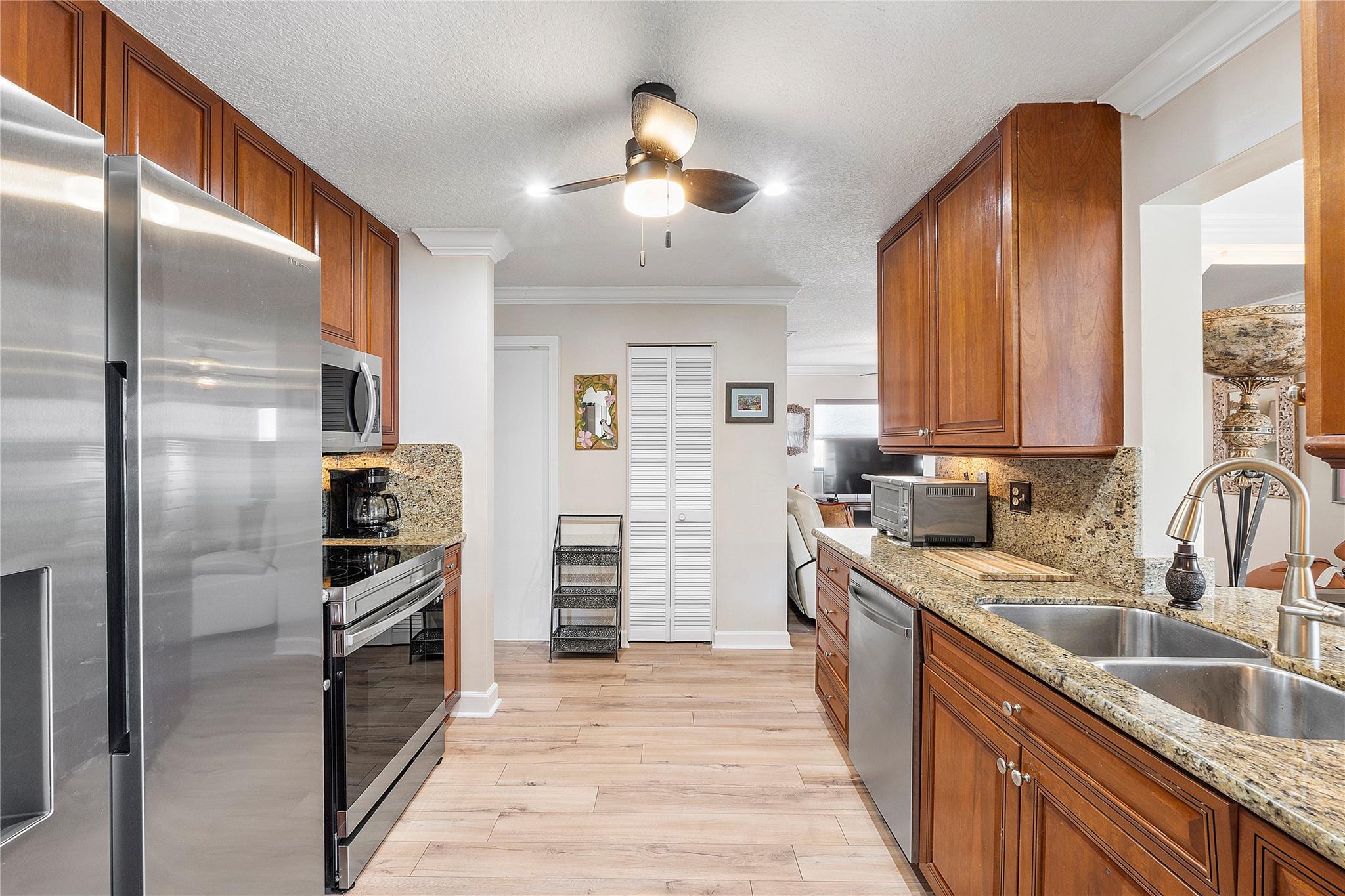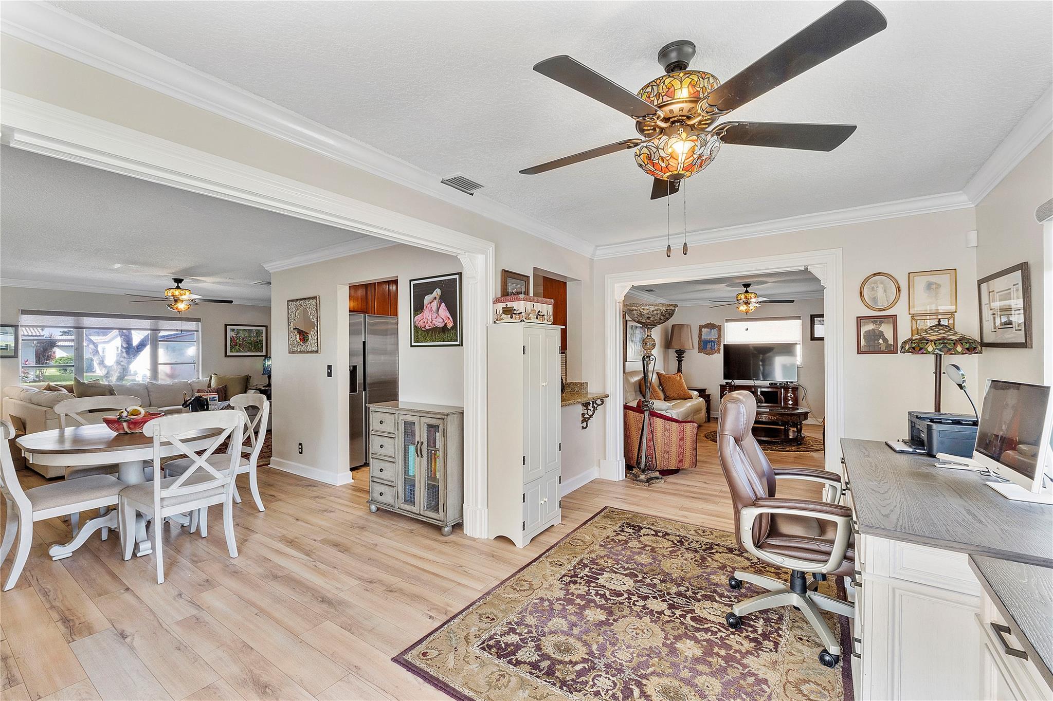 PRICED TO SELL! Spacious split 2 bedroom / 2 bathroom home with brand new flooring, new kitchen appliances and freshly painted. A/C was replaced this year and the electrical and roof were done in 2021. Updated kitchen/baths including the tile. You will love the natural light. Covered open patio in the rear of the house for your BBQ! Exterior recently painted. Accordion shutters & panels for front door. Full size washer/dryer in garage and added some additional storage/cabinets. Added a custom closet in the guest bedroom. Lauderdale West has tons of amenities incl. clubhouse, billiards, ping pong, crafts, live entertainment, 2 pools, tennis, gym & more! Maintenance incl. cable, internet, lawn, roof, ext. paint, busing -20% down, 720 credit score. Lauderdale West is an ADULT community.