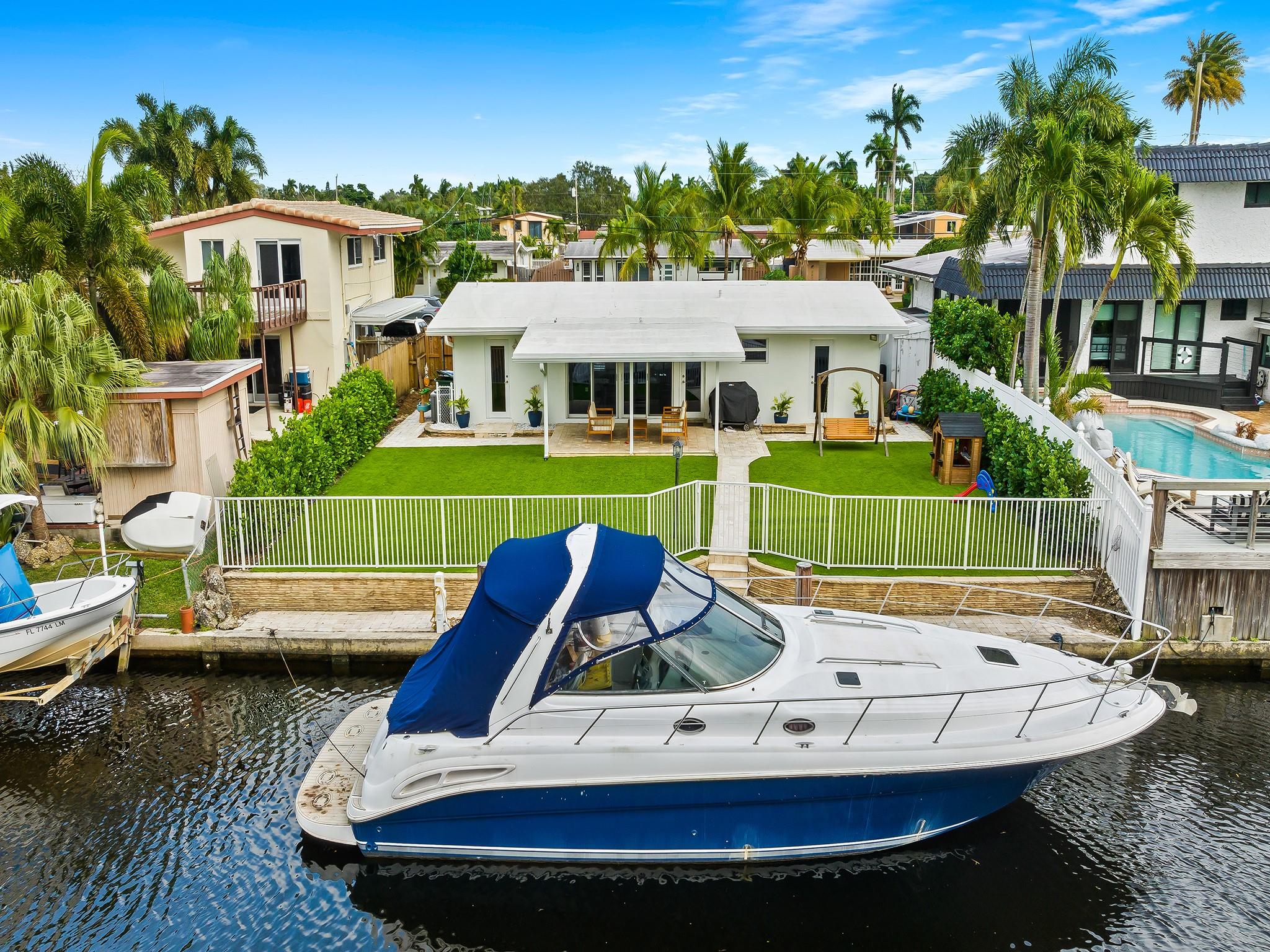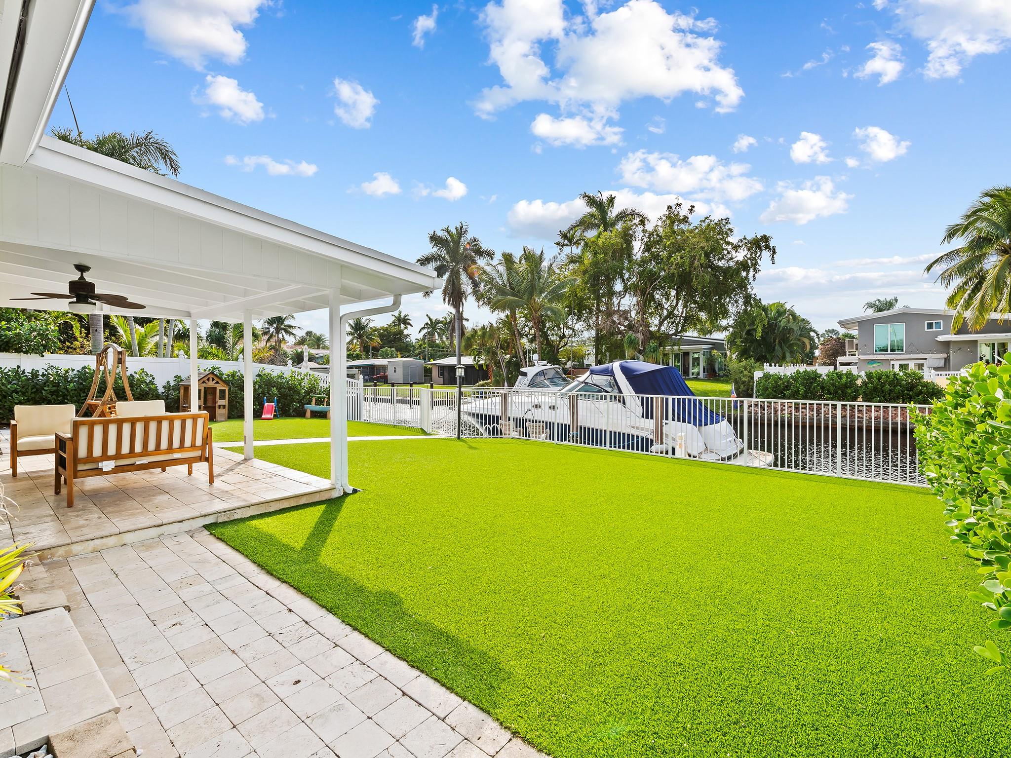 Waterfront home in Lauderdale Isles 2 BD | 2 BA | 70' of waterfront nestled in a great community in Fort Lauderdale. Open floor plan with Italian tile throughout the living and dining room. Enjoy entertaining and cooking in a newly 2023 renovated kitchen with new cabinets, quartz countertops and appliances. Relish in the maintenance free backyard with artificial grass. If you are a boater there is nothing better than getting straight on your boat from your own backyard and having direct access to the ocean for some fun on the water. Cherish the afternoons with views of the sun setting where the skies light up with spectacular colors. Avoid the sun and rain with your covered parking. New AC installed in 2021. Impact windows/doors No fixed bridges/Ocean Access/Deep Canals