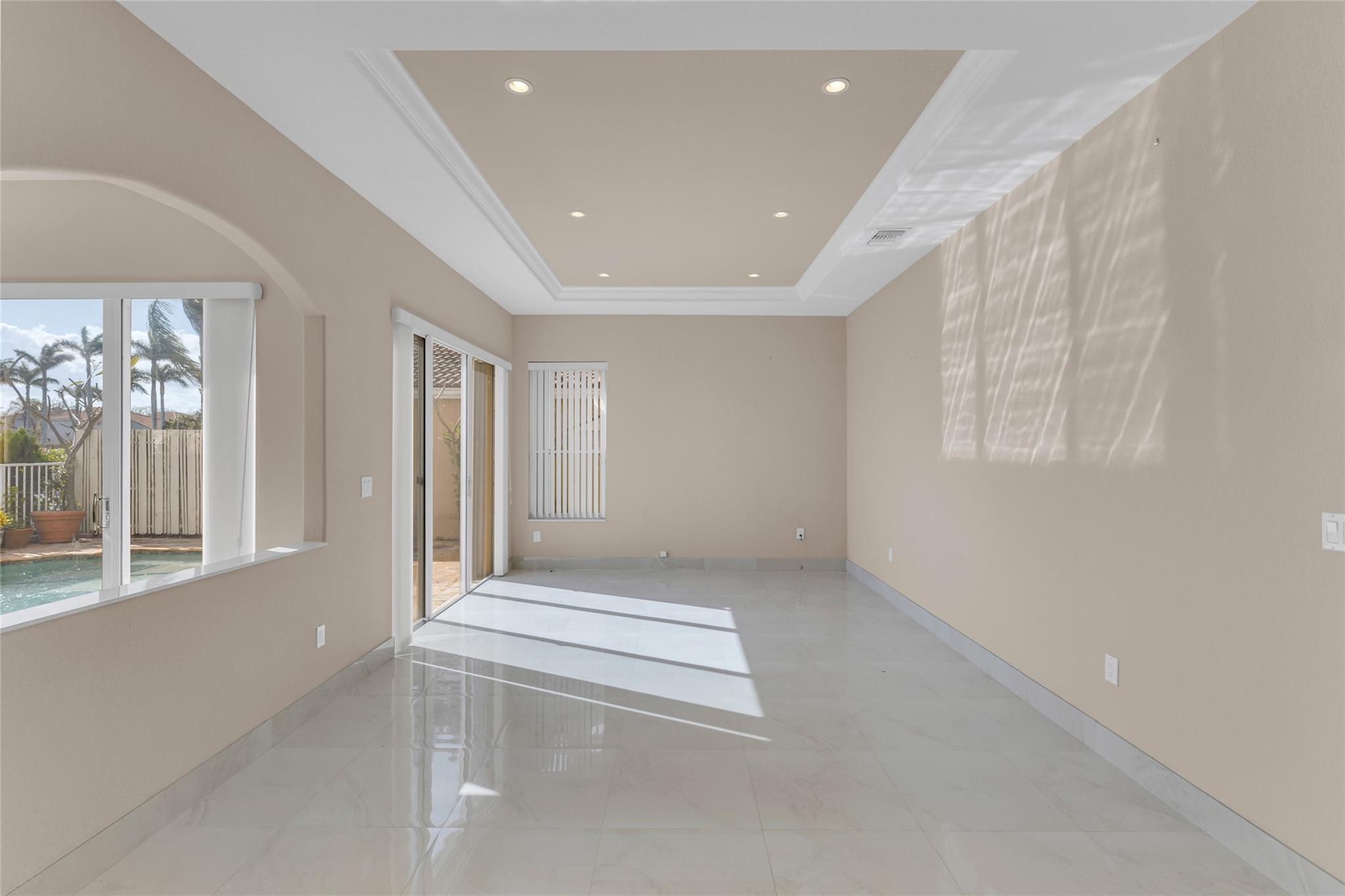 Enjoy sophisticated living in 4 Bedroom-2.5 Bath Boticelli Estate waterfront home in the beautiful community of West Lake Village. Largest pool home in West Lake with 3000 sq. feet of living area. Open concept with beautiful water views from the kitchen, family room, living area & the gym/office. Spacious room connected to the master suite can be enjoyed as a meditation room, office, reading room etc. Master Bath with oversized shower along with a relaxing soaking tub. Bonus room upstairs offers additional living space for a gym, play room, family room etc.. Intercom system throughout. Exterior cameras with DVR included. 24 manned gate Offering tennis, pickleball, play area & gym. Conveniently located within walking distance to Hollywood Beach. Minutes to Hollywood/Ft. Laud. Airport.