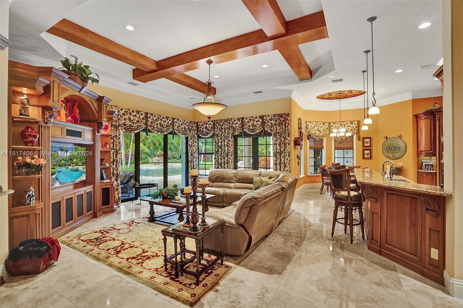 Immerse yourself in the epitome of luxury with this exquisite Italian villa. This home offers an abundance of space and opulence. Wine enthusiasts will appreciate the sophisticated wine cellar, Office/library, offering a serene ambiance for reading, reflection, or work. The elegant pool area, and stocked bar is perfect for hosting gatherings and enjoying drinks with loved ones. state-of-the-art theater room, where you can enjoy your favorite movies in the comfort of your own home. In summary, this Italian villa offers a luxurious and elegant living experience. With its 6 bedrooms, 6 1/2 baths, elegant pool, three-car garage, game room, bar, theater, wine cellar, library, and manicured landscape, it presents an unparalleled opportunity to embrace the pinnacle of luxury living