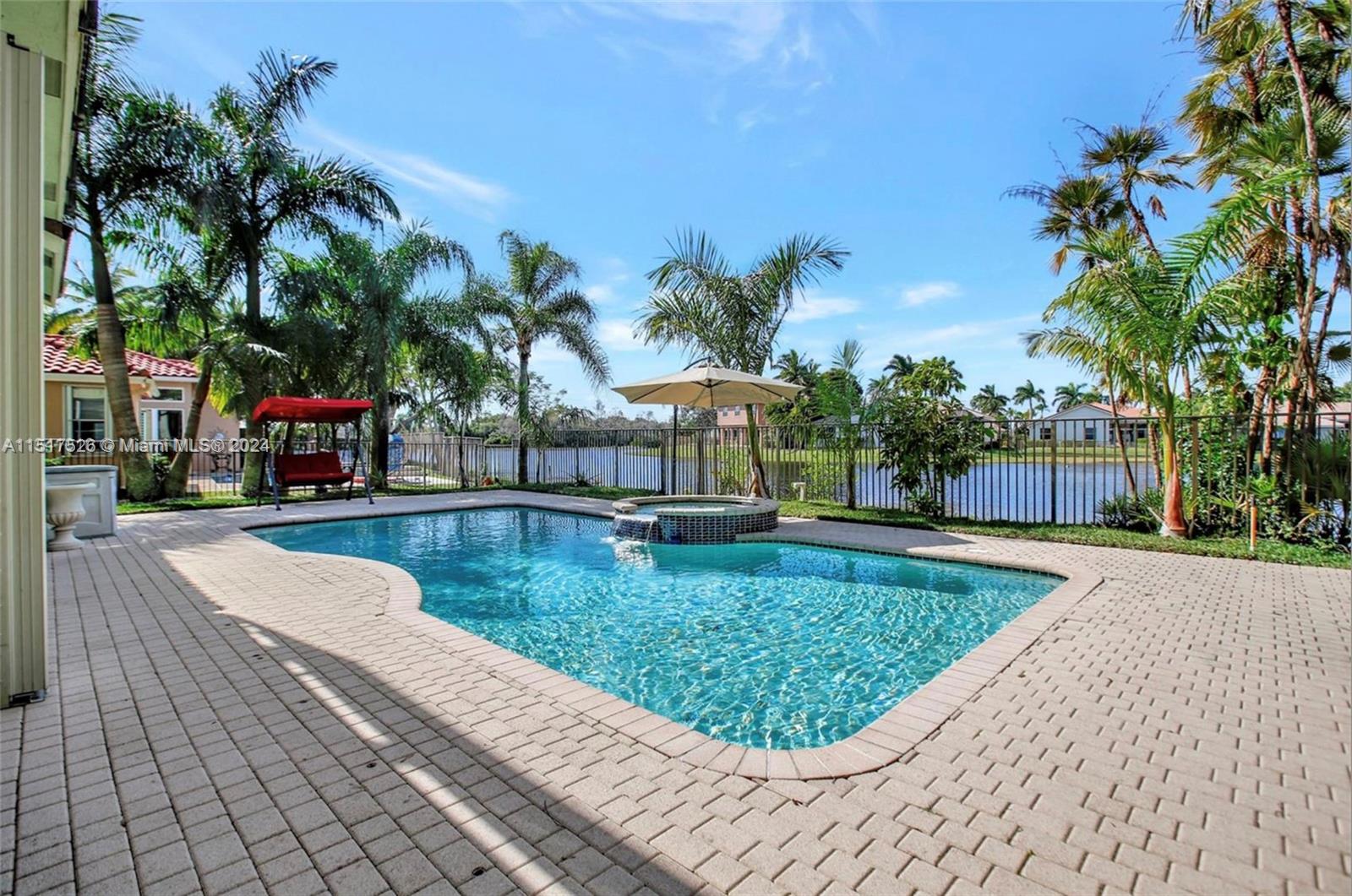 Waterfront / Pool Home in Exclusive Weston Hills Country Club. There are 5 bedrooms and 4 bathrooms (including the master bedroom on the 2nd floor). Offers incredible views from master balcony 2nd floor. .Spacious living room and family room, with kitchen island, breakfast area and dining area. Full cabana bath along with an office, and an additional bedroom on the first floor. Perfectly well maintained with an 3 car garage, Access to excellent A-rated public & private schools. Don't miss out on this magnificent home.