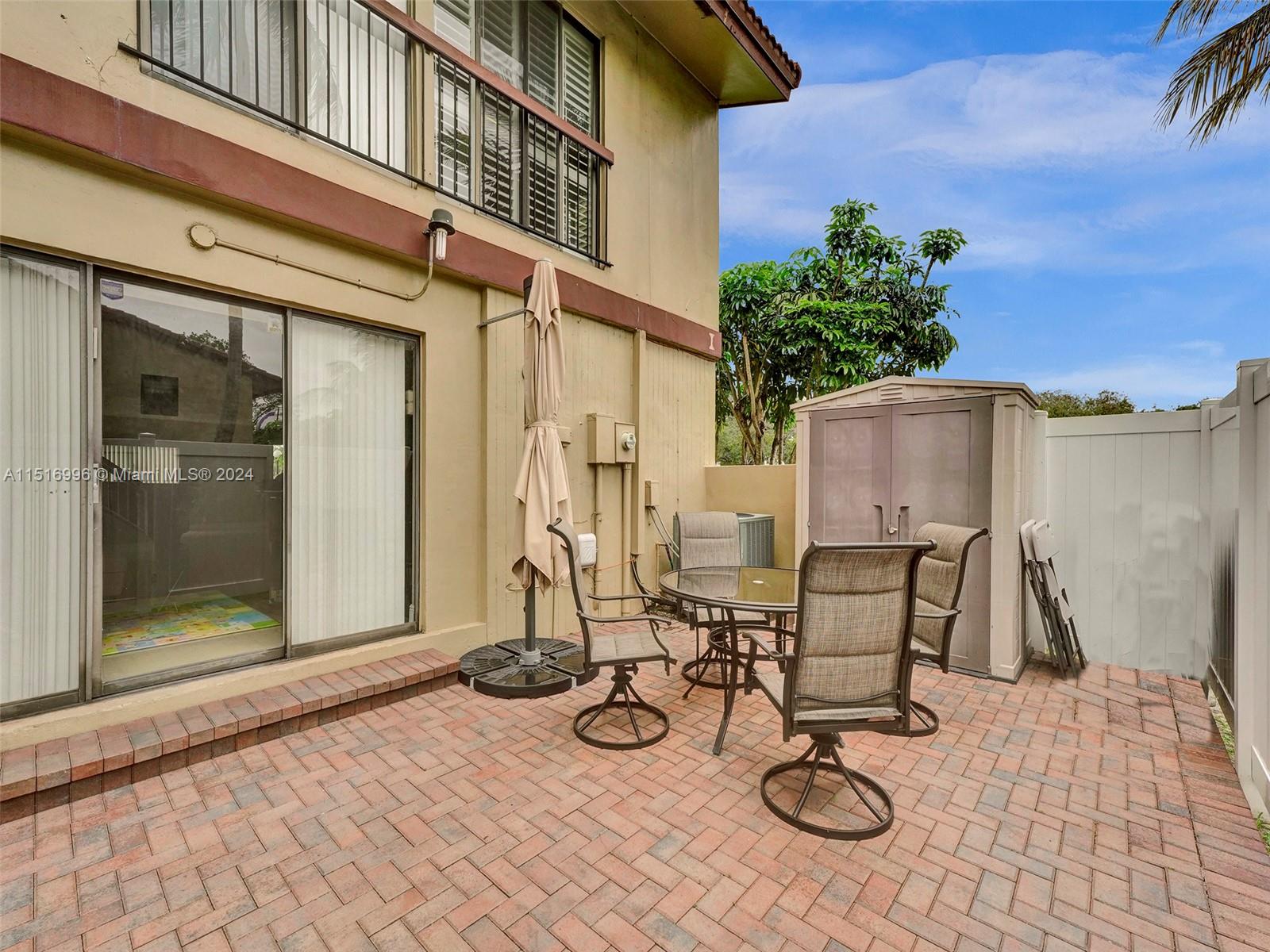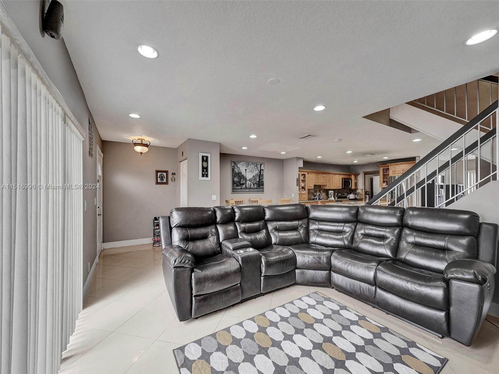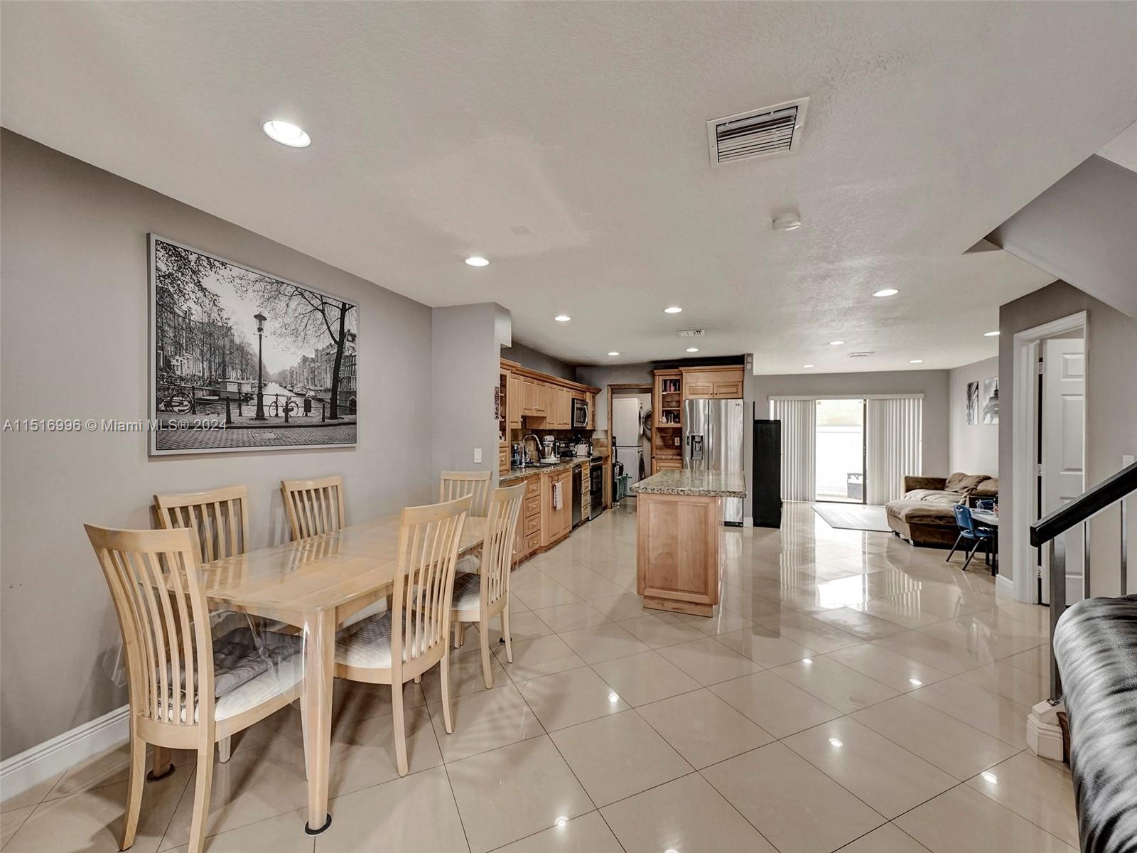 Spacious four-bedroom, corner unit town home in the heart of Hollywood Hills. First floor offers large open floor plan w/porcelain tile throughout. A spacious kitchen contains wood cabinets w/ample storage, granite countertops, a sizable island with seating, & stainless steel appliances. Beyond the kitchen sits a sizable walk-in laundry/utility room. The home also boasts a formal living room & extra-large family room. Outside, 2 patios, provide additional outdoor living space. Back patio opens to common area yard via high privacy fence w/ gate access. Upstairs, has multiple closets for ample storage, a generously proportioned master bedroom w/ upgraded ensuite bathroom & plantation shutters. This home has wonderful natural light and is ready for your family! Shops & restaurants nearby.