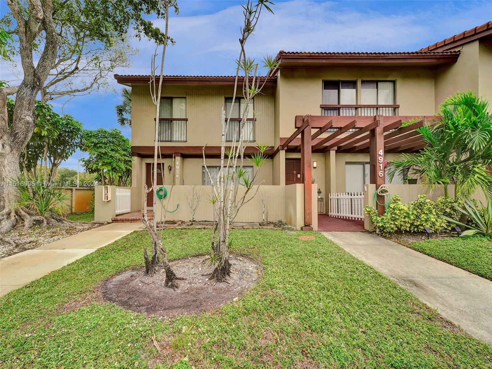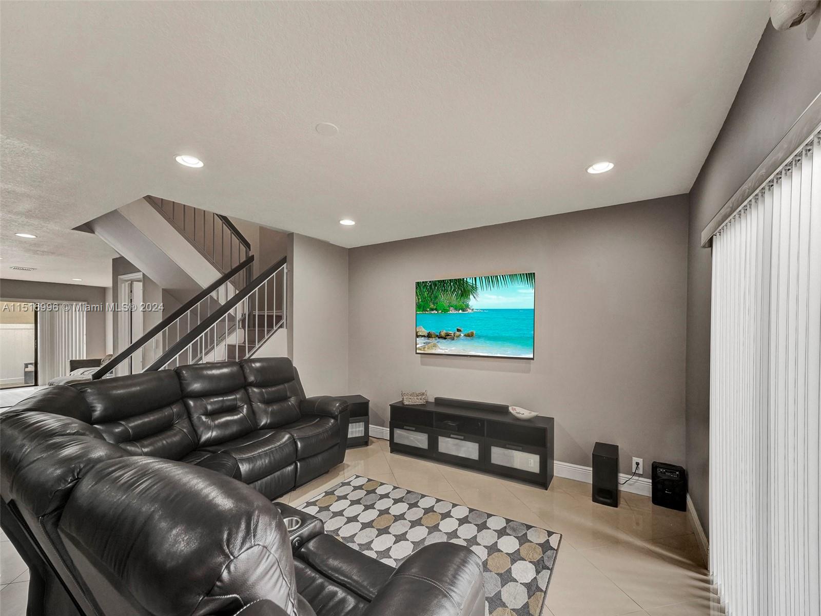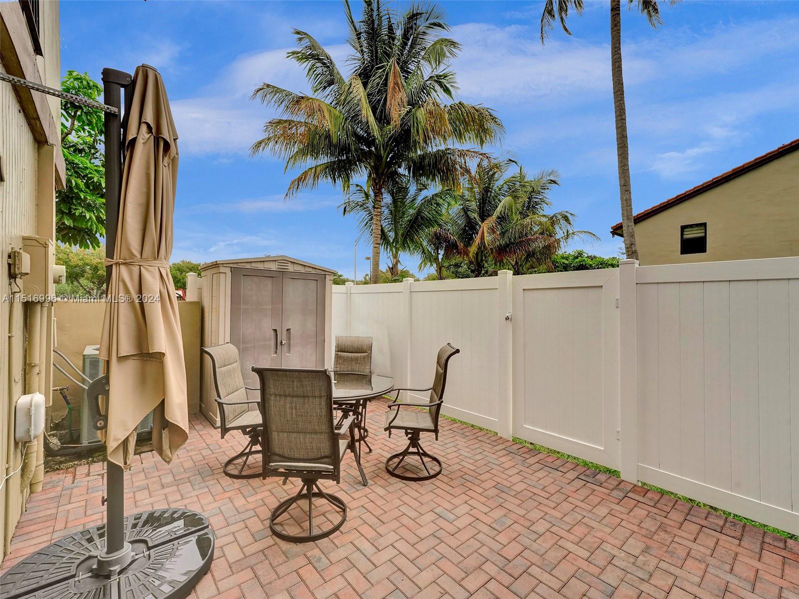 Spacious four-bedroom, corner unit town home in the heart of Hollywood Hills. First floor offers large open floor plan w/porcelain tile throughout. A spacious kitchen contains wood cabinets w/ample storage, granite countertops, a sizable island with seating, & stainless steel appliances. Beyond the kitchen sits a sizable walk-in laundry/utility room. The home also boasts a formal living room & extra-large family room. Outside, 2 patios, provide additional outdoor living space. Back patio opens to common area yard via high privacy fence w/ gate access. Upstairs, has multiple closets for ample storage, a generously proportioned master bedroom w/ upgraded ensuite bathroom & plantation shutters. This home has wonderful natural light and is ready for your family! Shops & restaurants nearby.
