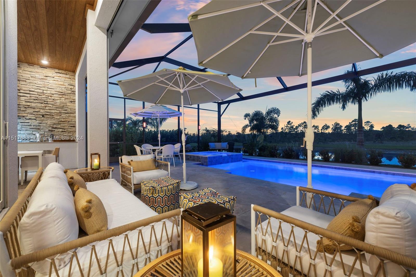 Professionally curated masterpiece of design, exudes sophistication & is magazine ready. This 4 bedroom 3-1/2 bath 3 car garage, pool residence has over 3100 sq.ft. by the "Signature Collection of WCI Estate Residences", located at Wildblue's 800 acre Lakefront Community, which is simply incomparable, Open floor plan with high volume vaulted ceilings, Gourmet Kitchen, triple split bedroom plan all with en suite baths, over $200,000 in design upgrades, Lounge by your pool, entertain with 2 covered patios & summers kitchen, walk to Wildblue's Lakefront Clubhouse, with pool, first class restaurant ,poolside café & bar, Tennis, pickle ball, basketball courts, plus activity center & a boat launch for your vessel, 24 Security gate.