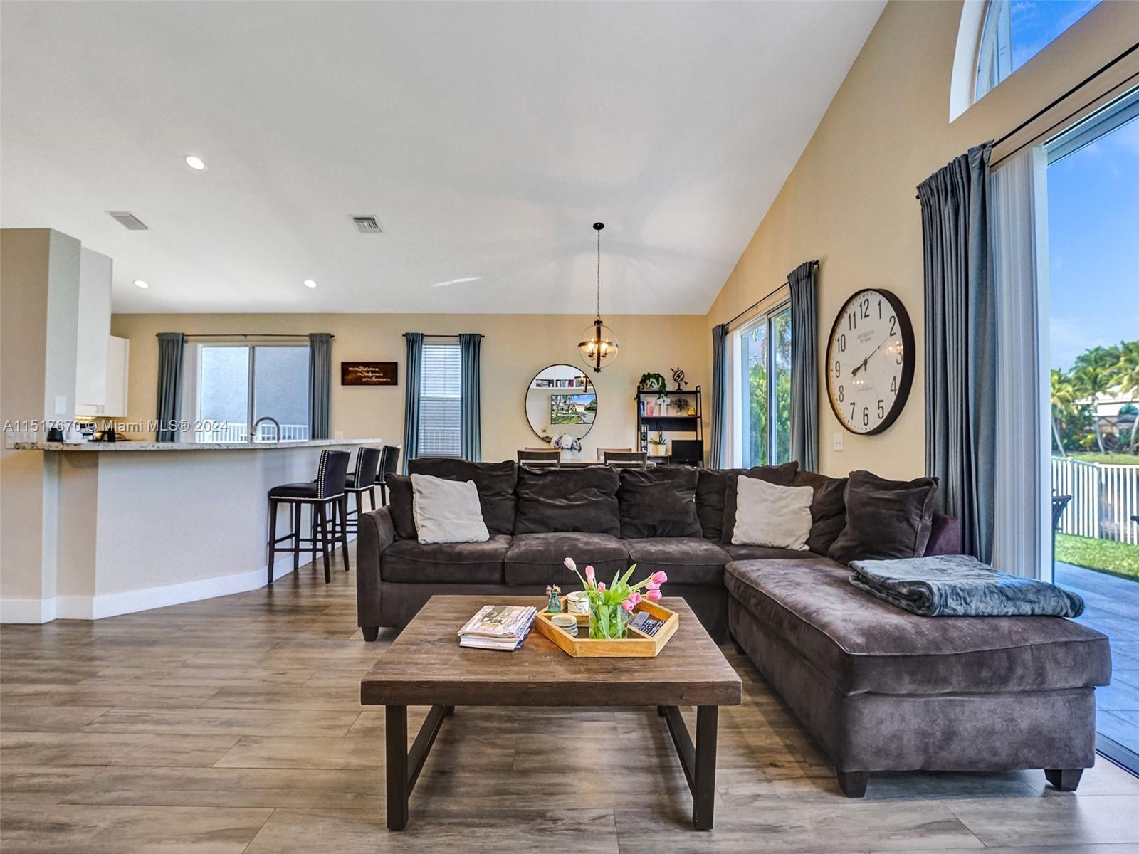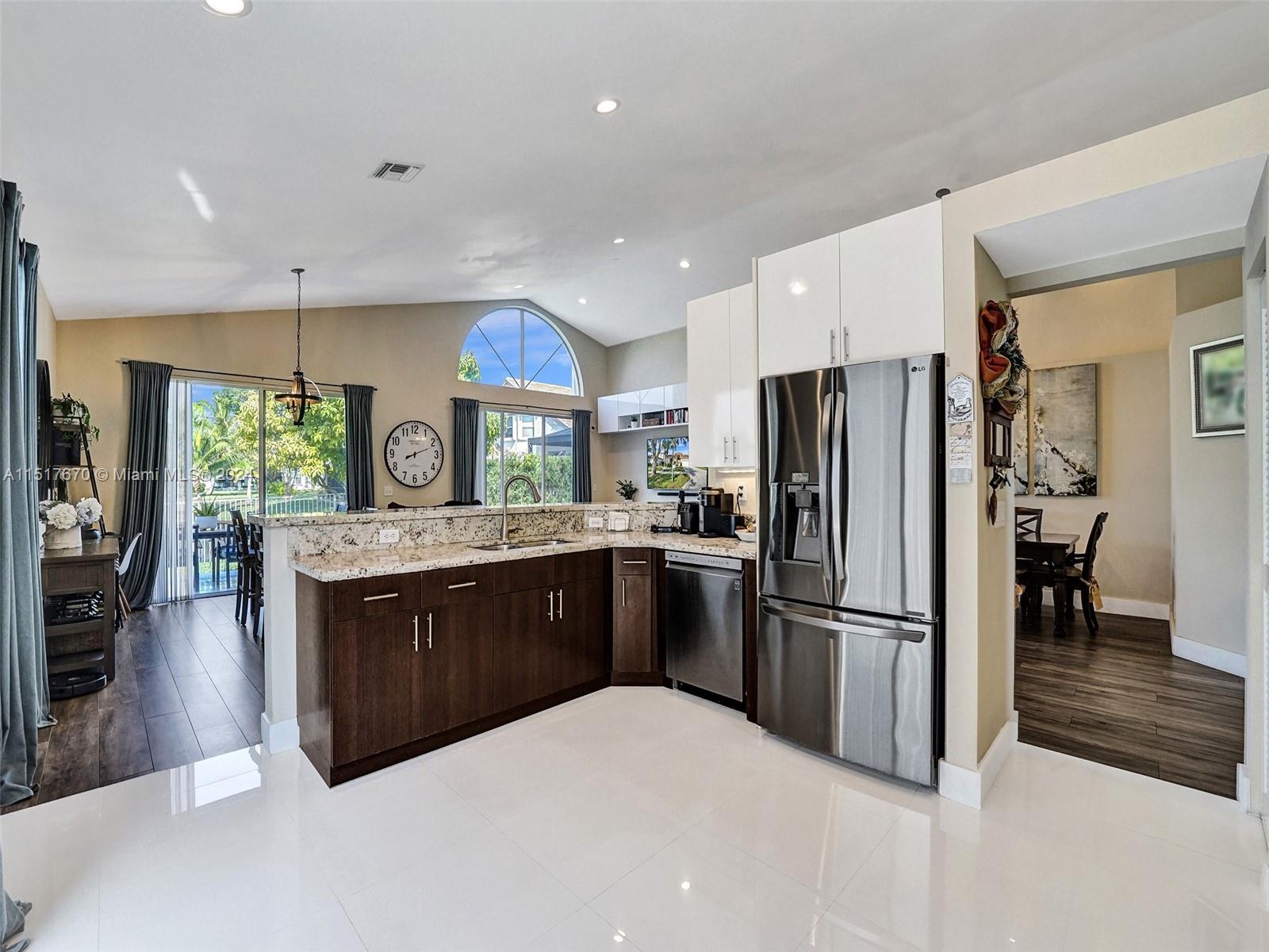 As you step inside, you'll be greeted by an inviting open concept layout with vaulted ceilings and high ceiling windows creating a brightly, airy, and spacious atmosphere. This spectacular one-story home boasts 3 Bedrooms, 2 Bathrooms with a bonus room equipped with AC. New porcelain floors and popcorn ceiling removed throughout the main areas. This home comes with a brand-new roof installed in 2021 and a recently upgraded AC Condenser from 2023. Additionally, the home is storm ready with hurricane-rated accordion shutters and doors. Enjoy stunning views of the lake and sunsets from the comfort of your fenced backyard. Low HOA fees include cable, internet, and access to a range of amenities. Conveniently located near top-rated schools, parks, hospitals, and shopping centers.