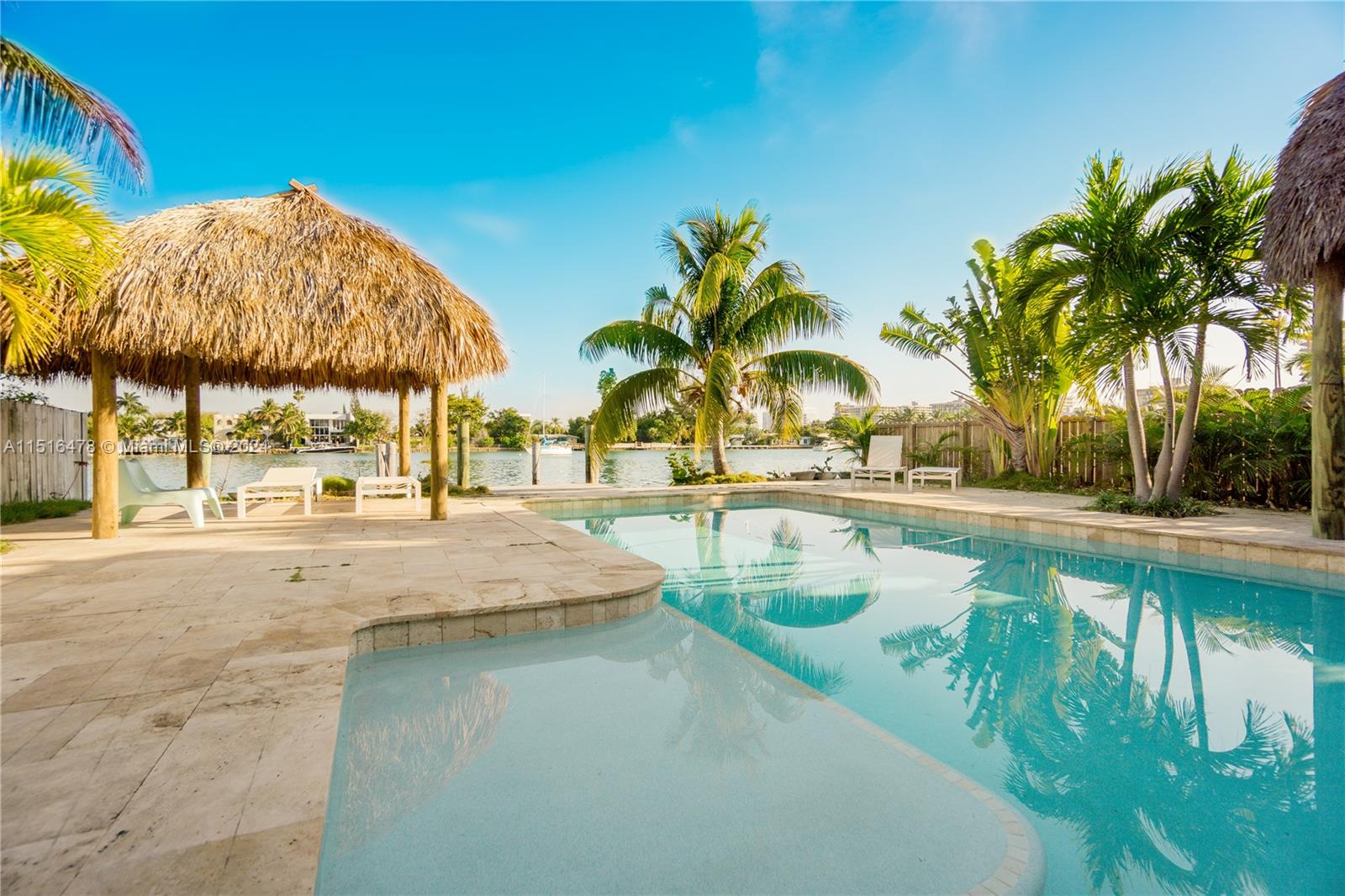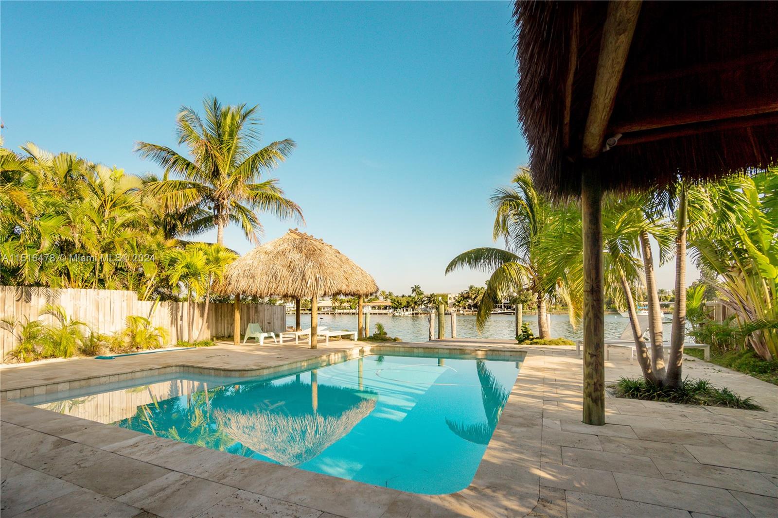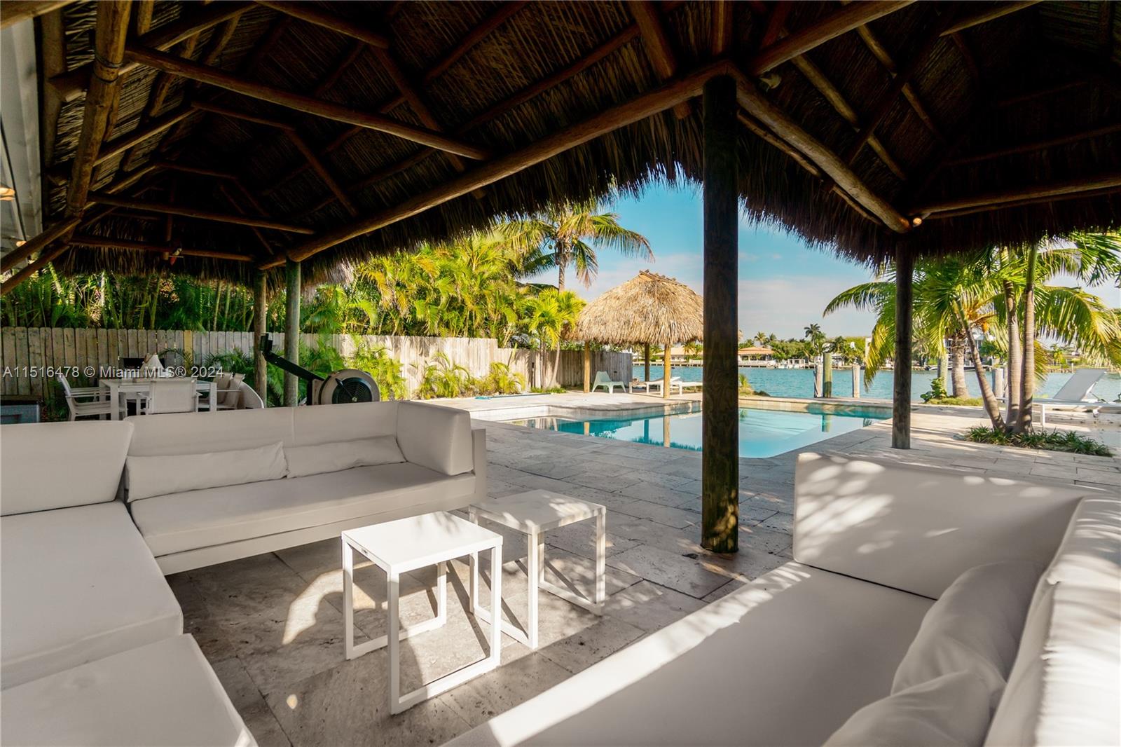 Amazing waterfront residence and a rare find on Miami Beach! This stunning home has been fully remodeled. Boasting 4 beds/3 baths, a large open eat-in kitchen, open floor plan with views of the bay, tile floors throughout, spacious bedrooms, recessed lighting, Private fenced in backyard, private boat dock, new pool, and an outside tiki hut overlooking the wide bay views. This residence is perfect for entertaining! Enjoy Michelin star restaurants, stunning beaches, and world-class shopping nearby in Bal Harbour.