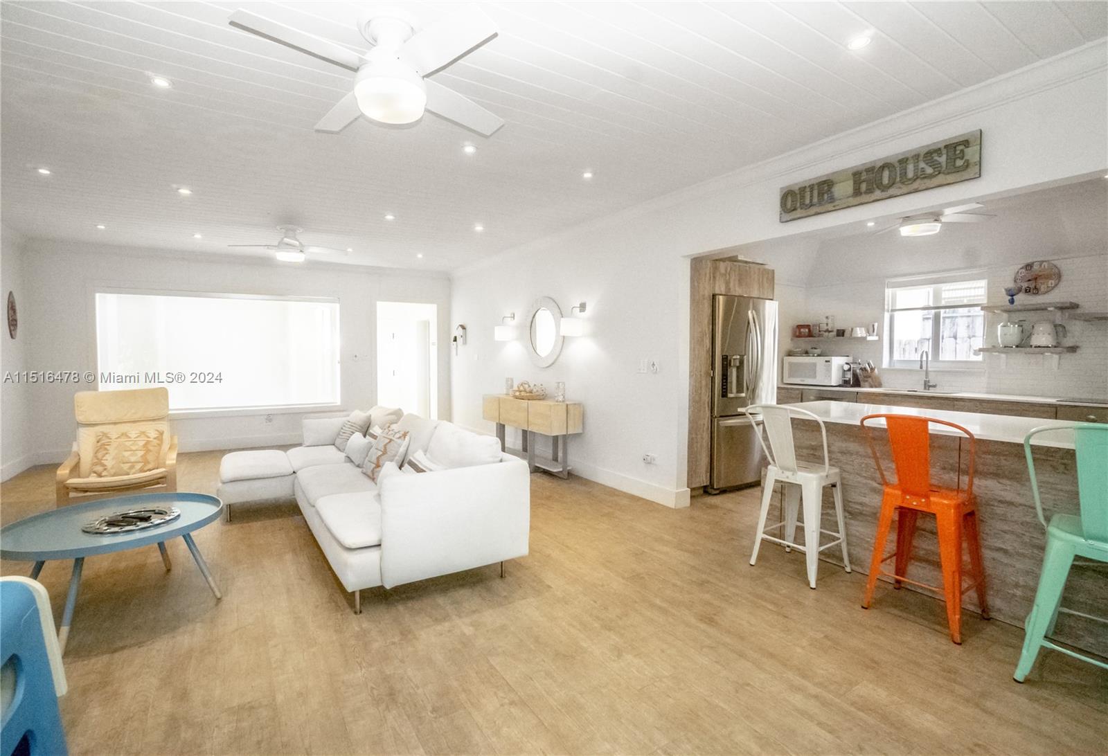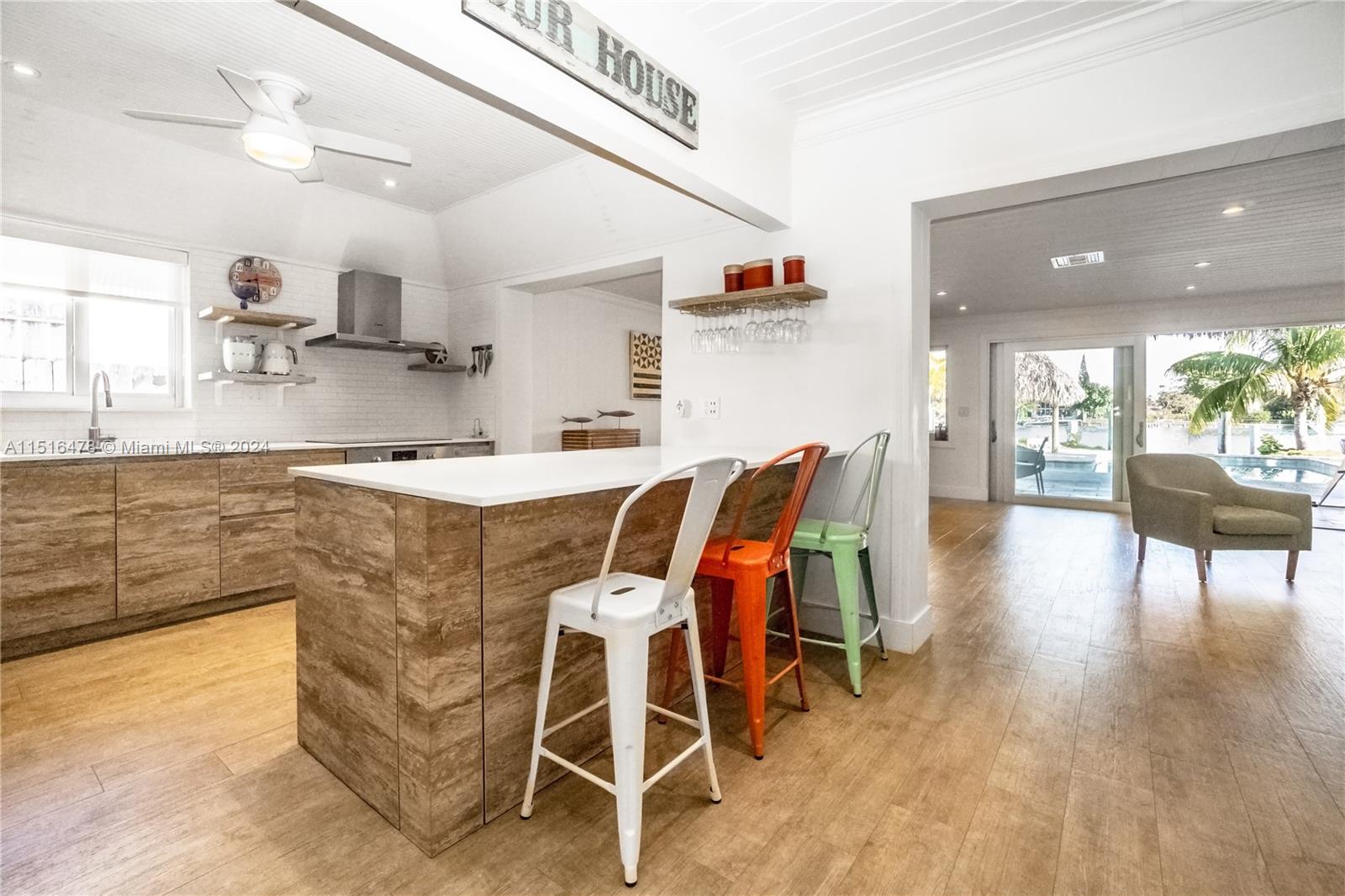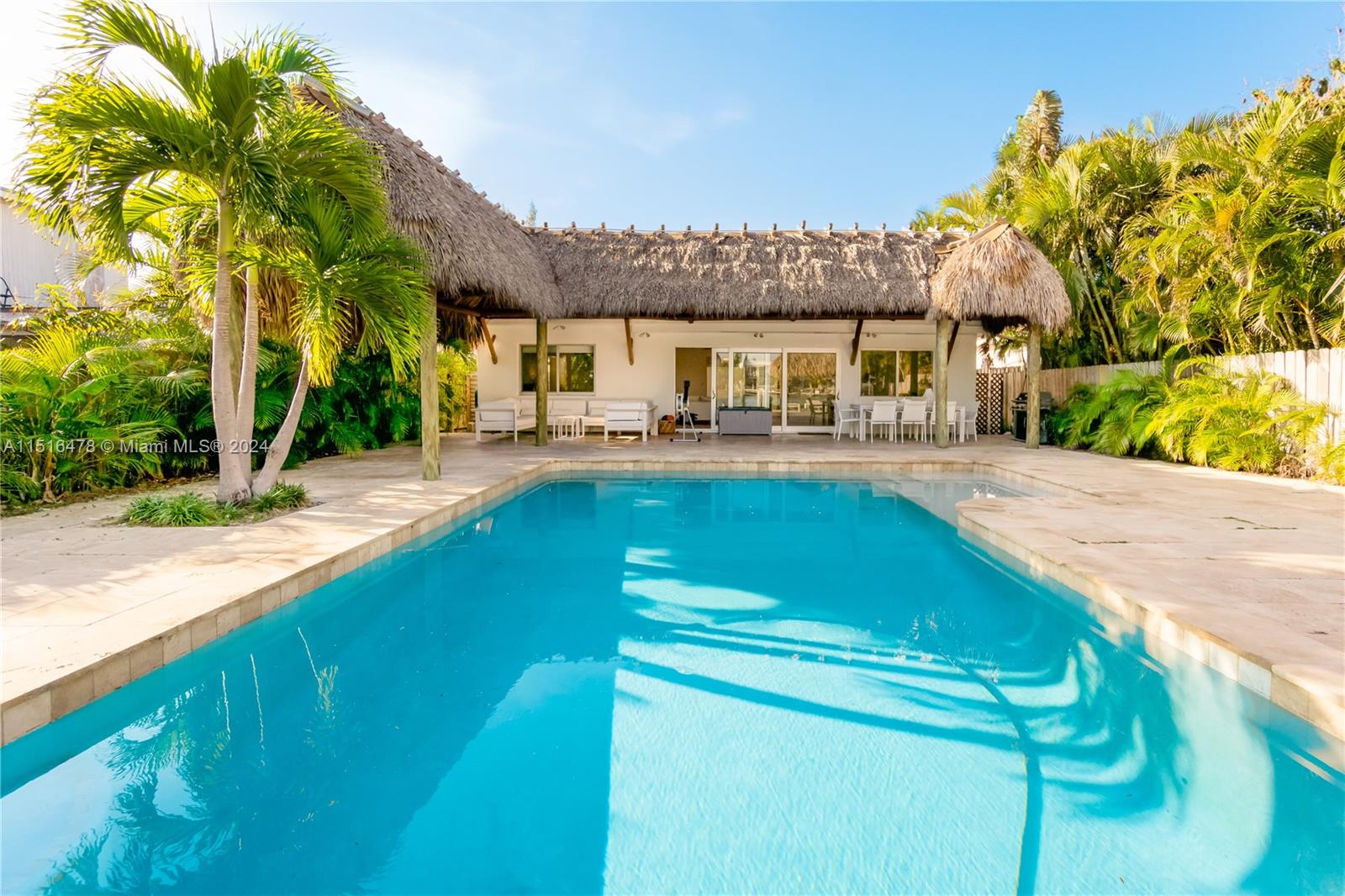 Amazing waterfront residence and a rare find on Miami Beach! This stunning home has been fully remodeled. Boasting 4 beds/3 baths, a large open eat-in kitchen, open floor plan with views of the bay, tile floors throughout, spacious bedrooms, recessed lighting, Private fenced in backyard, private boat dock, new pool, and an outside tiki hut overlooking the wide bay views. This residence is perfect for entertaining! Enjoy Michelin star restaurants, stunning beaches, and world-class shopping nearby in Bal Harbour.