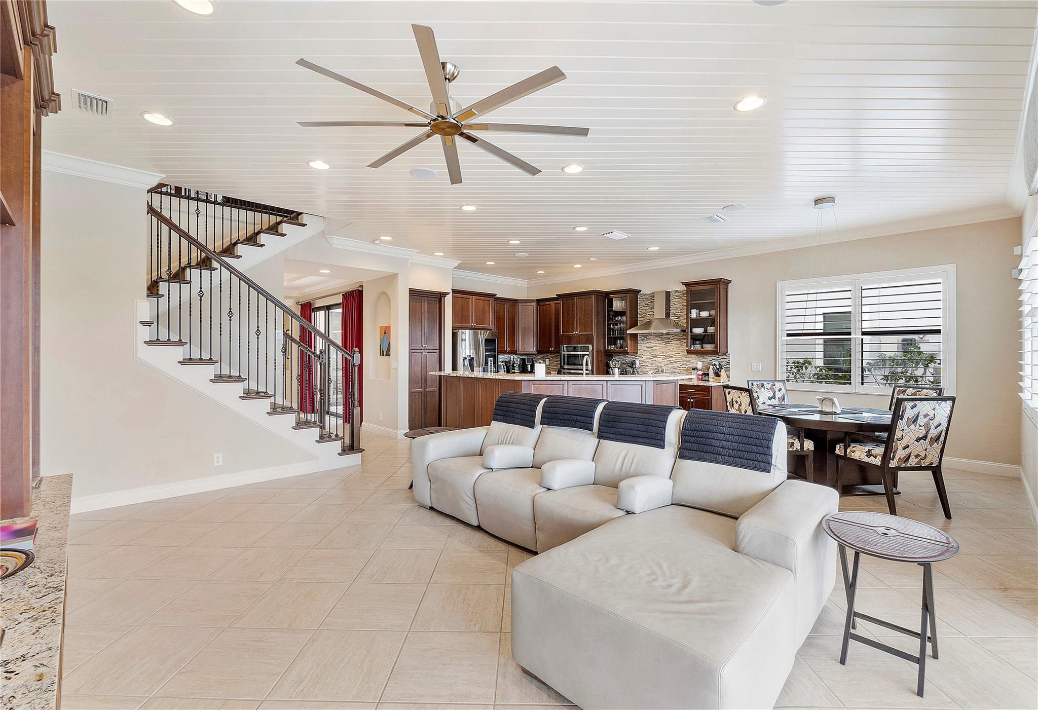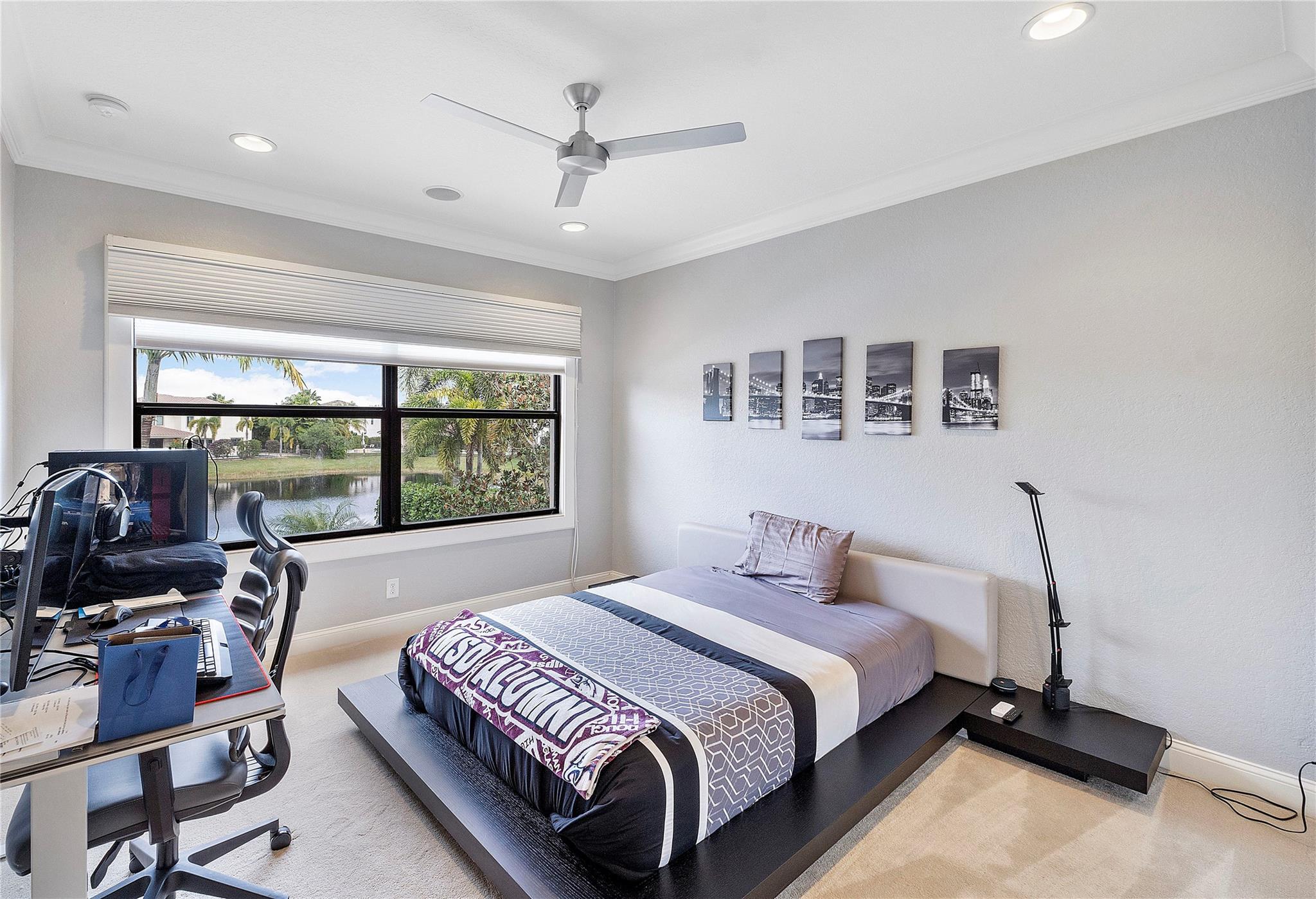 This gorgeous 4 bedroom + loft + game room waterfront pool home is a former builders model & boasts a 3 car tandem garage. Upgrades include beautiful wood plank ceilings, crown molding, plantation shutters, wood flooring, gourmet kitchen, side courtyard, impact glass, electric blinds, fenced yard & custom decorator built-ins throughout. Large upstairs loft is perfect for playroom or office. Spread out in your spacious 2nd floor master w/ water views & closet w/ gorgeous built-ins. Lush tropical landscaping w/ outdoor grill & summer kitchen for entertaining. Parkland Golf & CC just finished upgrading the restaurants & golf course January 2024! Now is the time to buy! Championship golf, kids center, tiki bar, resort pools, gym, restaurants, tennis, pickleball, basketball & so much more!