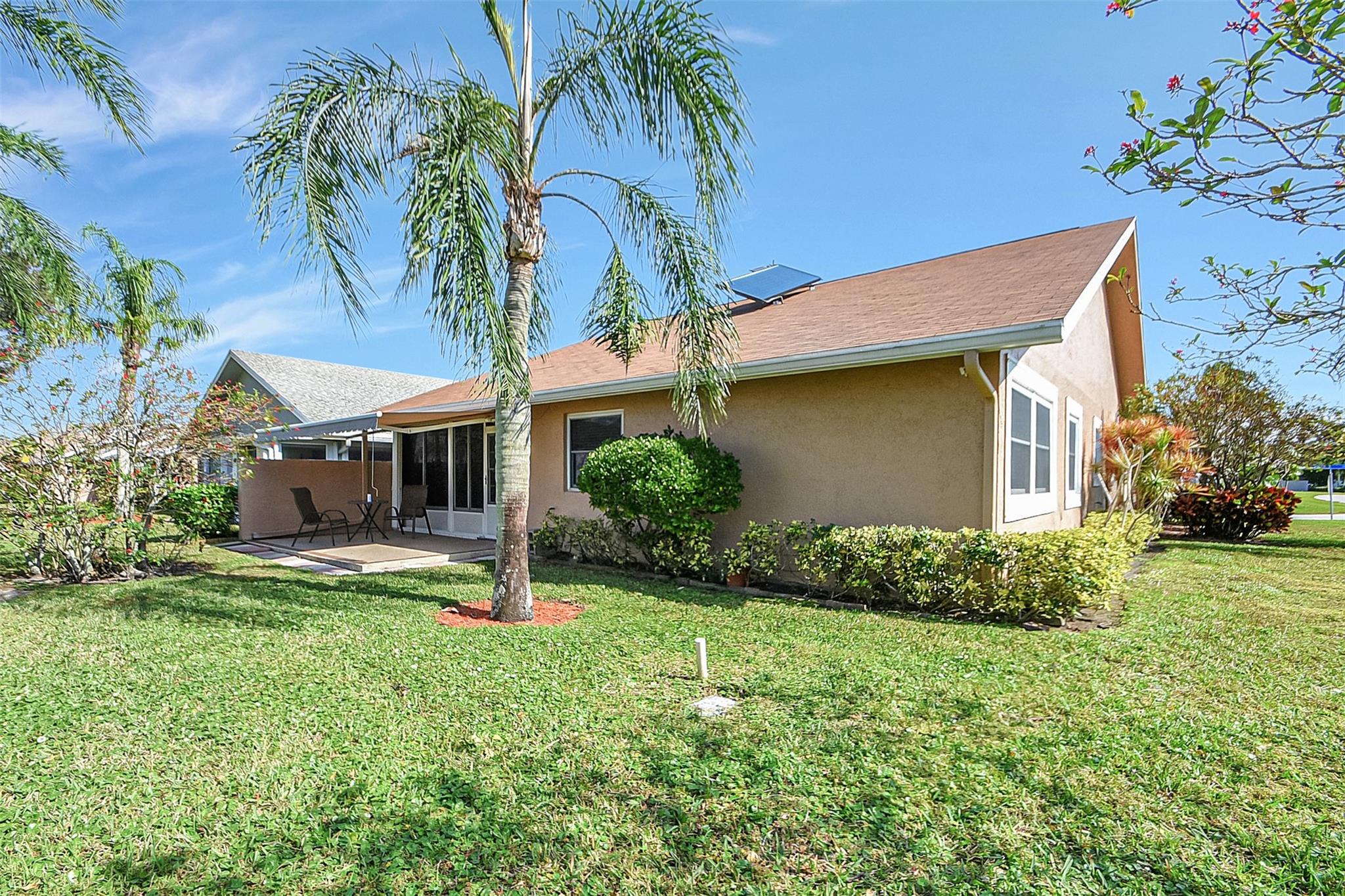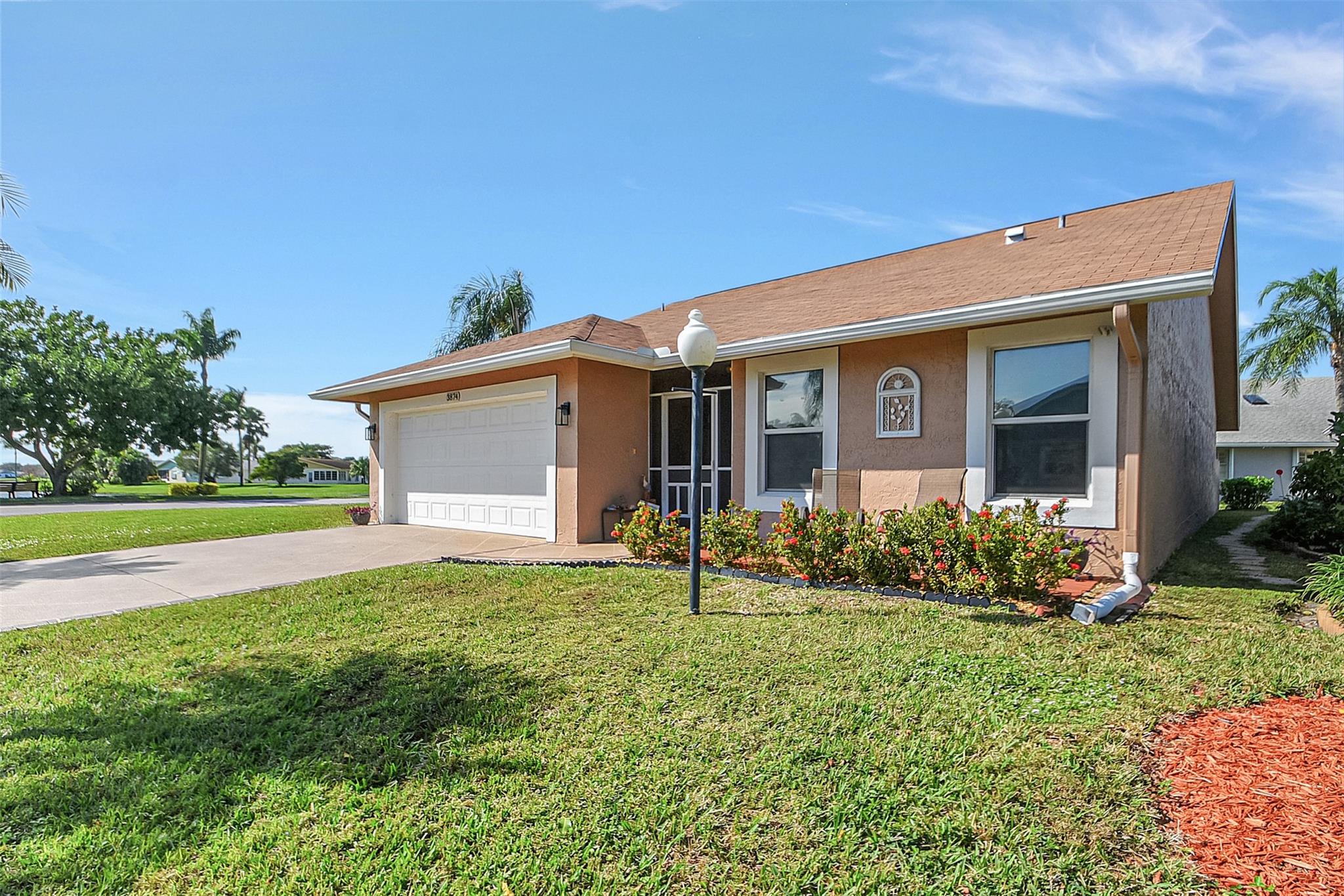 Explore this impeccably maintained 2-bedroom, 2-bathroom, 2-car garage residence boasting a total area of 2300 square feet, including 1685 square feet under air. This home features a NEW ROOF and a NEW SOLAR-POWERED WATER HEATER installed in December 2023. Enjoy upgrades such as IMPACT WINDOWS, 2019 AC W/FLORECENT FILTER, UPDATED BATHS, roomy living spaces, and bedrooms. The semi-open floor plan ensures ample storage, while the enclosed lanai invites you to relax with outdoor seating and a spacious retractable awning for outdoor enjoyment. Situated in the sought-after Cypress Lakes Golf and Active Lifestyle community in West Palm Beach. Don't miss the chance to experience the comfort and style of this home firsthand. All information is deemed reliable and should be verified by buyer.
